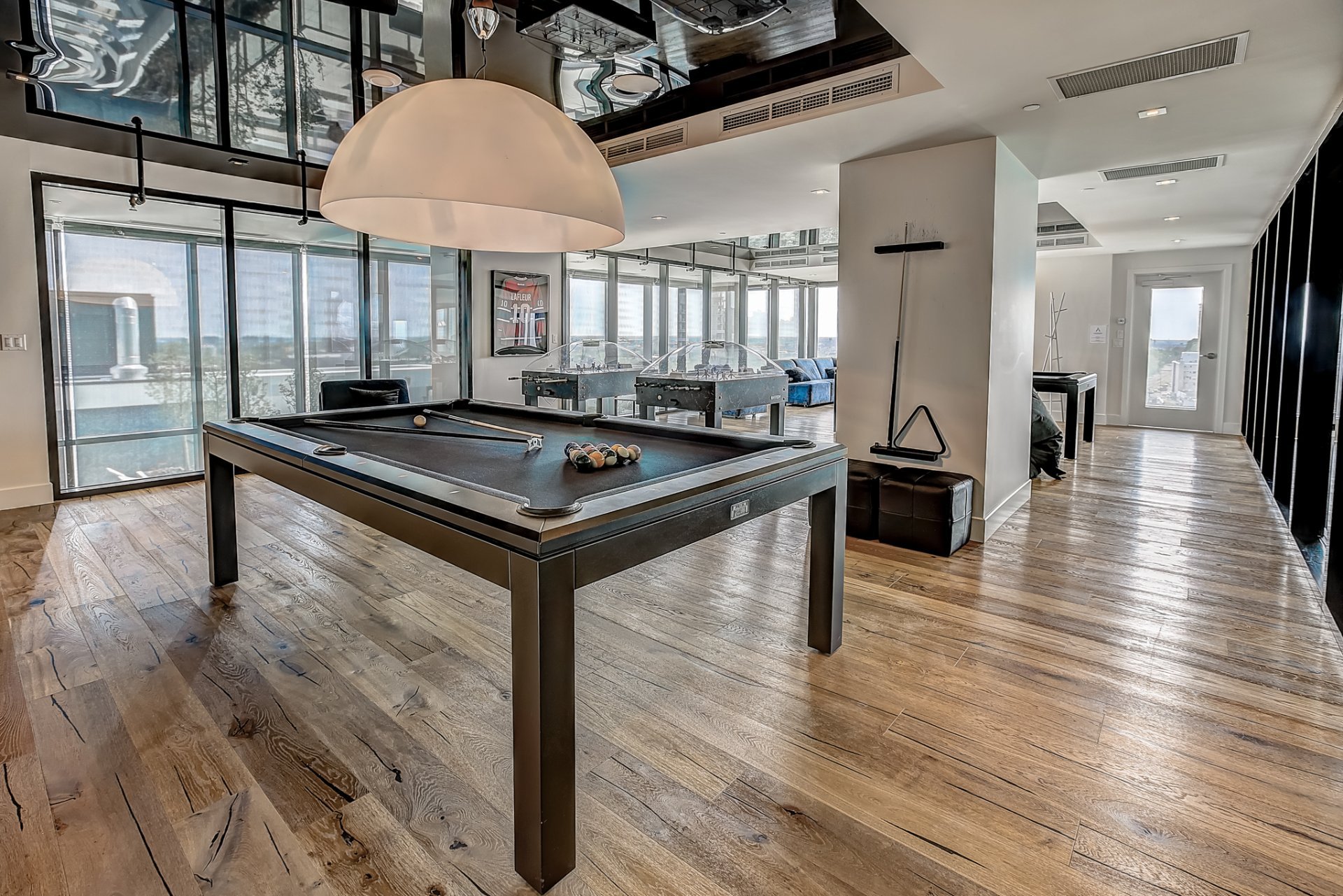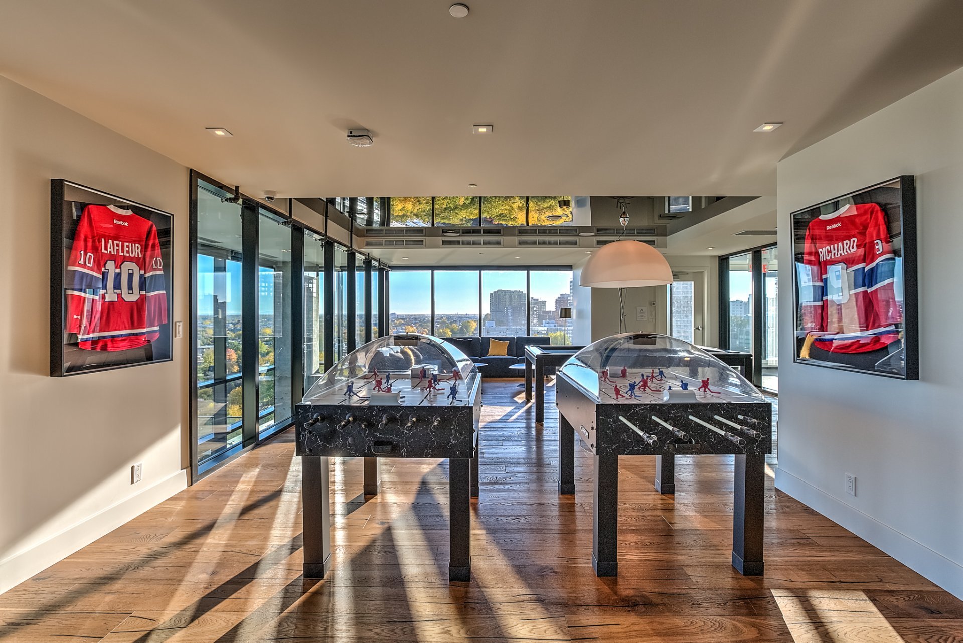 - Games room with big screen tv, surround sound, pool tables, and foosball