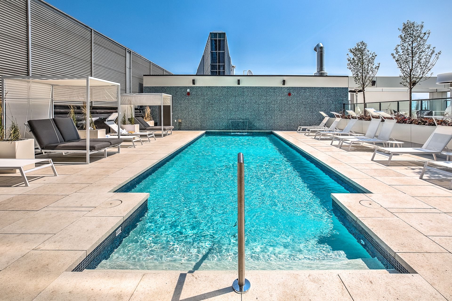 - Landscaped outdoor terrace with pool, cabanas, barbecues, and breathtaking views