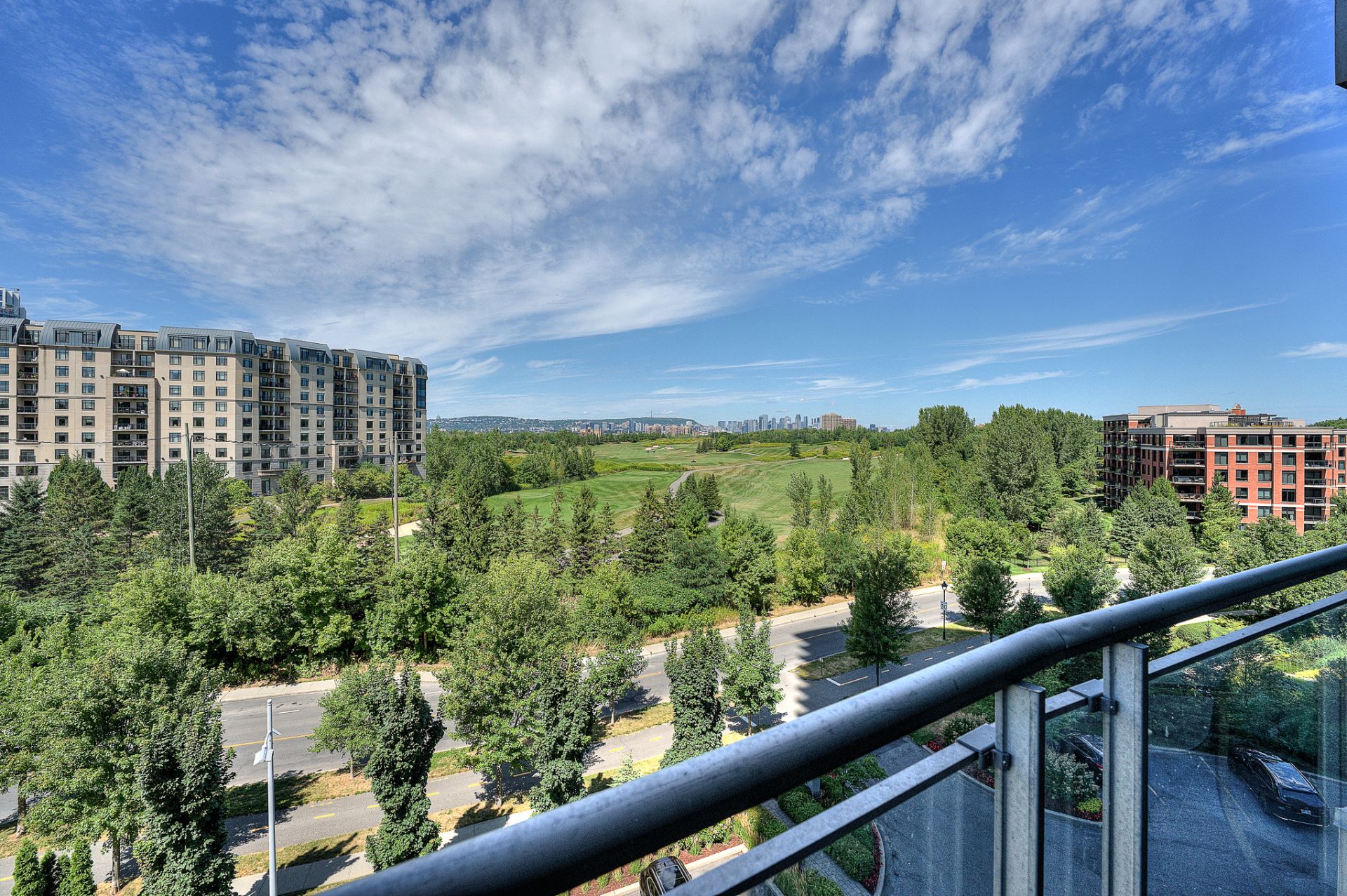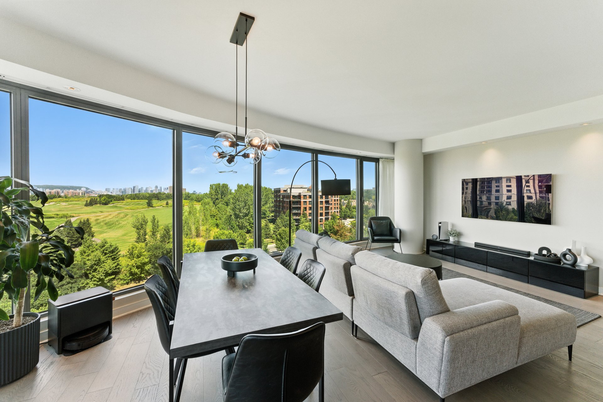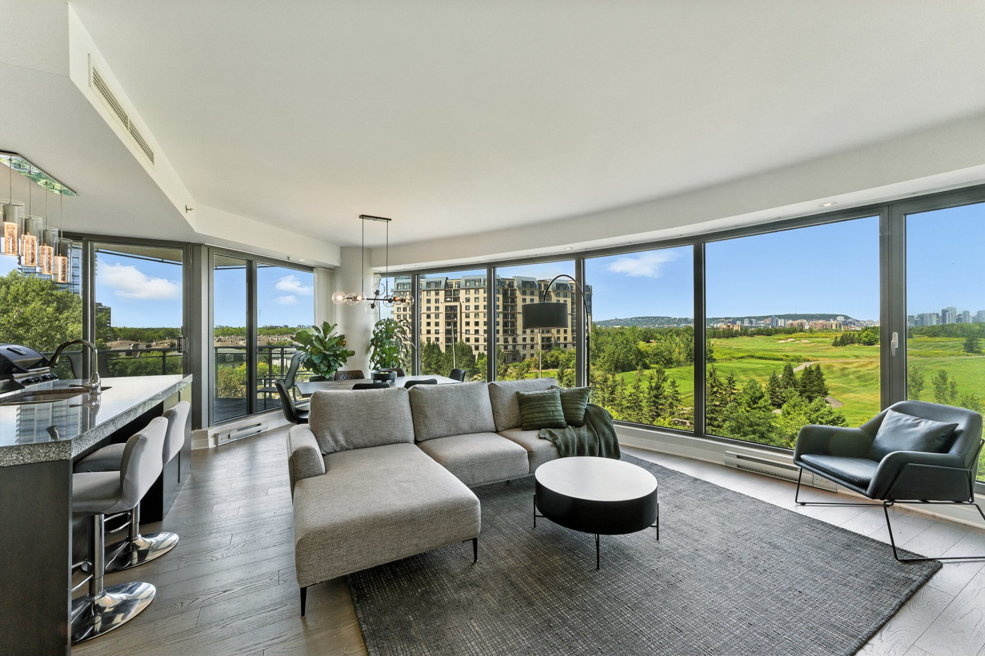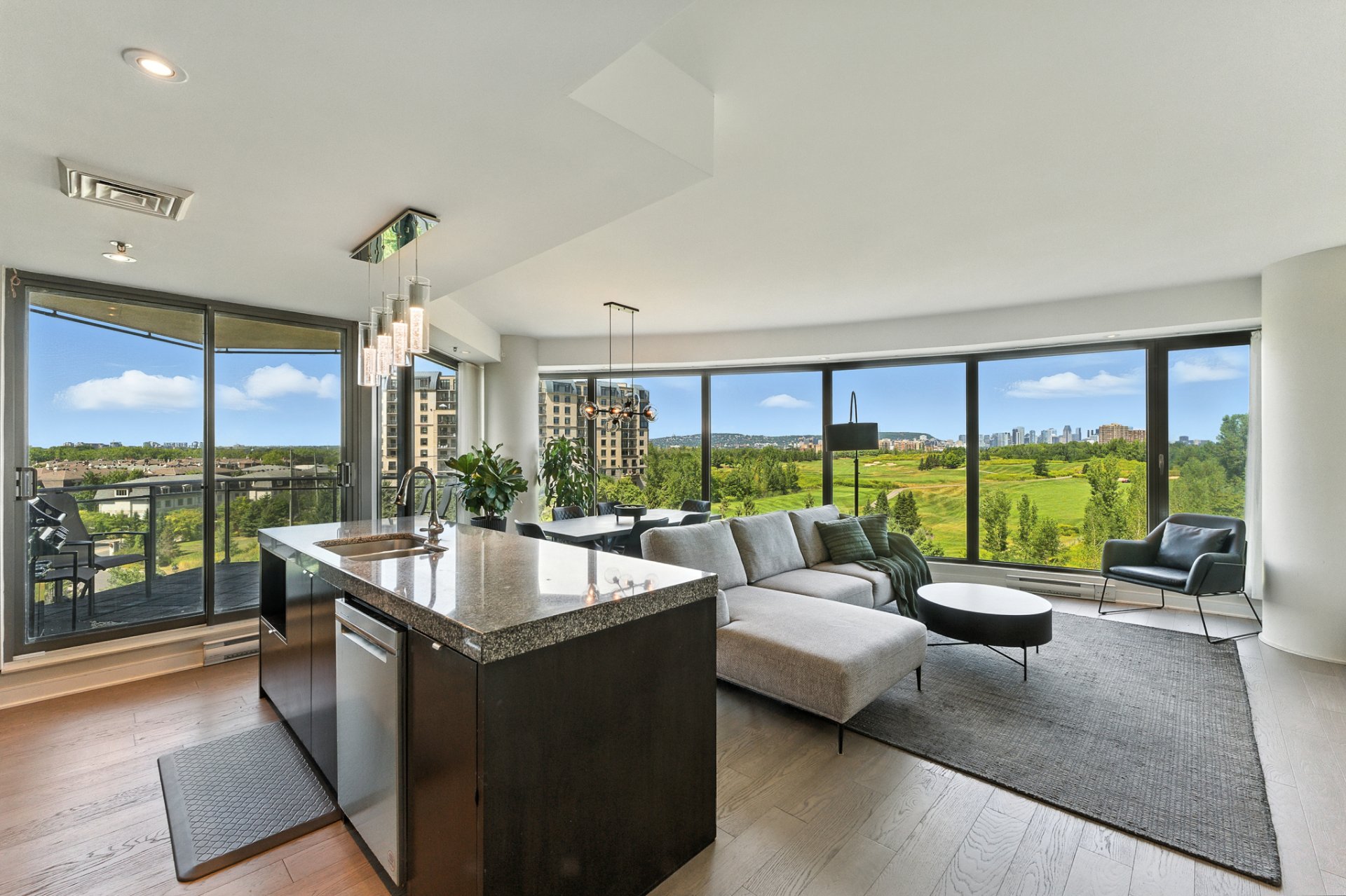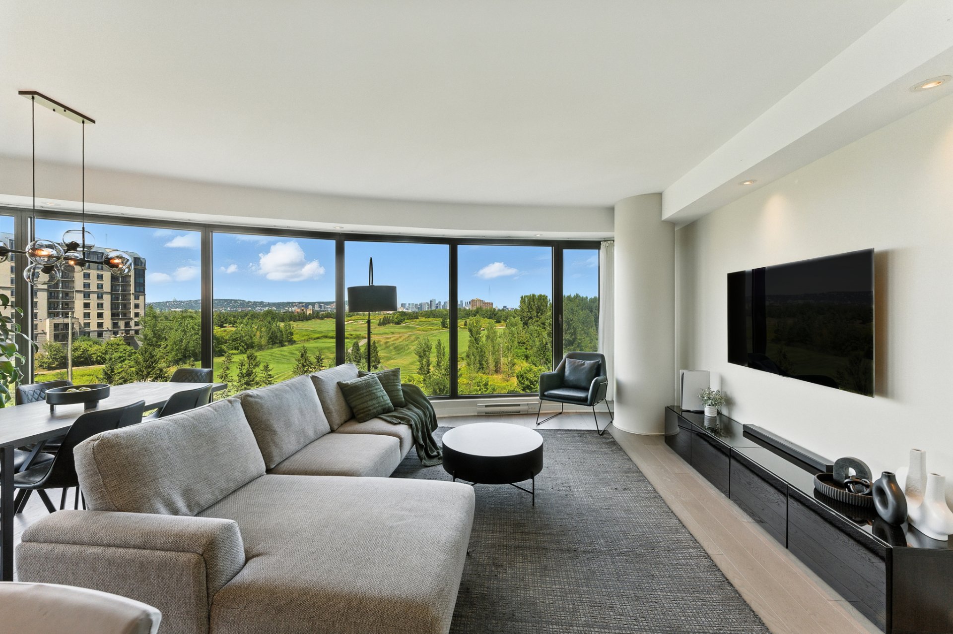 - Corner layout with golf-course and city skyline views