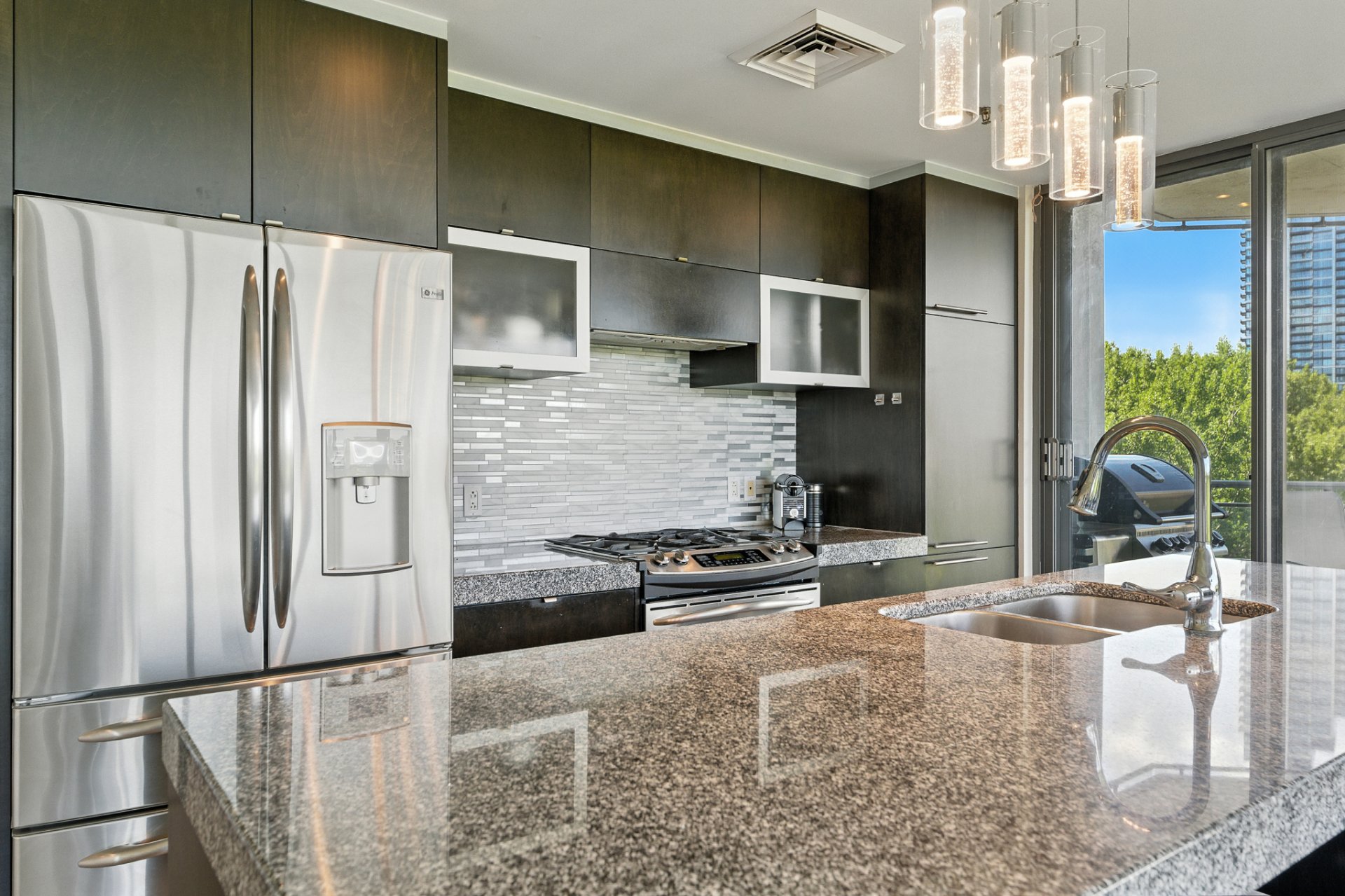 - Contemporary kitchen with quartz countertops and premium appliances