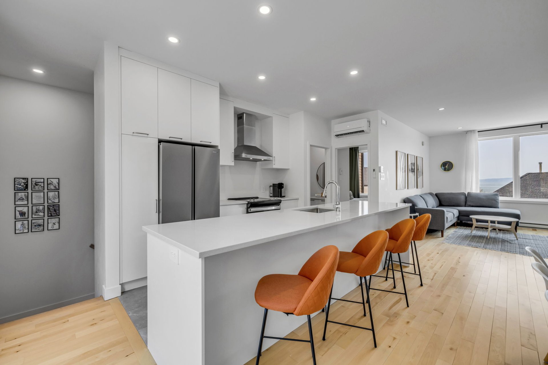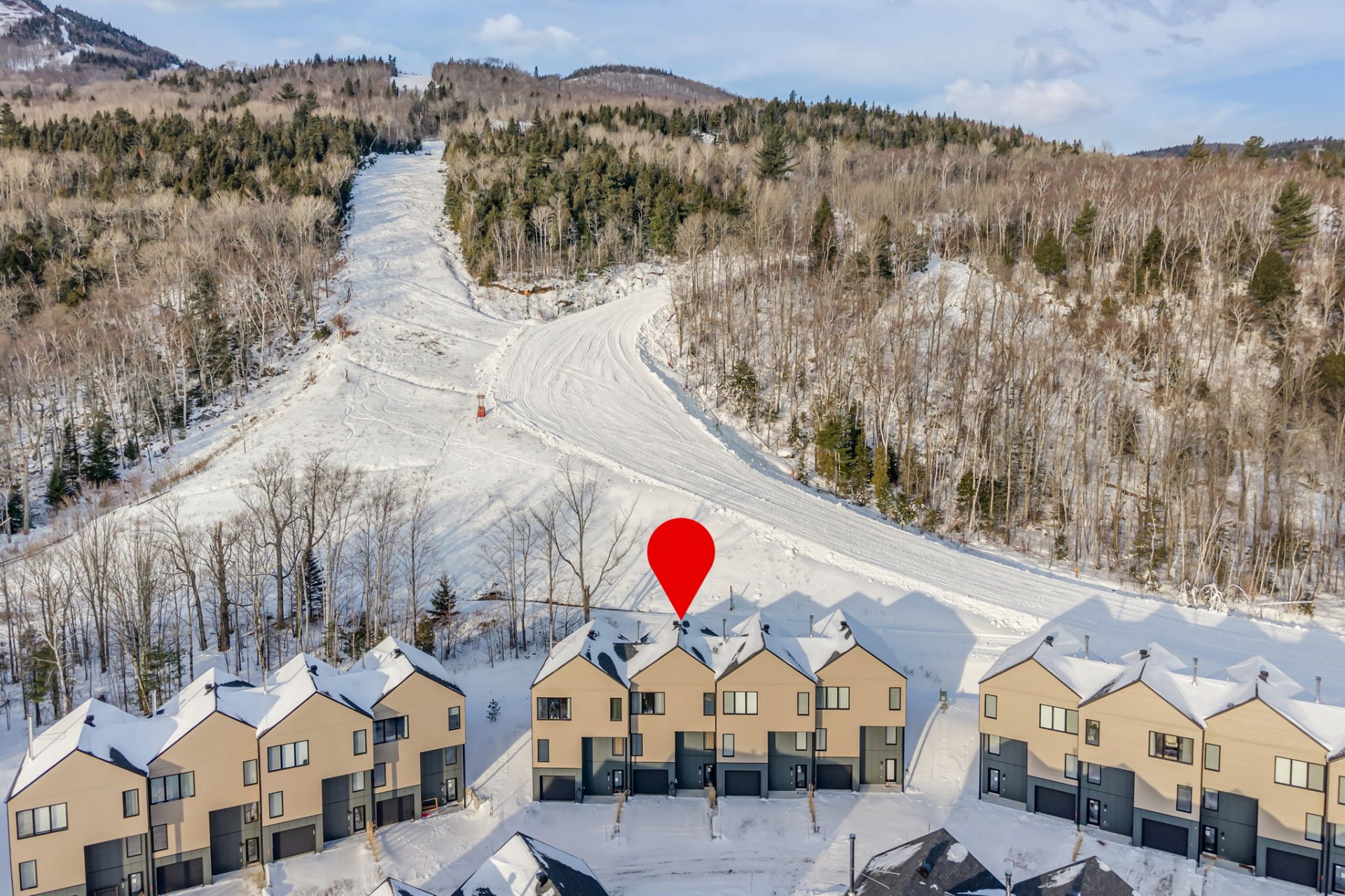 At the foot of Le Massif de Charlevoix, enjoy the ultimate ski-in/ski-out experience! This spacious townhouse features bright living areas on the 3rd floor with breathtaking views of the slopes and the river, as well as 4 bedrooms, 2 bathrooms and a family room. After skiing, share a meal with friends or relax on the terrace directly overlooking the runs. Garage, EV charging station and spa complete the package. Fully furnished and equipped, available immediately, with short-term rental potential!