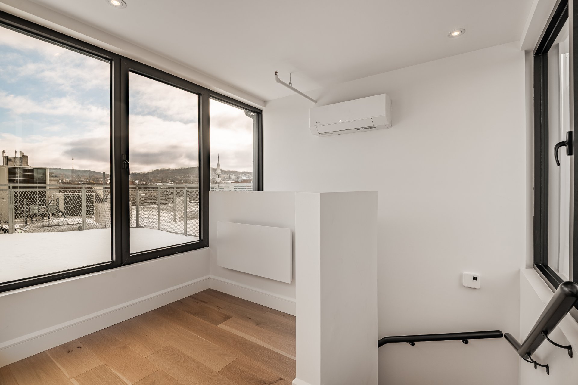 Discover this superb multi-level condo, fully rebuilt and combining modern design, comfort and exceptional natural light. Spread over two levels, it offers two bedrooms (one with a skylight only), a mezzanine and a spacious private rooftop terrace, ideal for enjoying sunny days and warm evenings.