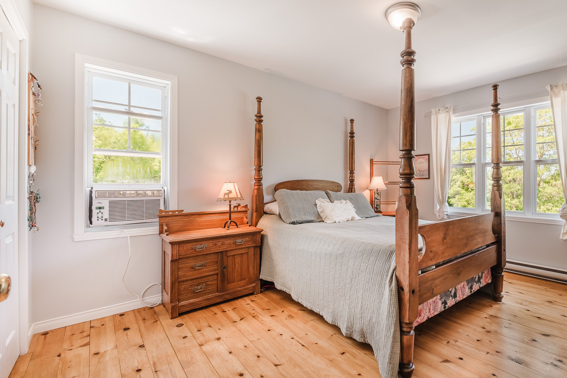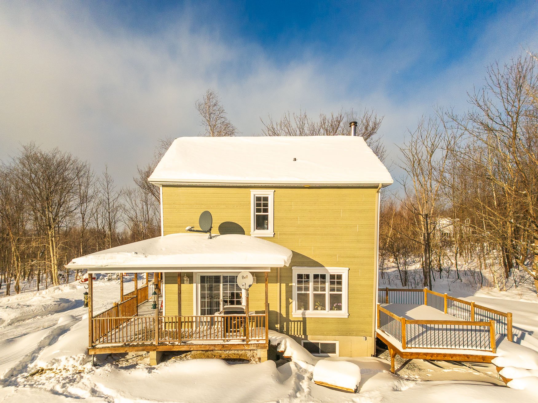 Located in a prime area of West Bolton, this lovely property is situated in a region known for its large lands and beautiful estates. Set on a 2.5-acre lot with a stunning wooded area, this charming and welcoming home is perfect for nature lovers and those seeking tranquility. The pine floors add a rustic and warm touch to the interior, while the living room open to the dining room creates a convivial and bright space. The dining room opens onto a large outdoor terrace, ideal for al fresco dining or relaxing and admiring the surrounding landscape.