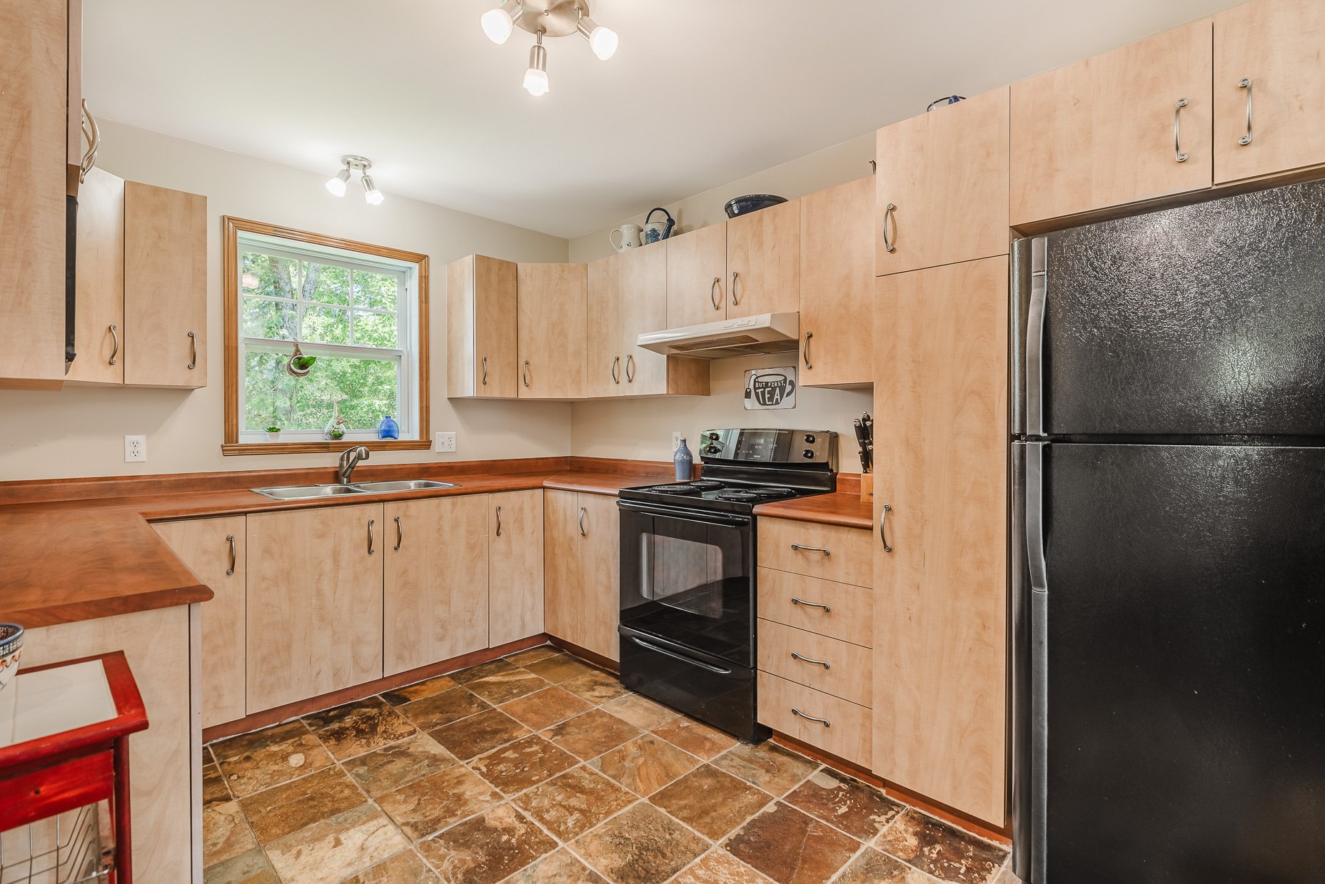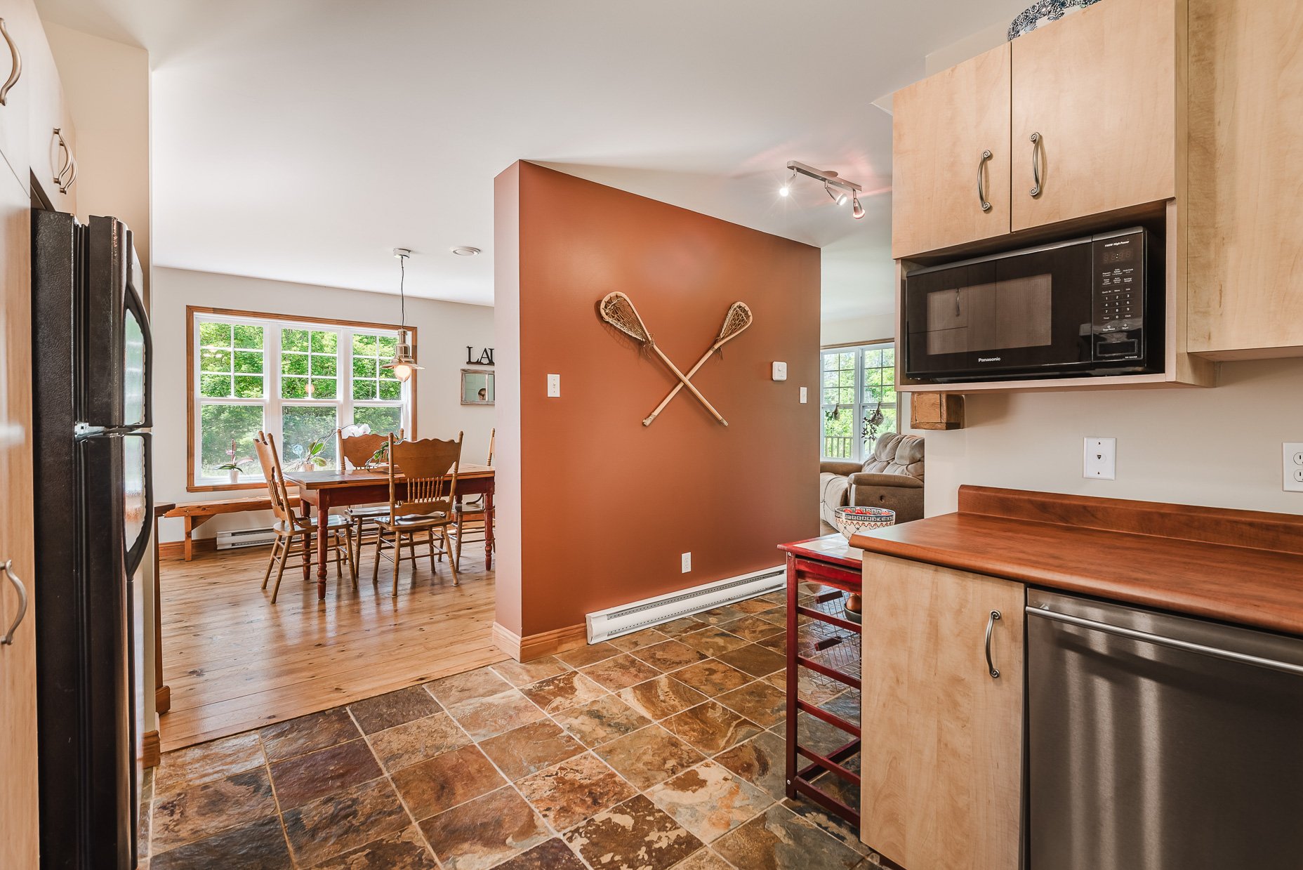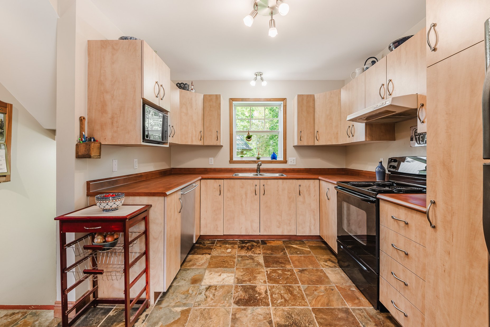 - Fridge, stove, dishwasher, washer, dryer, alarm system, central vacuum and accessories, wood stove, garage door opener, light fixtures, window coverings.