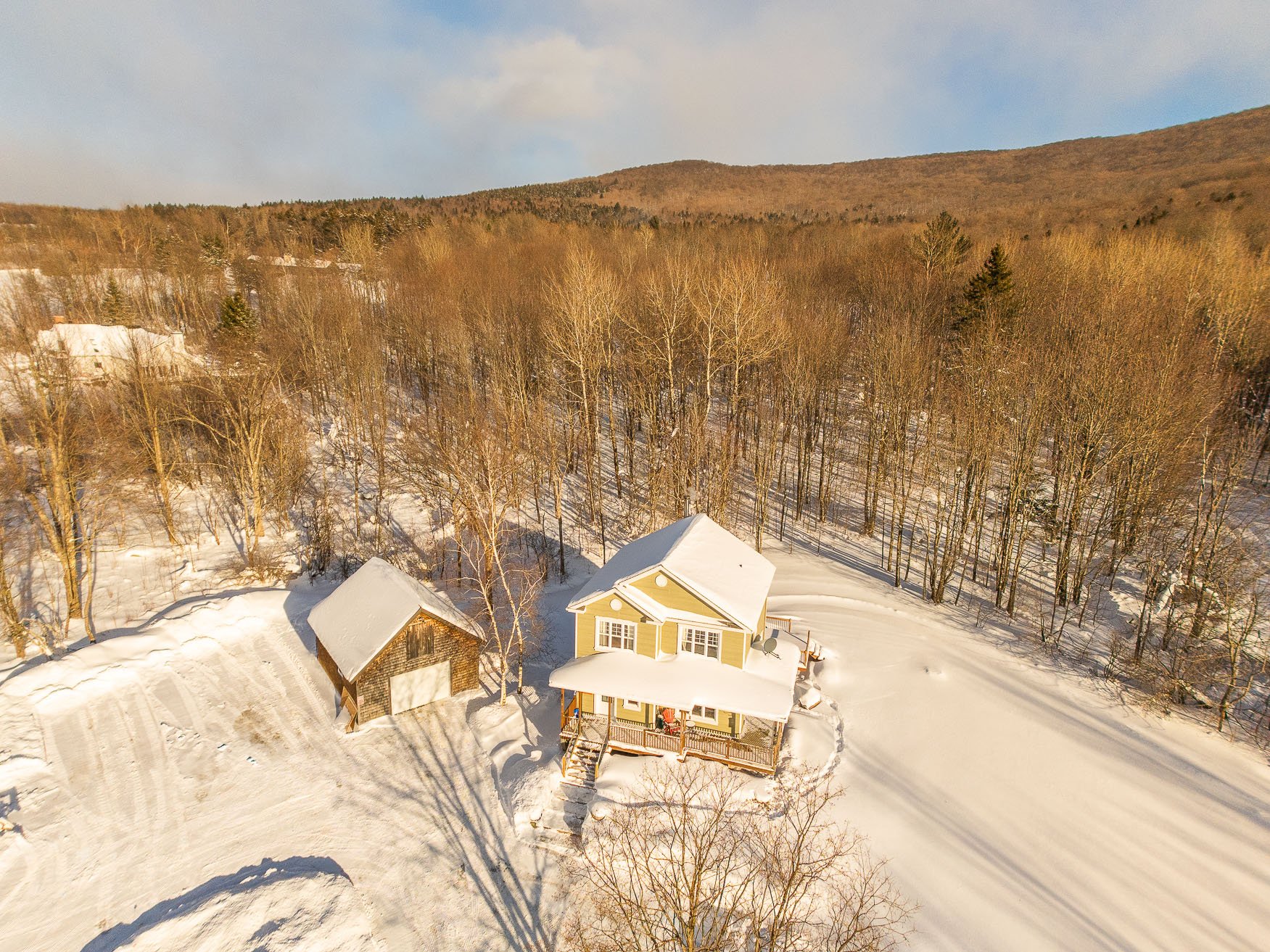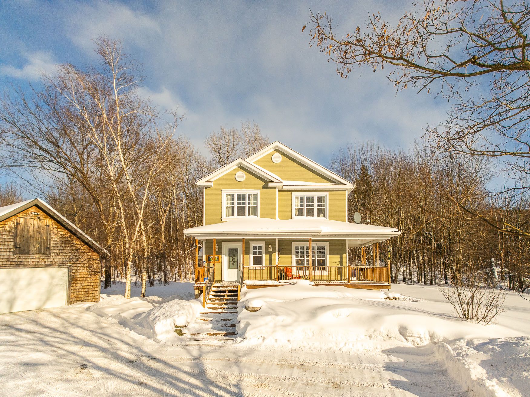 This lovely country house is set back from the road, 300 feet from the renowned Brill Road. Surrounded by a beautiful mature wooded area, it offers absolute privacy in a bucolic setting. The house is bright, adorned with woodwork that adds a warm touch, and includes three bedrooms upstairs. The finished basement features a family room with a wood stove. A beautiful and spacious rear terrace allows for summer gatherings with friends and family. A detached garage completes this charming property. Perfect for those seeking tranquility and nature in an area prized for its vast spaces.