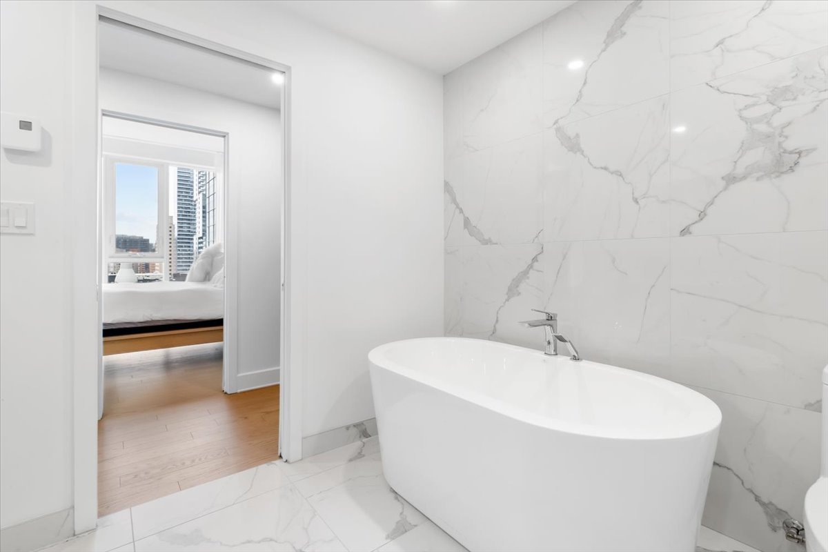 Stunning 2-bedroom condo located on the 4th floor of the prestigious Rocabella Phase III. Open-concept living space, high-end finishes, modern kitchen with brand-new appliances, two full bathrooms, one indoor parking space, and a storage locker. Enjoy open city views and top-tier amenities including 24/7 concierge, pool, spa, sauna, and gym. Prime downtown location near the metro, Bell Centre, universities, and major highways.