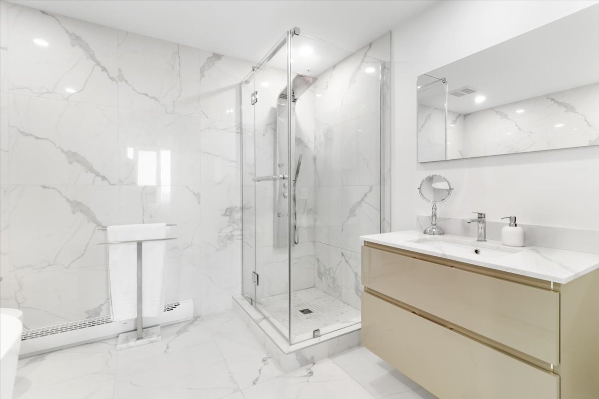 - Sleek recessed lighting for a clean, modern ambiance