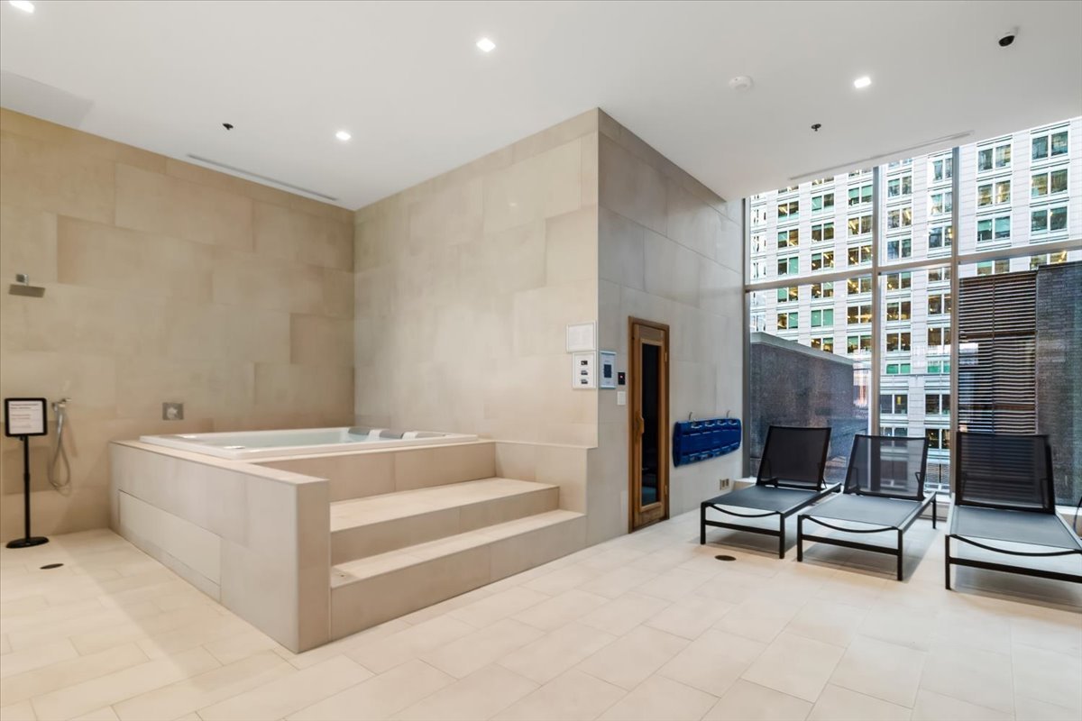 - Floor-to-ceiling windows offering sweeping city views