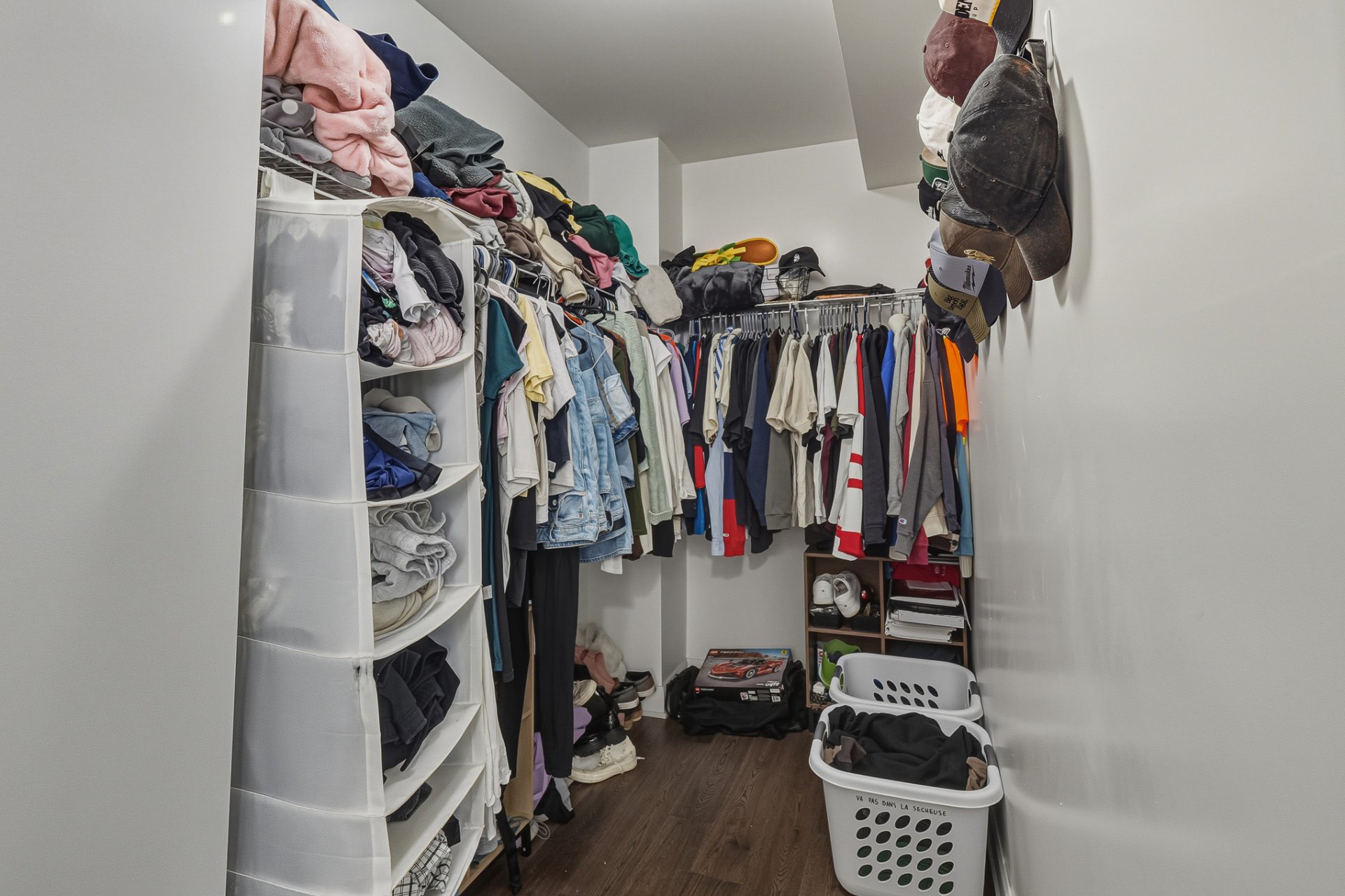 The unit features two bedrooms, including a primary bedroom with a walk-in closet, as well as a bathroom with separate bathtub and shower. A laundry room with additional storage adds everyday convenience.