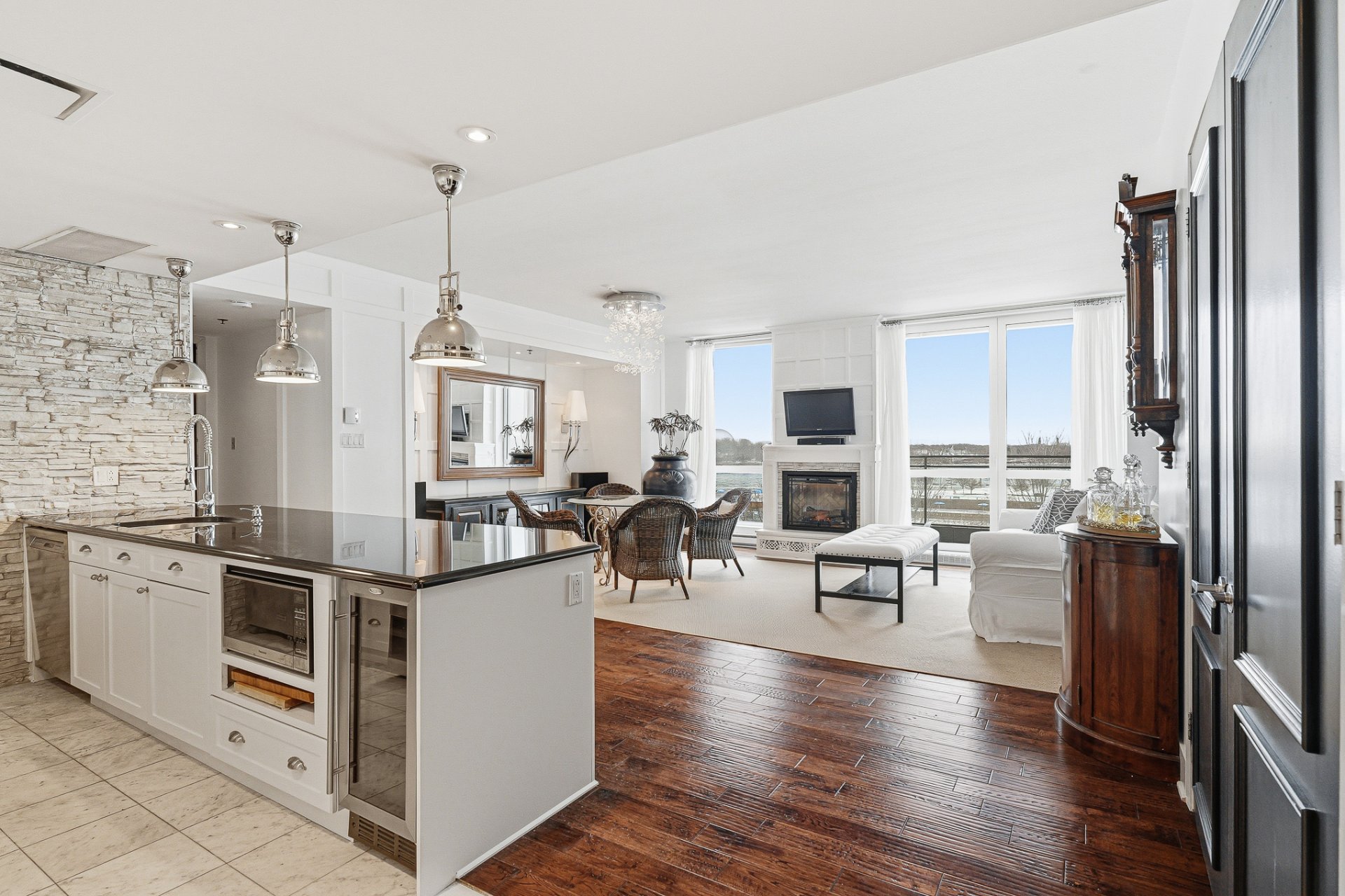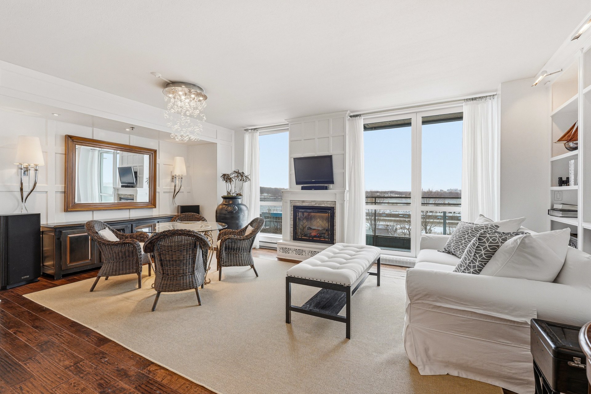 Located on the 3rd floor of a modern, well-maintained building constructed in 2007, this divided co-ownership condo stands out for its exceptional waterfront setting and thoughtfully designed layout. The unit features a bright open-concept living area enhanced by floor-to-ceiling windows facing south, flooding the space with natural light and offering direct, unobstructed views of the St. Lawrence River.