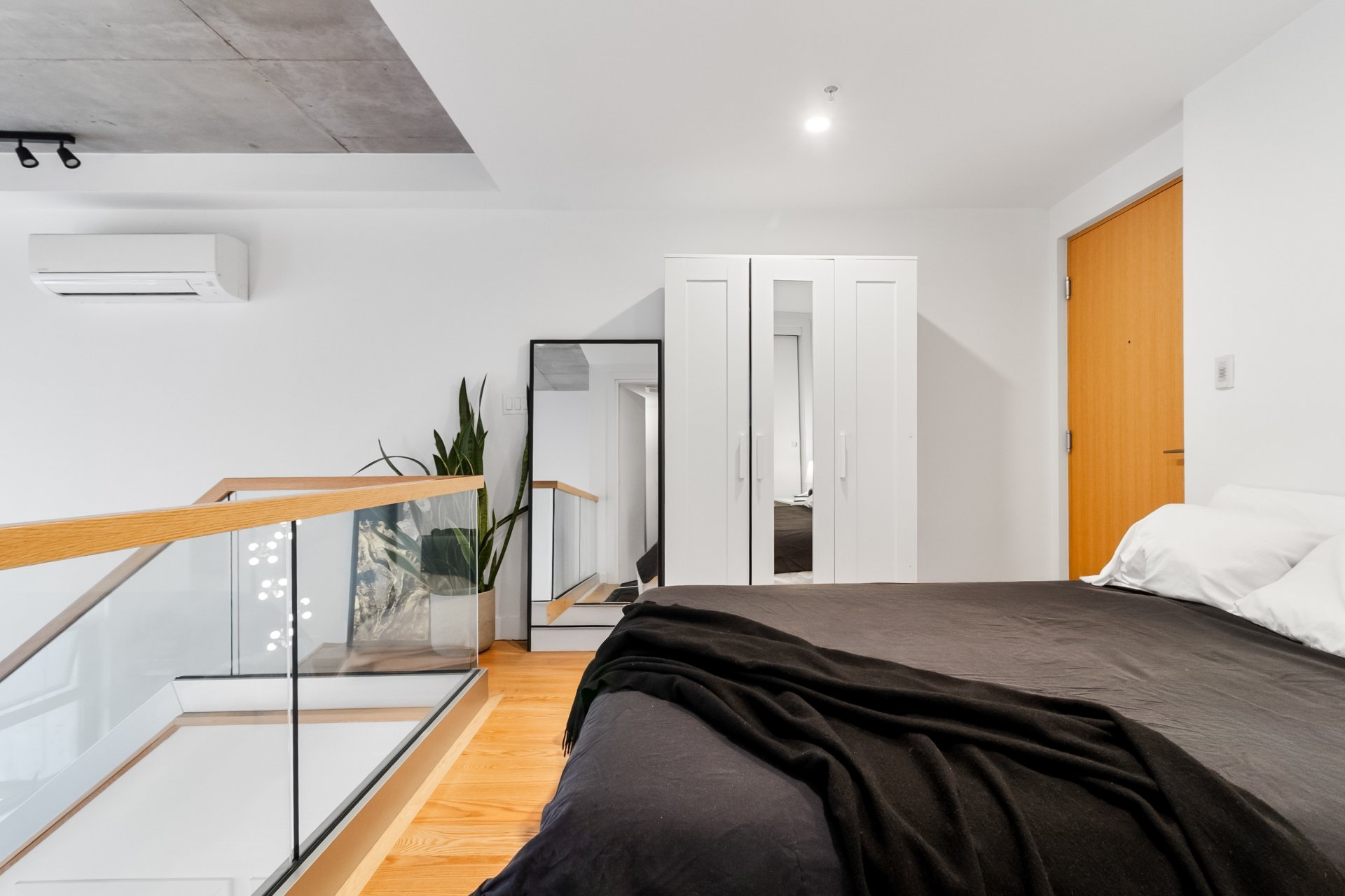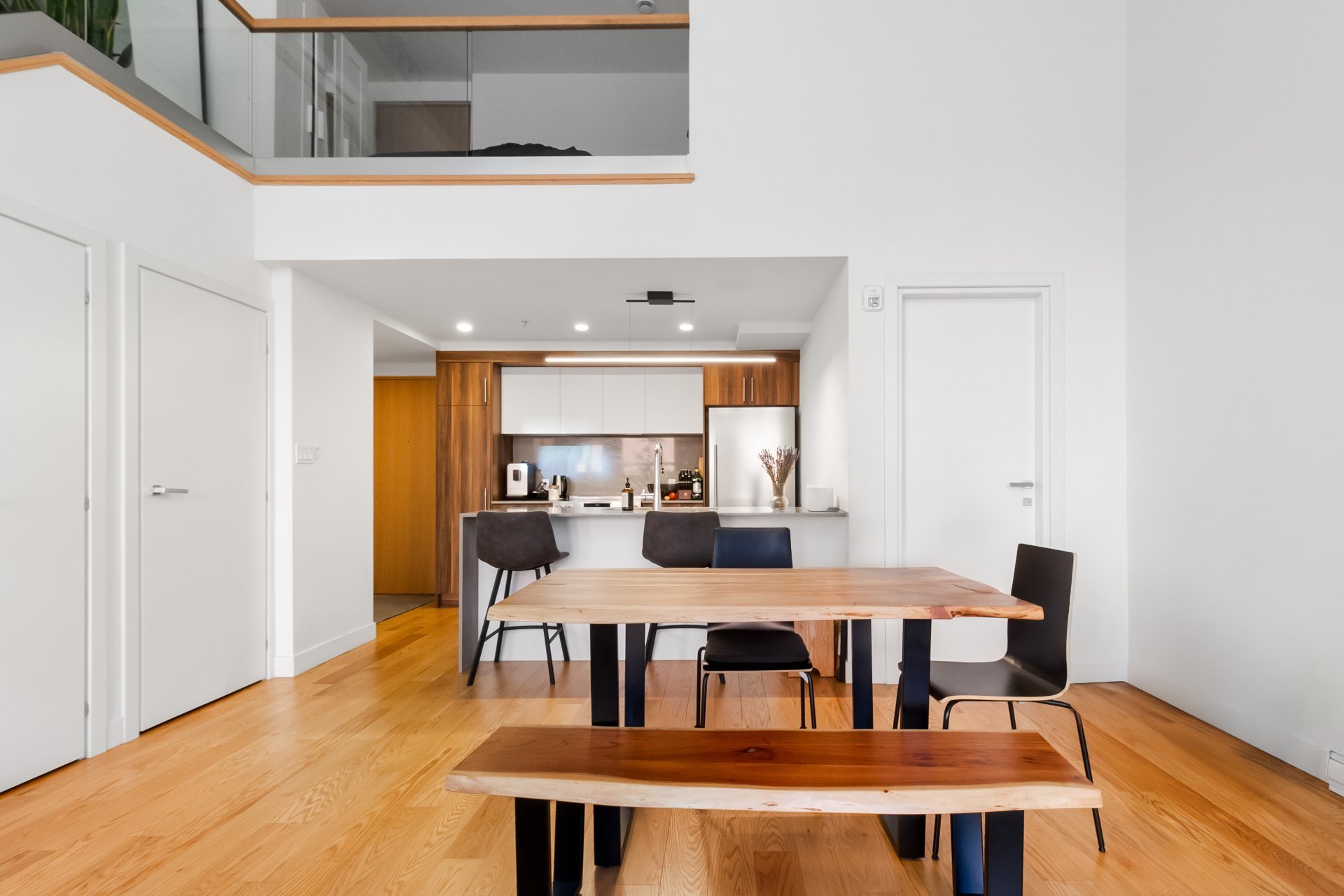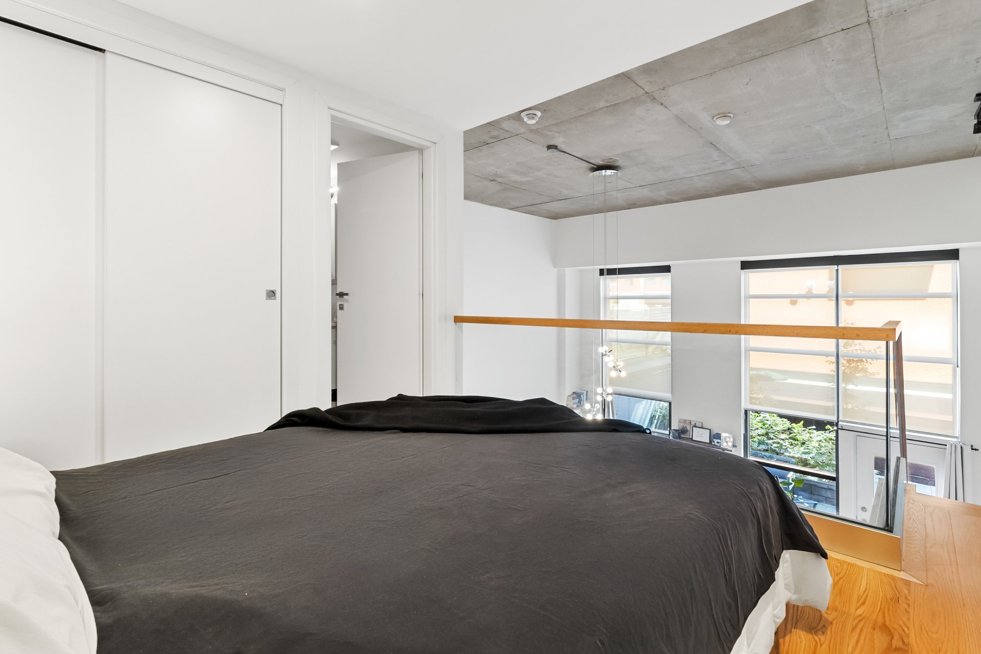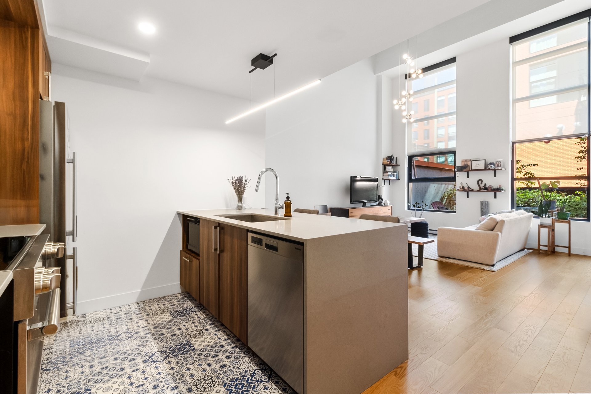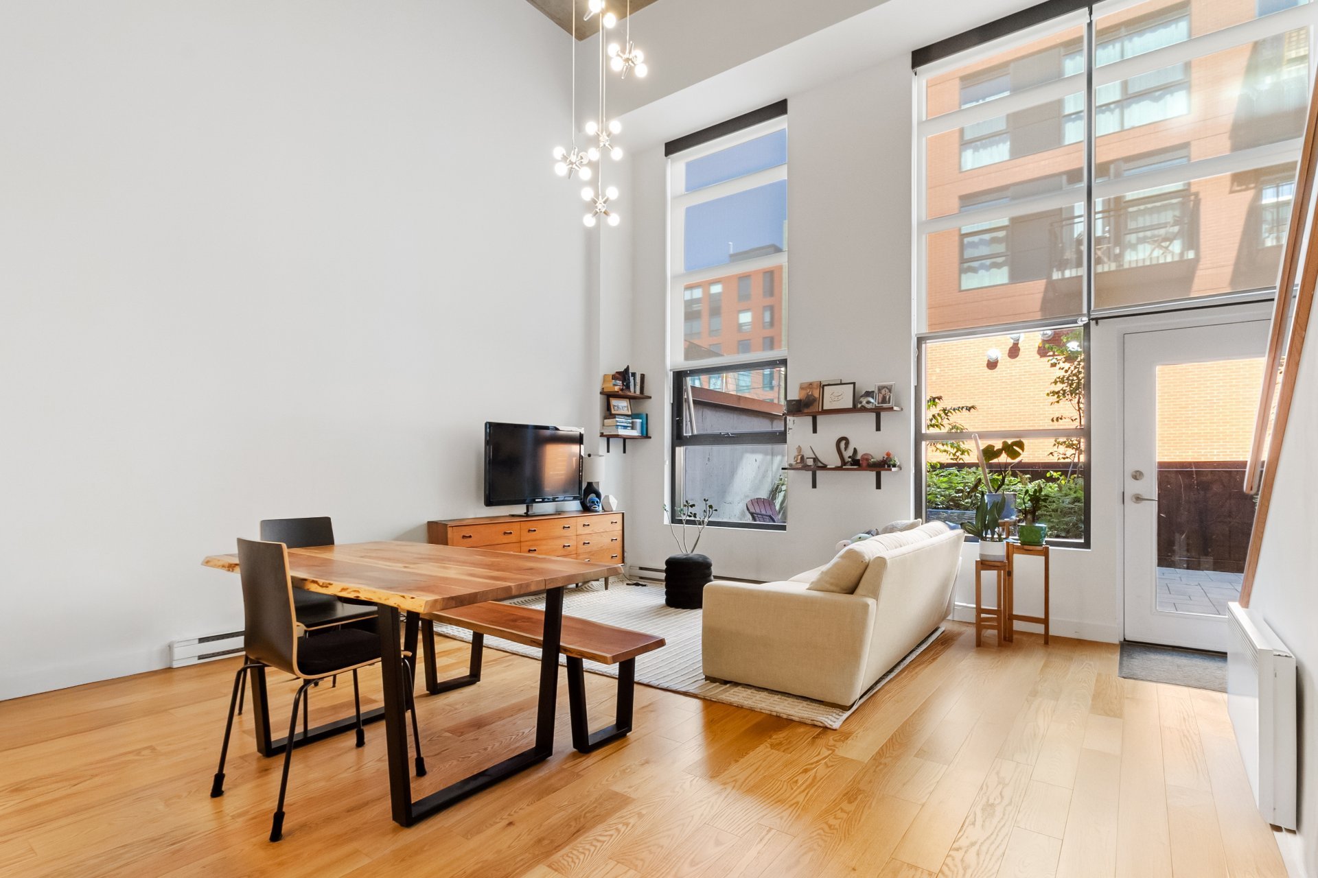 EDWIN | Loft with mezzanine located in the sought-after Marché Atwater district, just steps from the Lachine Canal, bike path, and trendy cafés/restaurants. Open-concept living space, oversized windows and a 17-foot ceiling, offering direct access to a private terrace and the inner courtyard. Modern kitchen with central island, mezzanine bedroom with ensuite bathroom. Equipped with a central vacuum, wall-mounted air conditioning, storage space, and a garage.