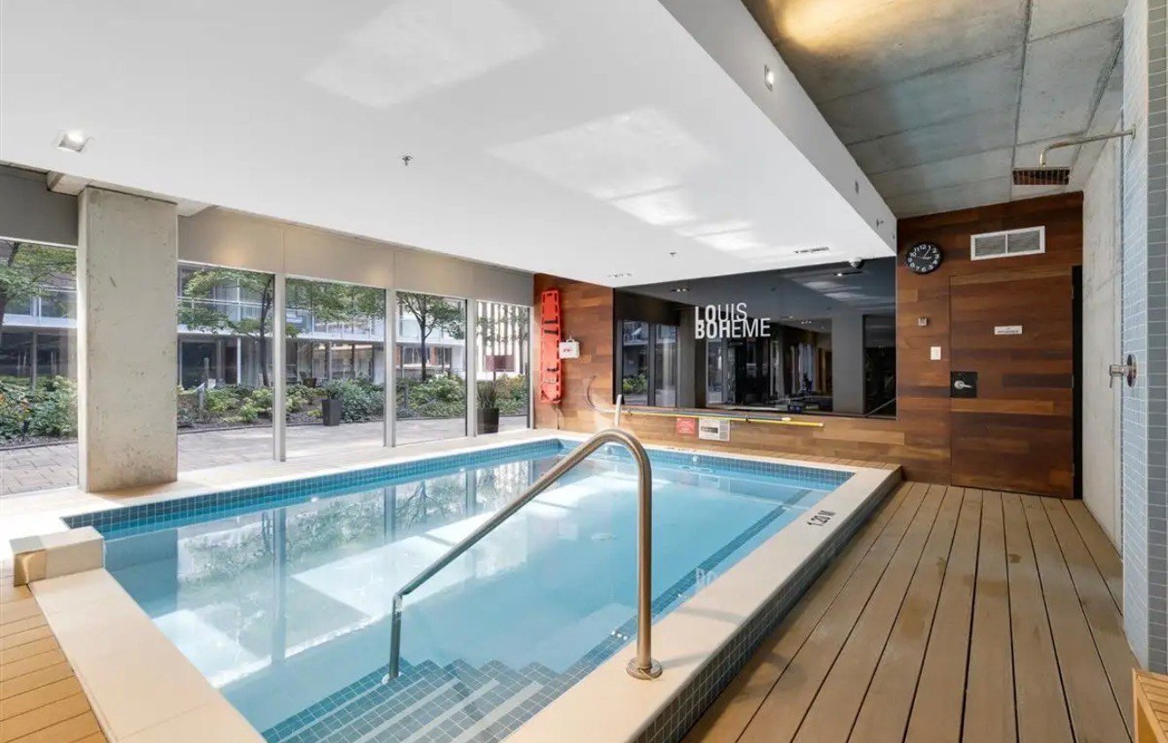 Louis Bohème is a prestigious and well-managed building known for its quality construction, attentive maintenance, and high-end amenities. Residents enjoy access to a fully equipped fitness center, indoor swimming pool, sauna, and a library/lounge with direct access to the landscaped gardens. The building features four elevators, all monitored by security cameras, as well as 24/7 security personnel in the lobby and common areas, ensuring peace of mind and privacy.
