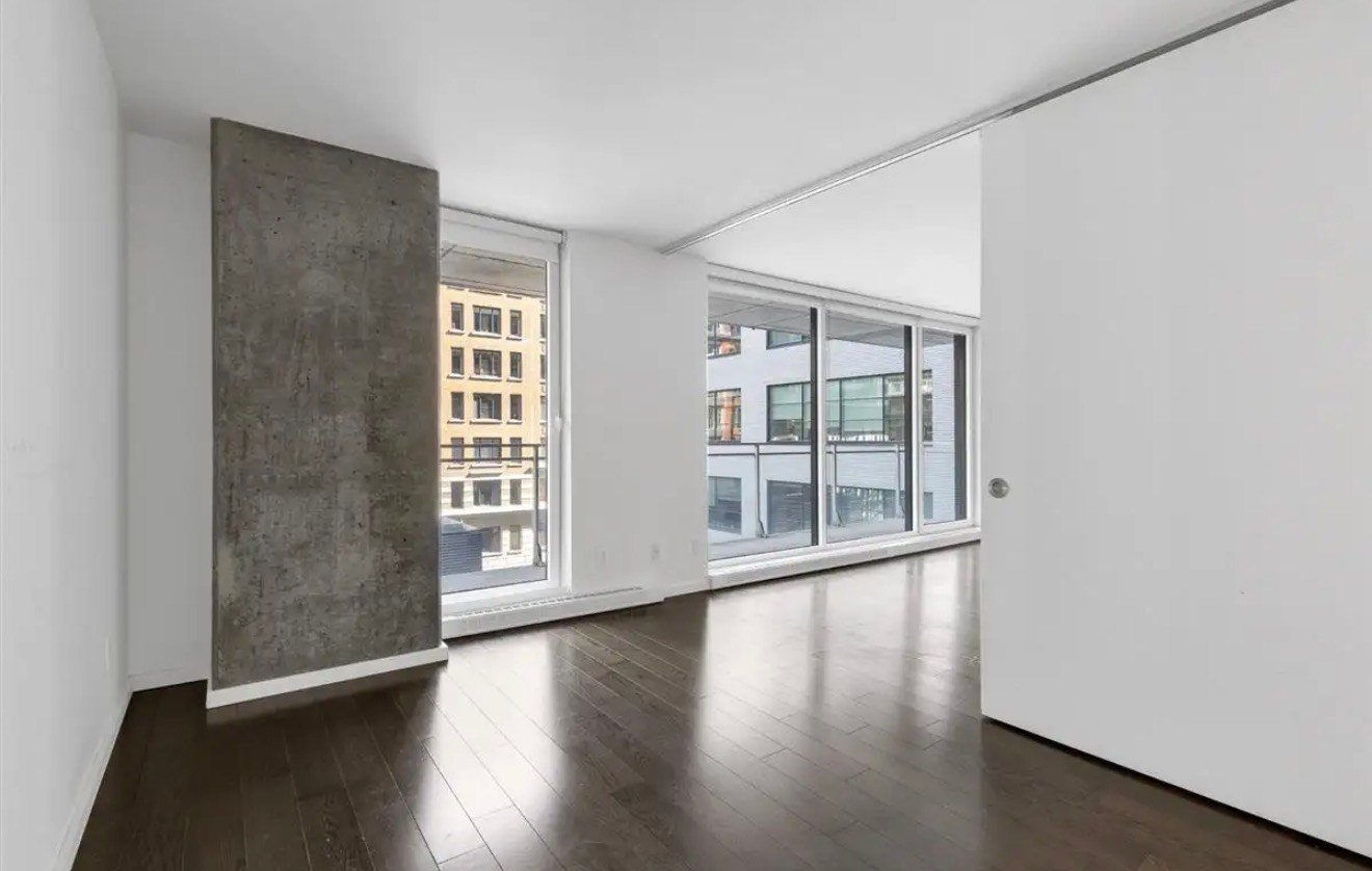 Refined 2-bedroom condo for rent with parking in the sought-after Louis Bohème, ideally located at 350 De Maisonneuve Ouest in downtown Montréal. Bright open-concept layout with large windows and peaceful garden views. Modern kitchen seamlessly connects to the dining and living areas, offering an elegant and functional space. Residents enjoy premium amenities including a fitness center, indoor pool, sauna, library/lounge with garden access, 24/7 security, and multiple elevators. Exceptional location in the Quartier des Spectacles with direct access to Place-des-Arts metro, steps from restaurants, shops, and cultural venues.