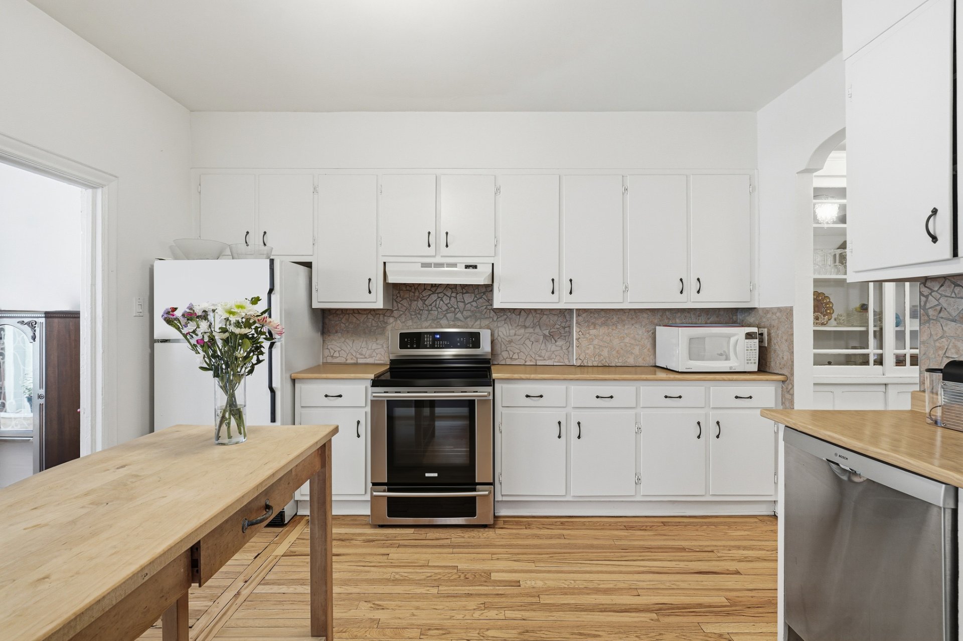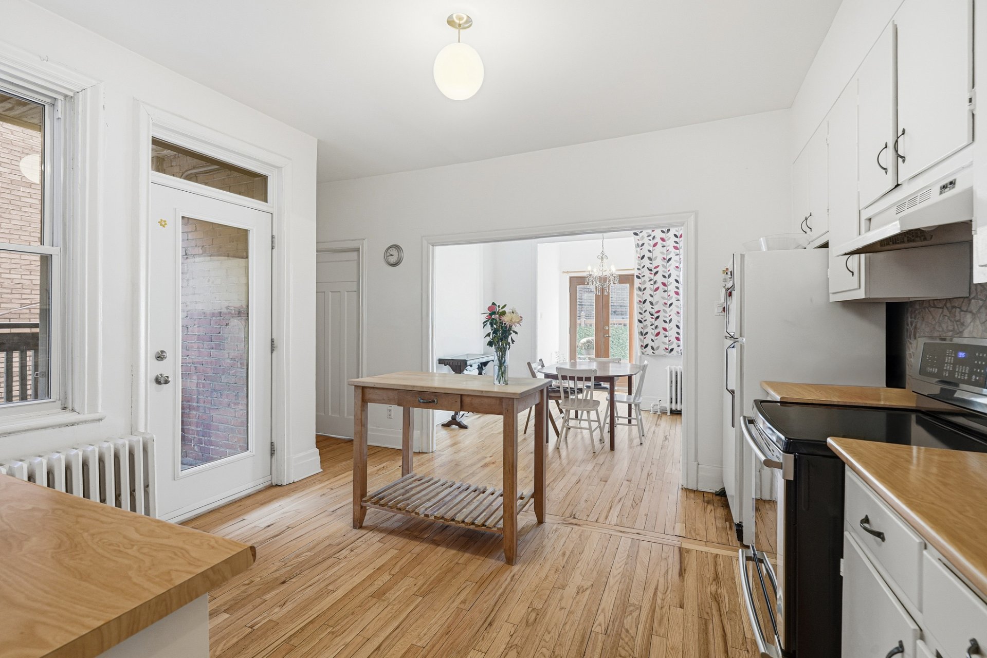 + Central dining room with access to the kitchen and built-in dresser