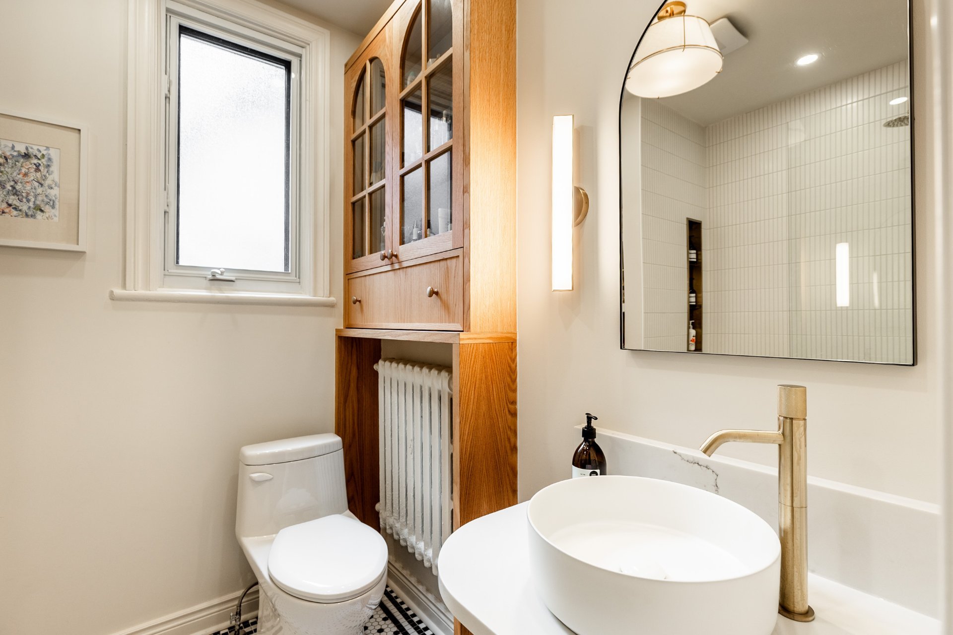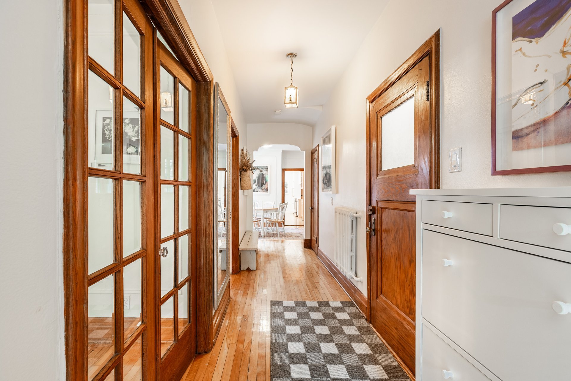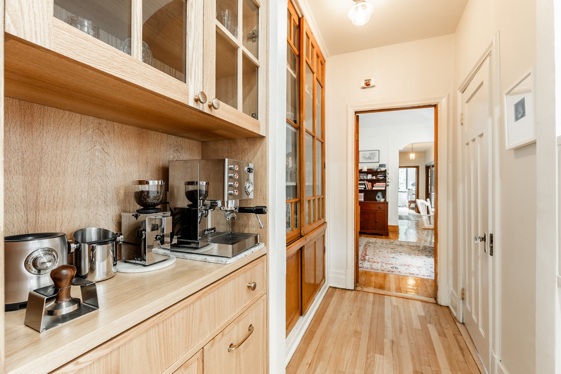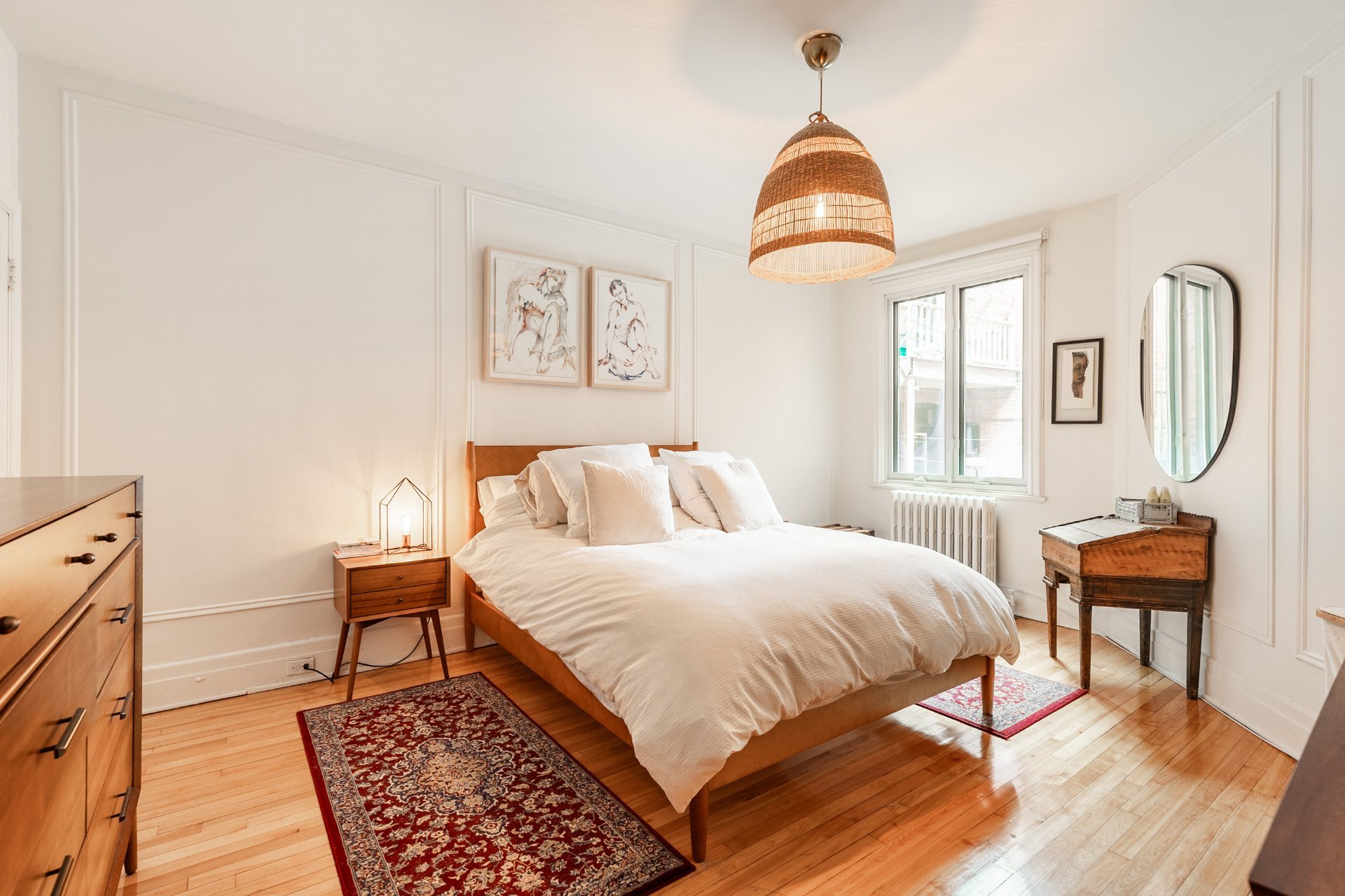 Spacious condo of over 1,300 sq. ft. located on the second floor of a triplex, in the heart of the neighborhood on a quiet street just steps from schools, parks, and shops. It features all the typical Outremont charm: original woodwork, elegant moldings, French doors, a private front balcony, and a rear terrace. Nine-foot ceilings. Kitchen and bathroom fully renovated with high-end materials: quartz countertops and backsplash, wooden cabinetry, built-in appliances, and custom millwork. Three bedrooms and an office (possibility of a fourth bedroom).