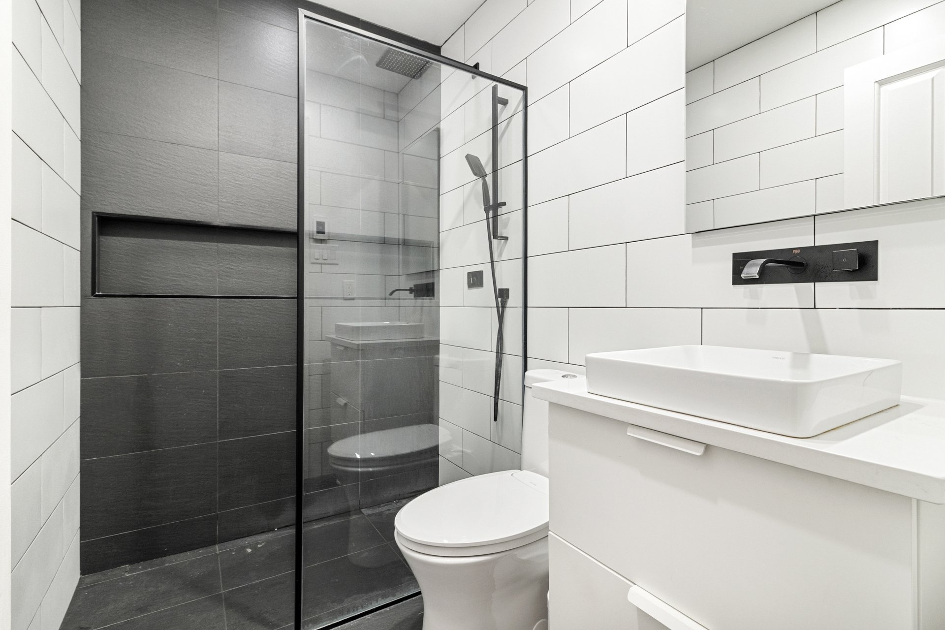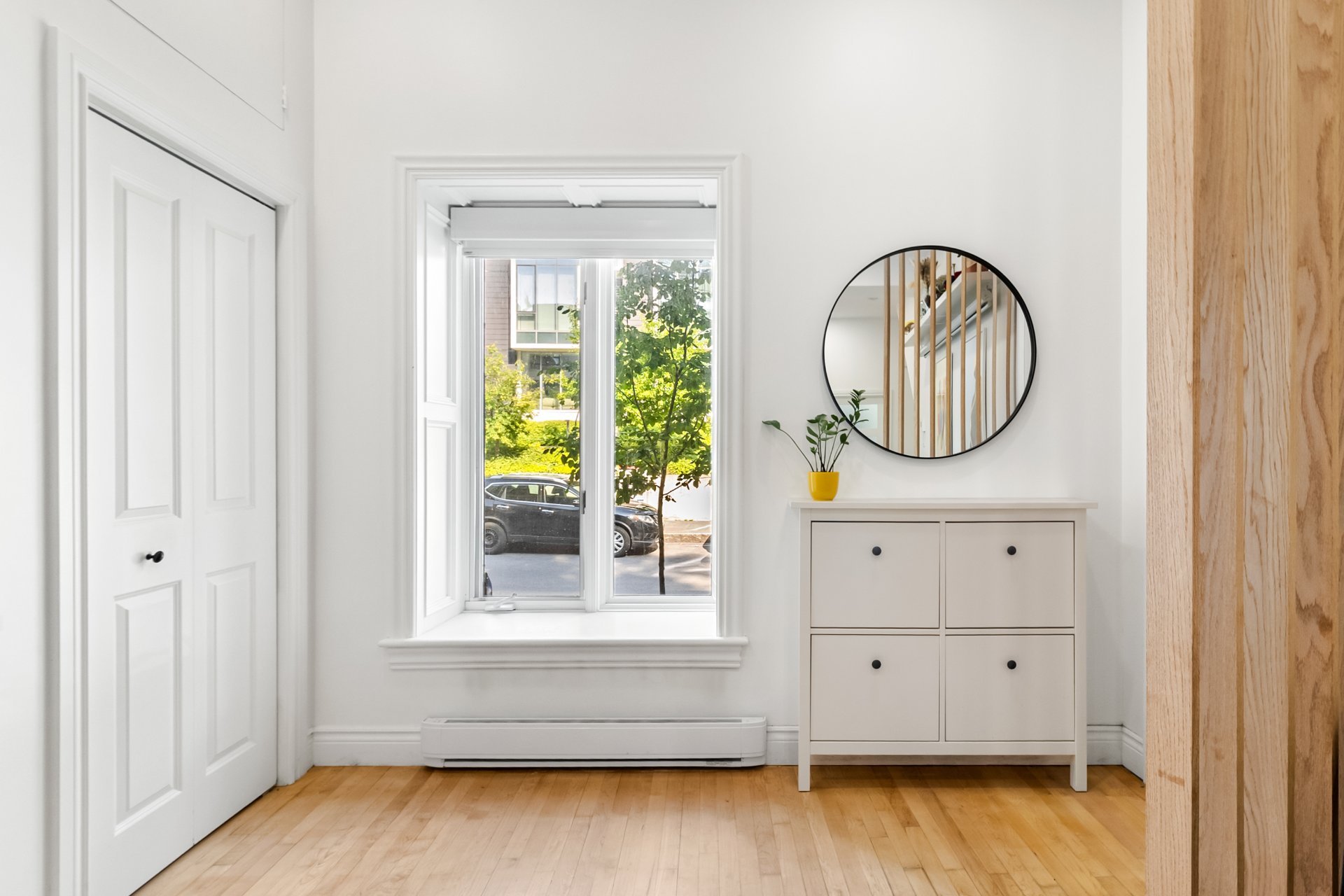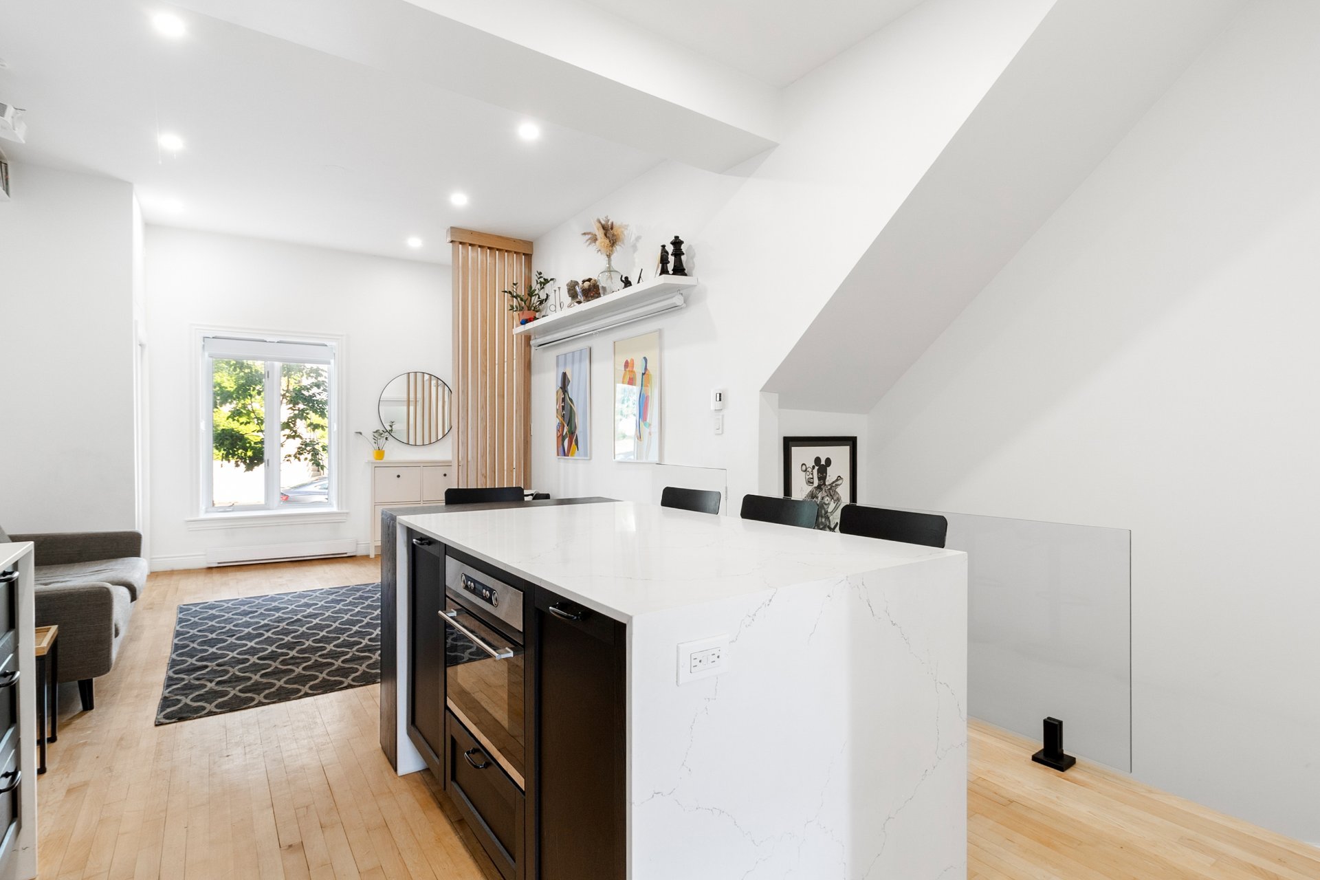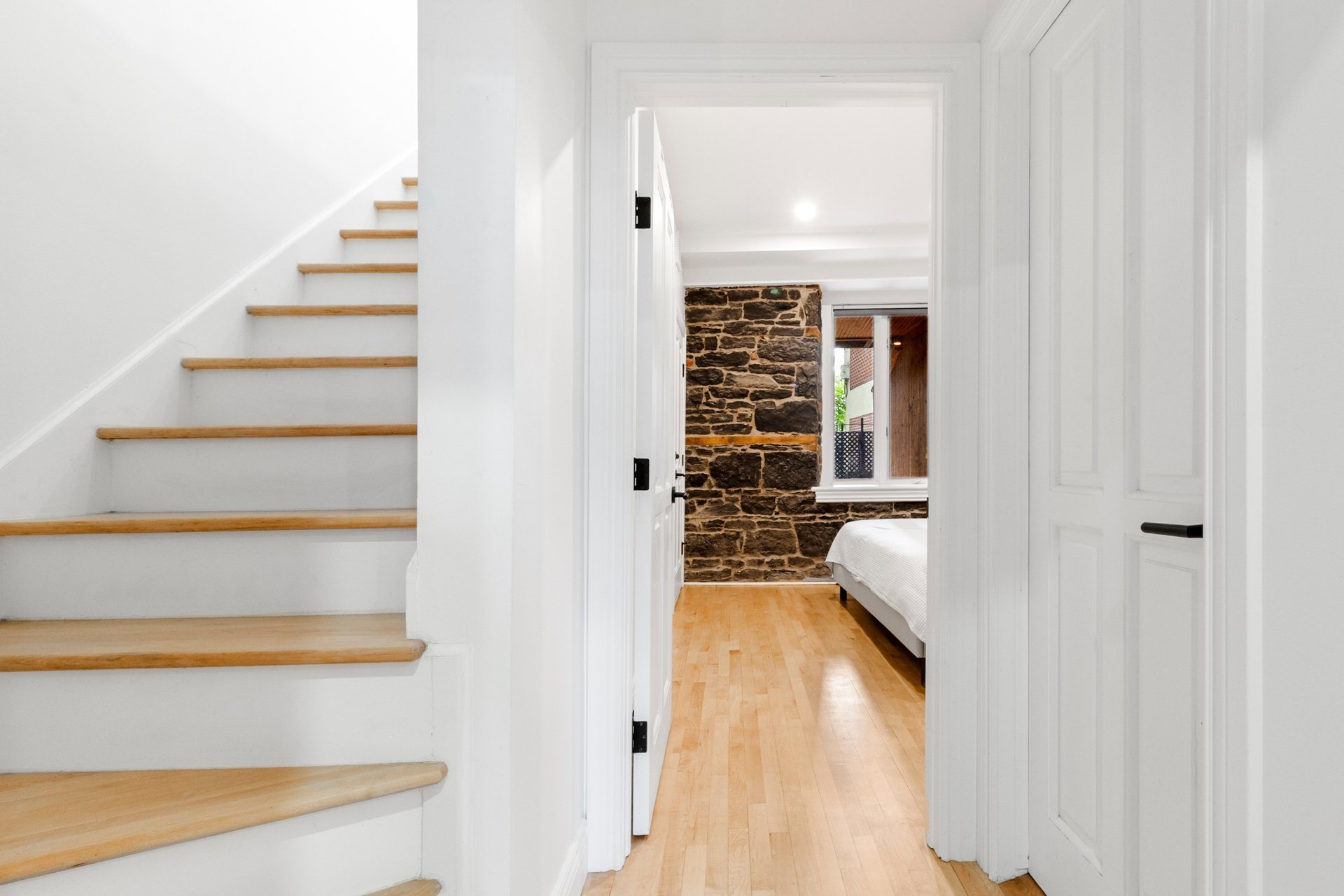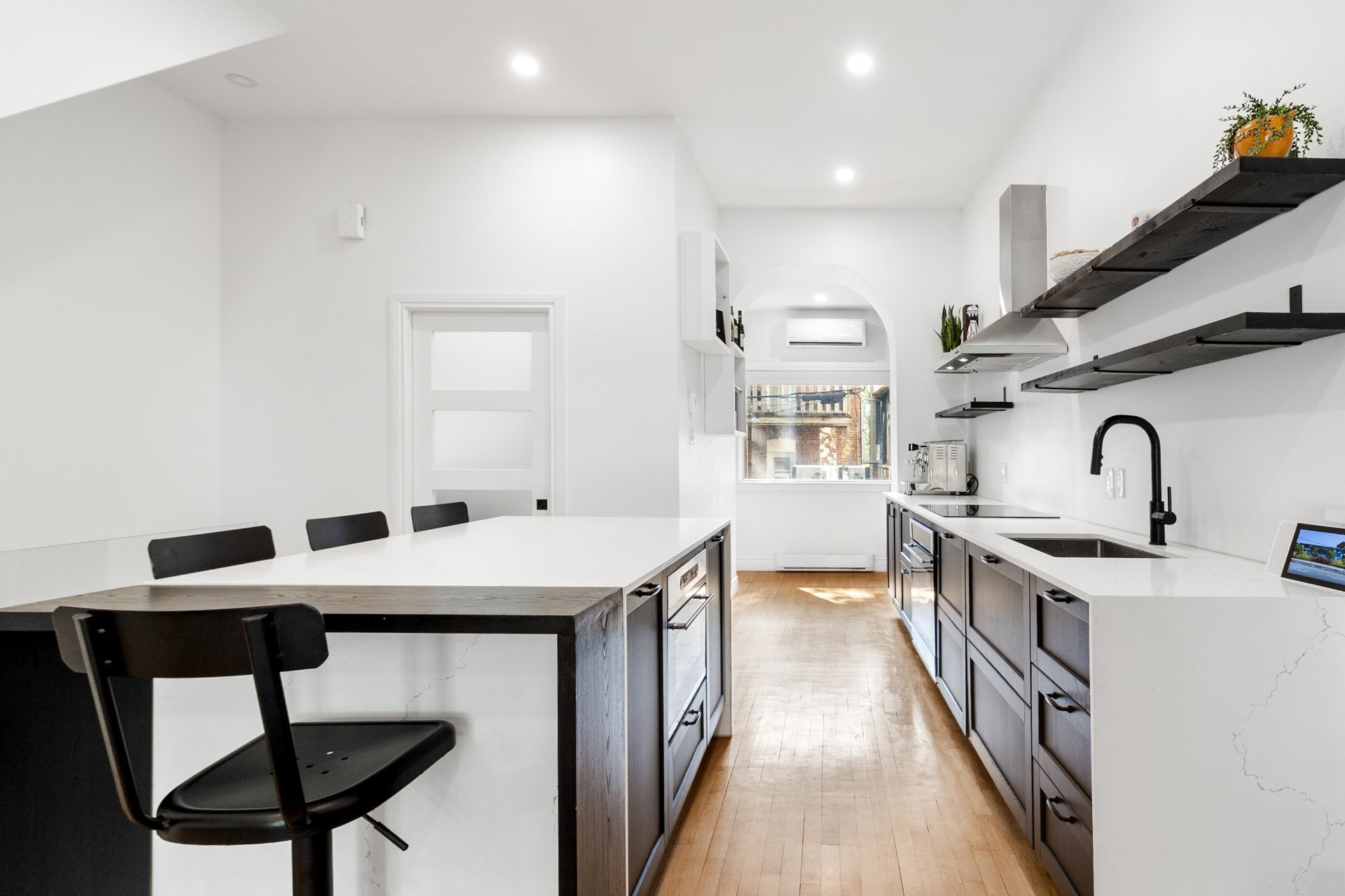 Located in the heart of downtown, this renovated two-level condo combines a prime location with modern comfort. Just steps from Lucien-L'Allier metro, the Bell Centre, Concordia, McGill, the Museum of Fine Arts, as well as shops and restaurants. The main floor features a bright open living area with hardwood floors, exposed white brick, a kitchen with quartz island, and a powder room. The garden level offers two bedrooms, including the primary with access to the interior courtyard, exposed stone wall, and a bathroom with heated floors.