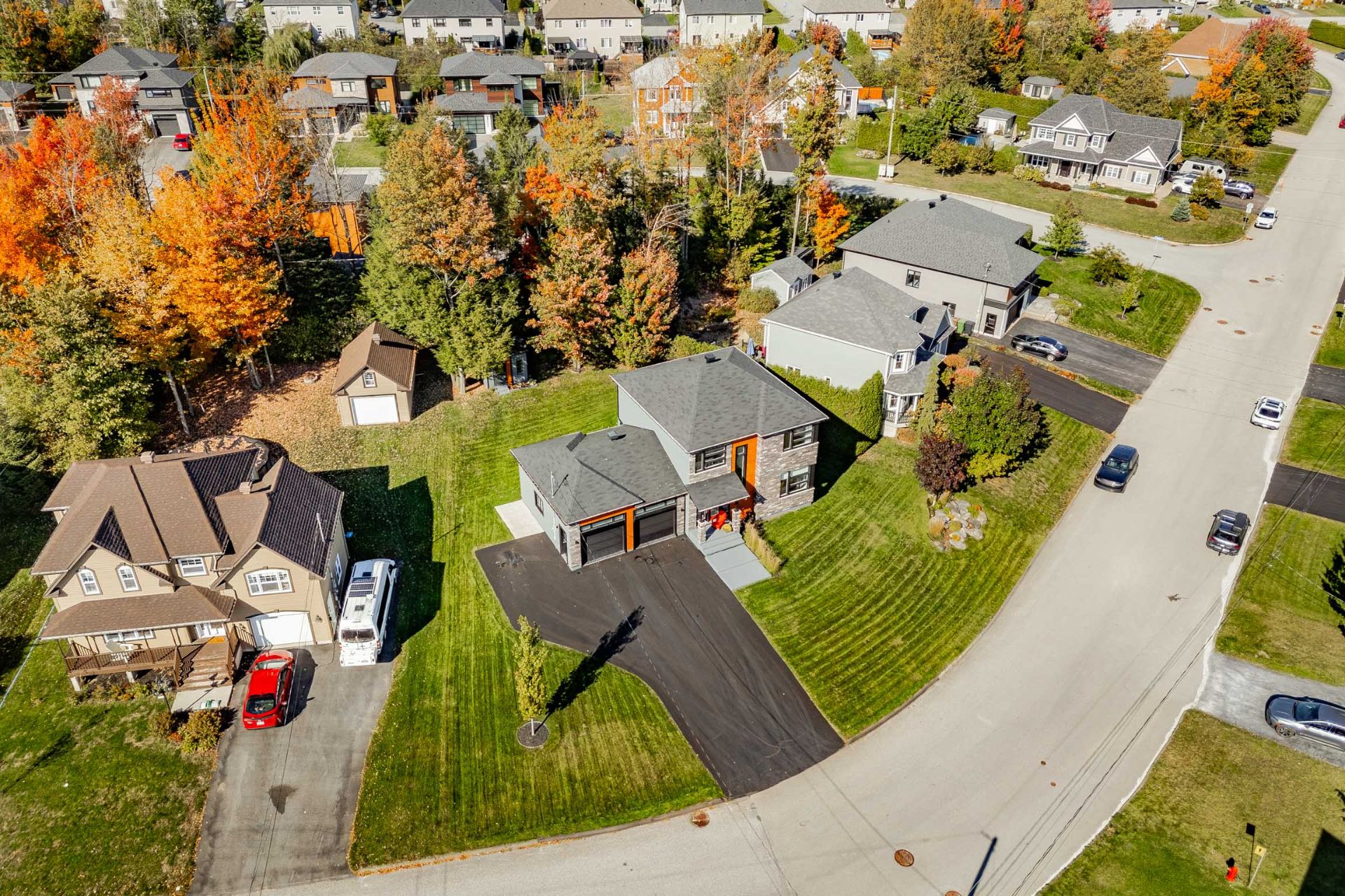 Fall in love with this stunning home in the prestigious Boisé des Chanterelles ! Bright open-concept living, a sleek kitchen with large island and pantry, cozy living room with ethanol fireplace, and elegant covered balcony. Spacious master suite with walk-in and private bath, fully finished basement, double ceramic garage, and beautifully landscaped yard. A rare find combining style, comfort, and flawless maintenance !