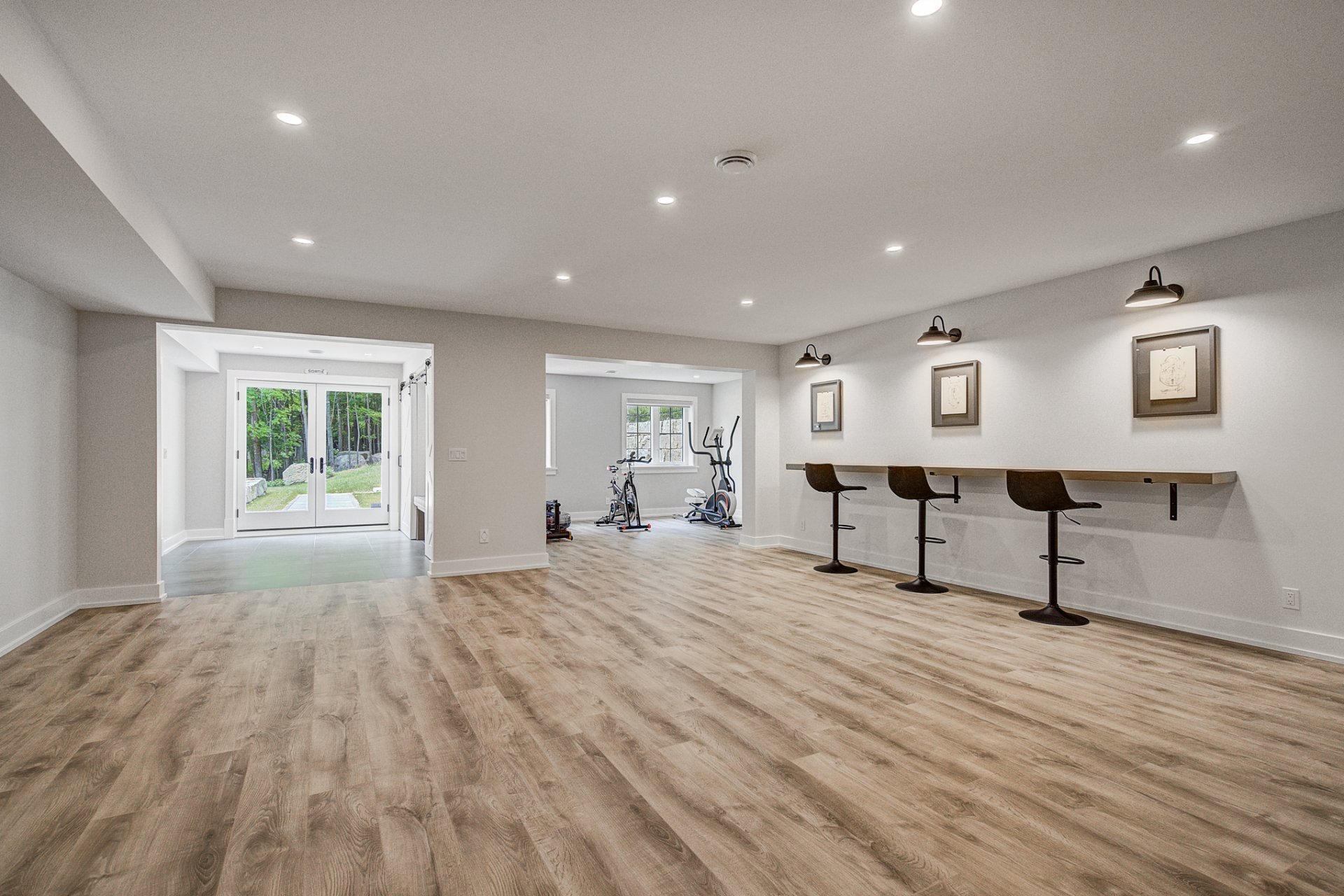 Accessible via a garden-level exterior entrance, the fully finished basement offers a bathroom with a separate shower, a cozy family room, a game room, and a workout area, all of which can be customized to your specific needs.