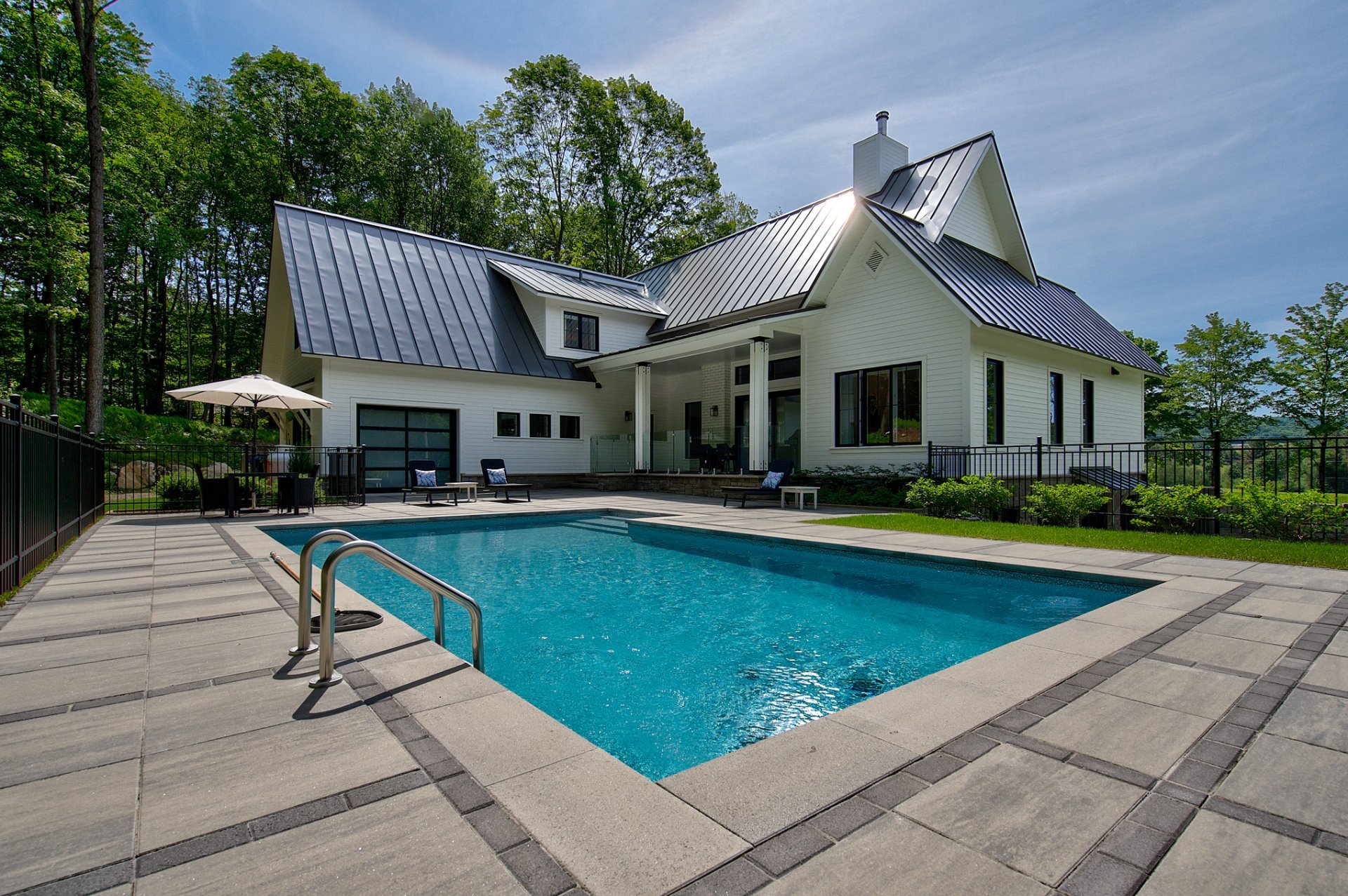 Nestled in the heart of nature on 4.1 acres, this sumptuous modern farmhouse-style residence, built in 2022, embodies elegance and refinement. Offering four spacious bedrooms, four full bathrooms, a powder room, a bright mezzanine, and open living areas, it captivates with its high-end materials and impeccable finishes. The triple garage and in-ground pool add a touch of luxury to this harmonious ensemble. Less than 10 minutes from Bromont mountain, it offers privileged access to the pleasures of nature and outdoor activities.