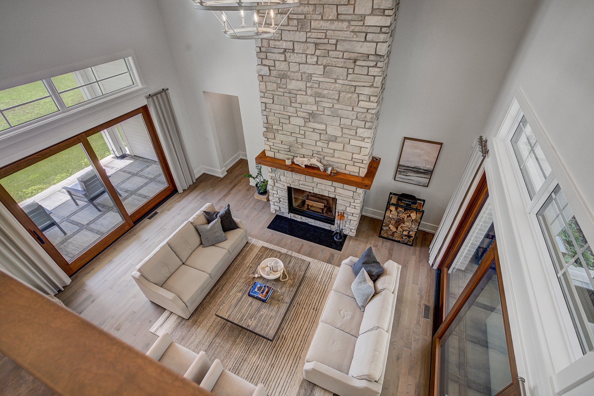 This upper level features three additional bedrooms perfect for family and guests, two contemporary bathrooms with separate showers, a beautiful office space, and a superb mezzanine overlooking the living room.