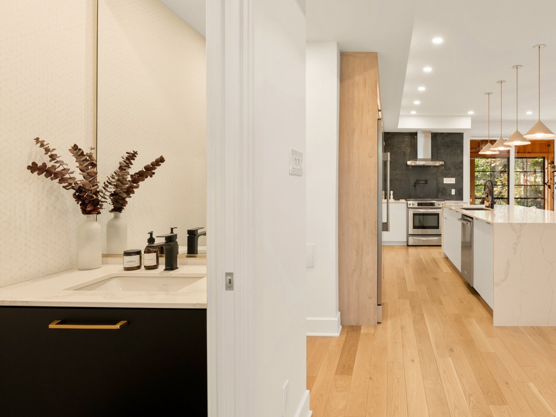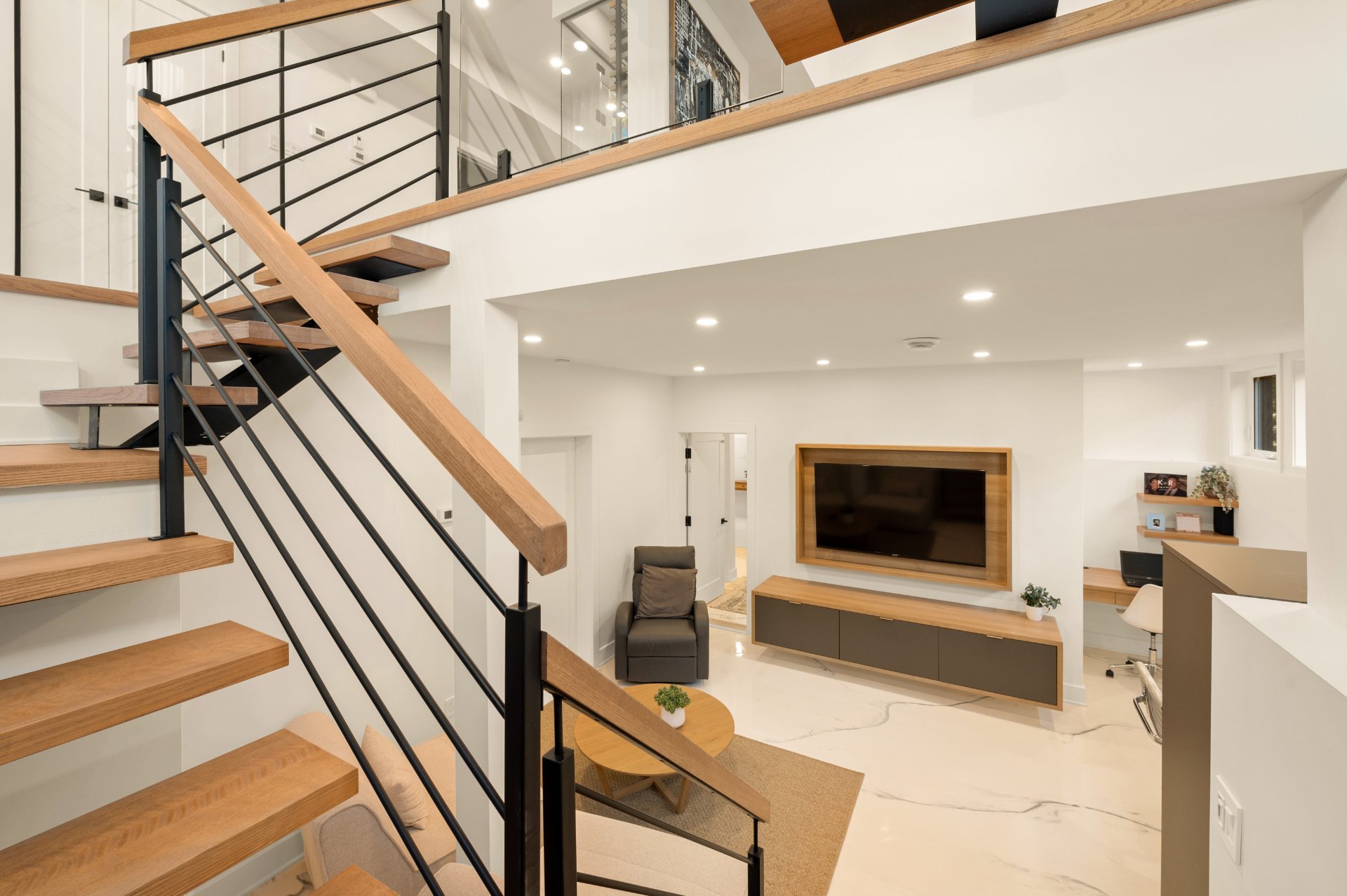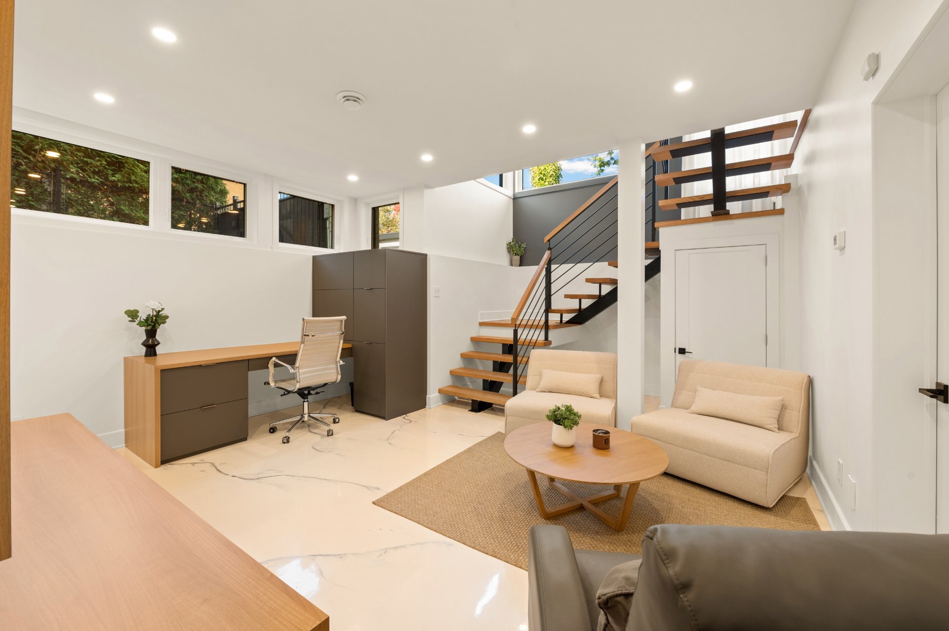 n the basement, a custom bright room is perfectly suited for a family room or a double home office for remote work, complemented by a large bedroom and a third full bathroom. *Recently renovated basement to remove the intergenerational suite and restore the property to a traditional single-family configuration, a highly sought-after layout.