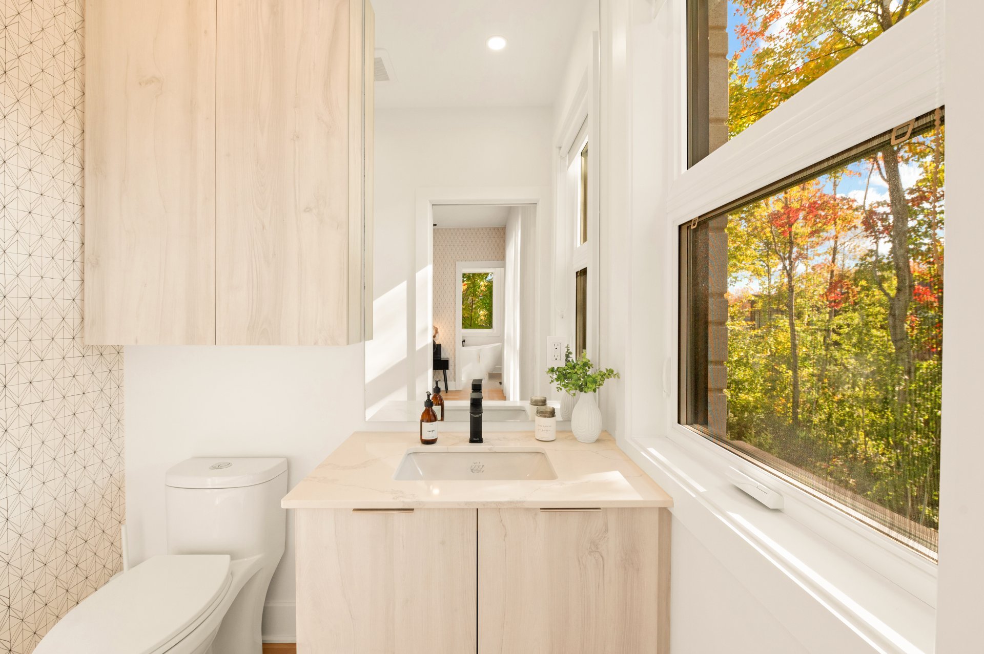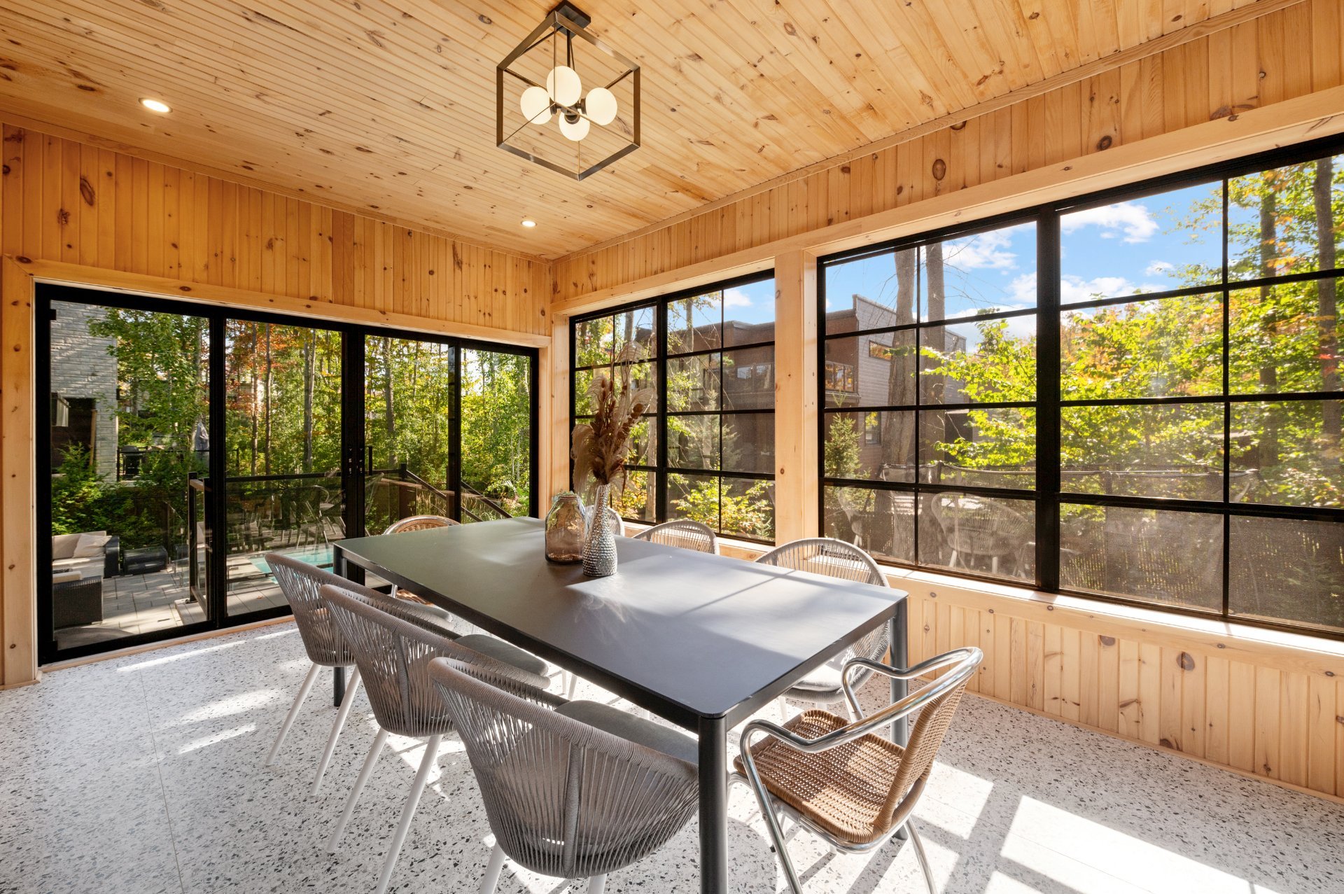 Outdoors, enjoy a wooded and fully fenced lot, an in-ground pool, a three-season veranda with a patio heater, and impeccably maintained landscaping.