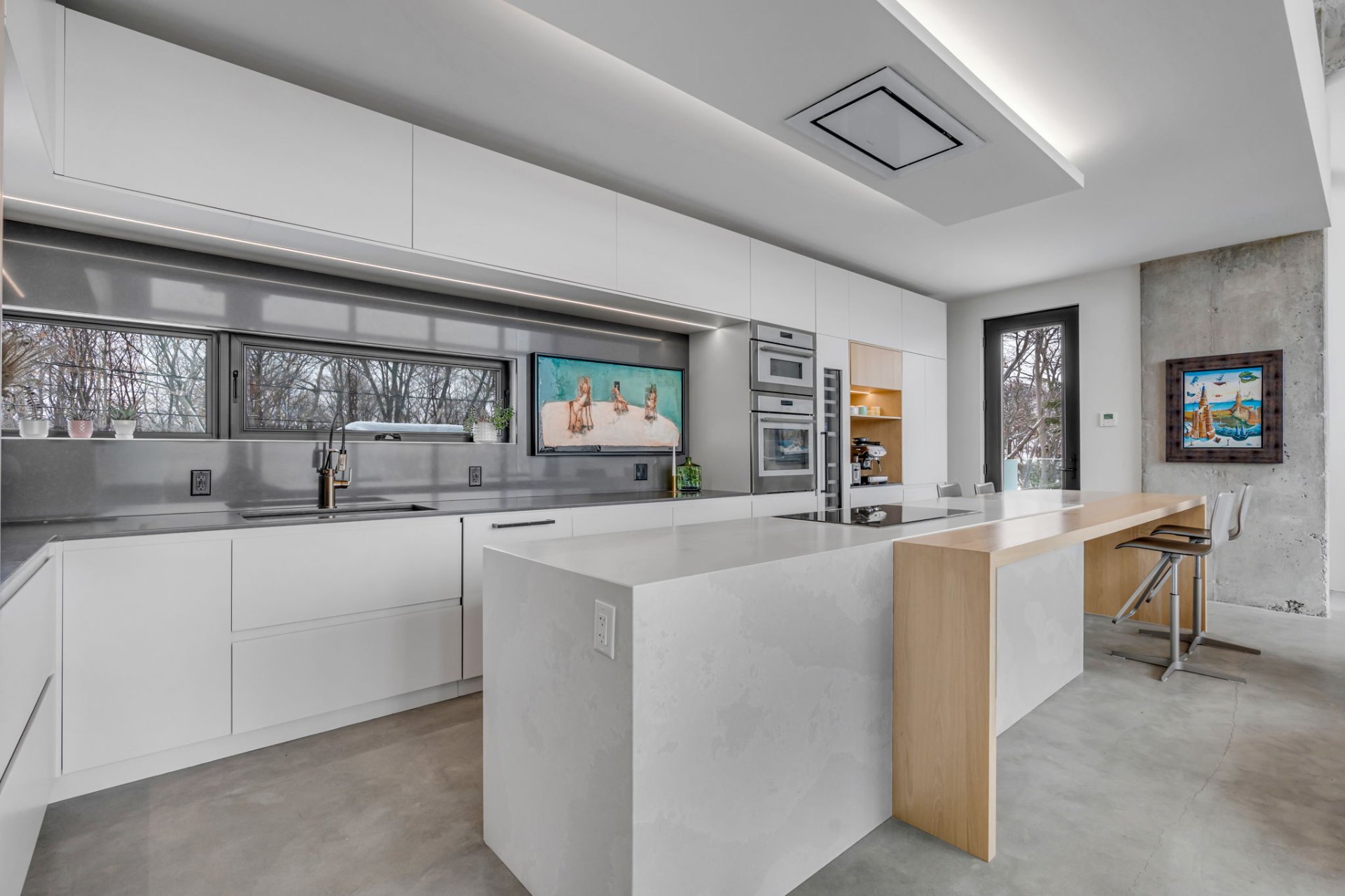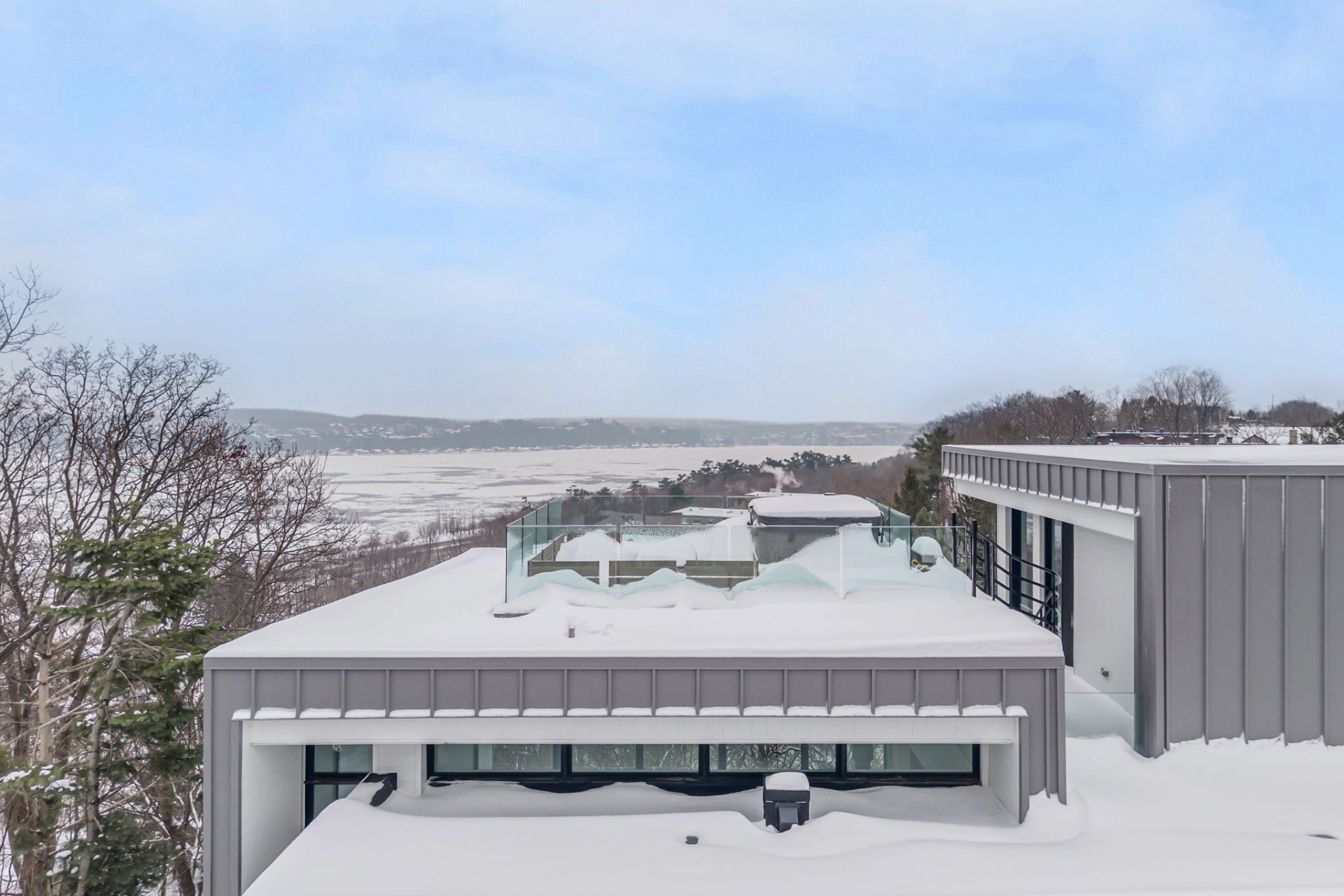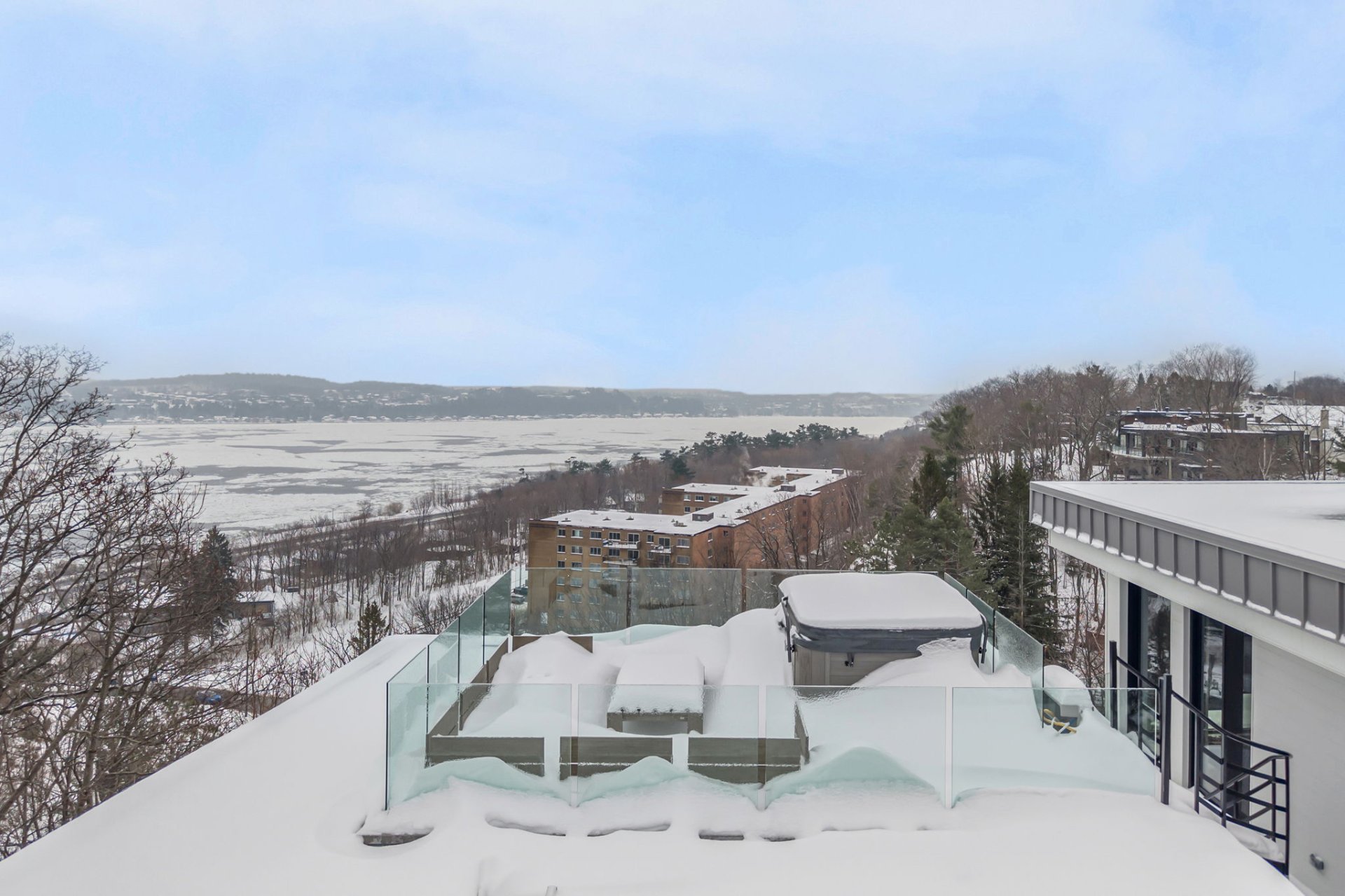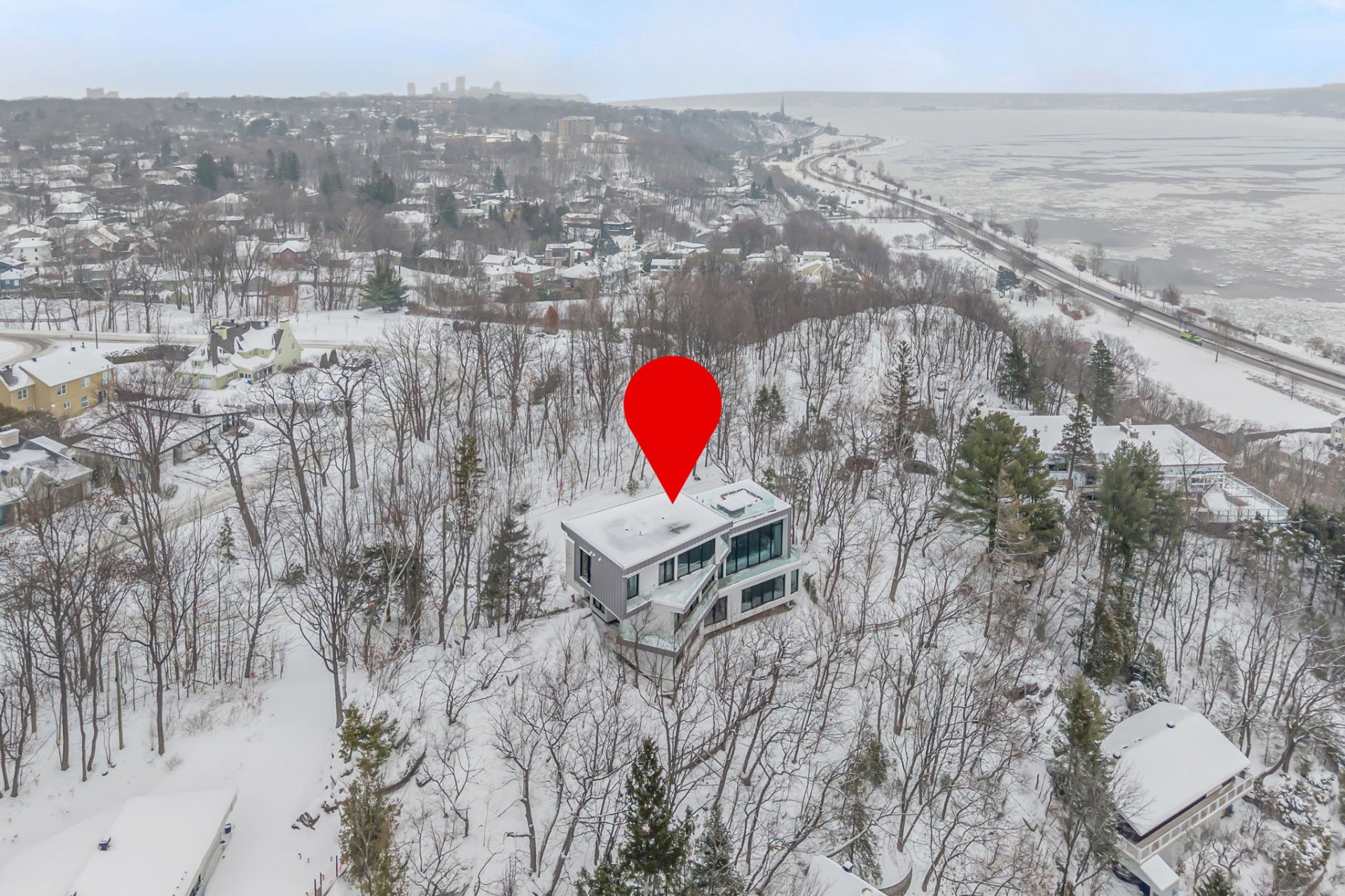 Built in 2023, this contemporary residence in Sillery embodies ultra-luxury through its bold and unprecedented architecture. It offers sweeping views of the Saint Lawrence River. The rooftop terrace is equipped with a spa, perfect for relaxing amidst lush panoramic surroundings. The oversized garage combines your passions seamlessly. The house includes 4 bedrooms, including a spectacular master suite occupying the entire upper floor. A masterpiece never seen before in this exclusive area. No matter where you cast your gaze through these monumental floor-to-ceiling windows, nature penetrates and soothes you. Unique!