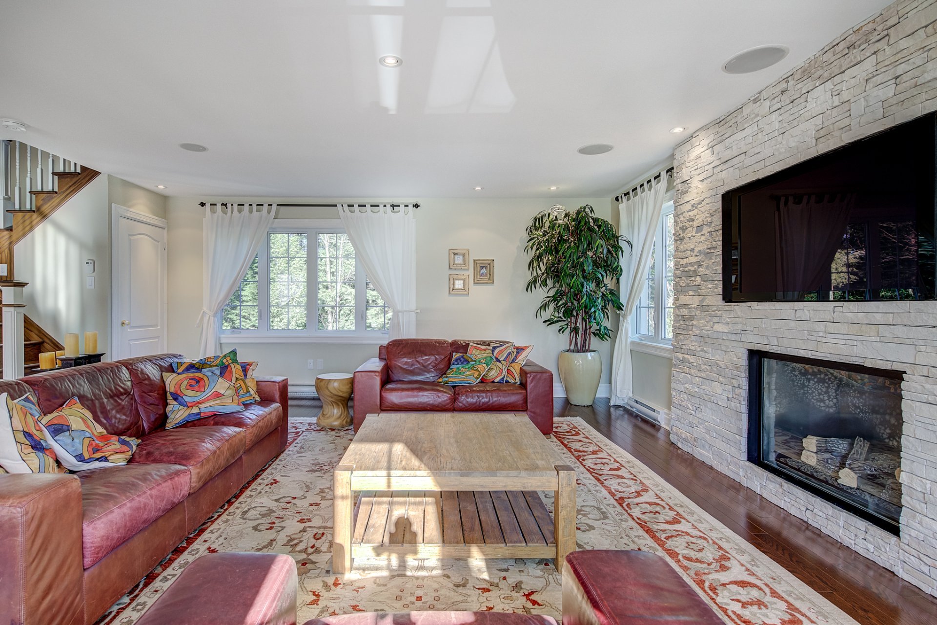 FURNISHED!!! Magnificent country-style cottage directly on the BLAINVILLIER golf course. 4-storey property.... Magnificent land of 25,000 sf. No neighbors in the back with breathtaking layout. 25X23 double garage with SFM (gas fireplace) 6 bedrooms, 10 sqft ceiling in living room (wood fireplace)