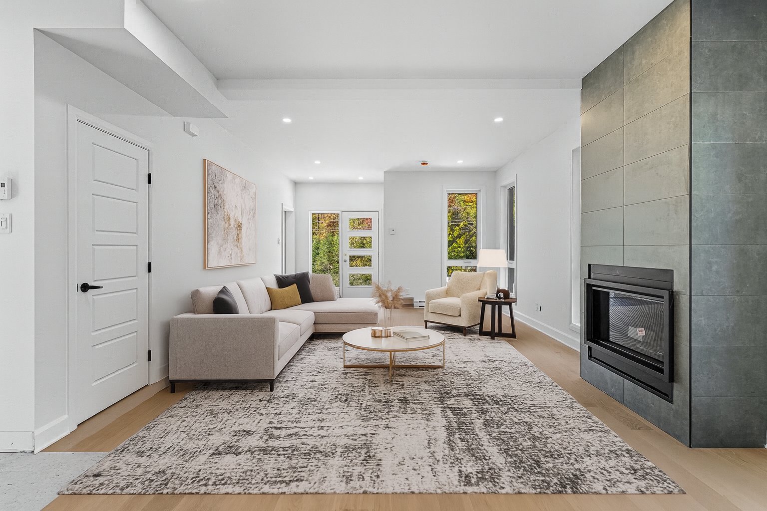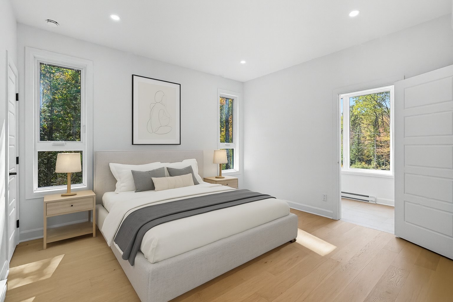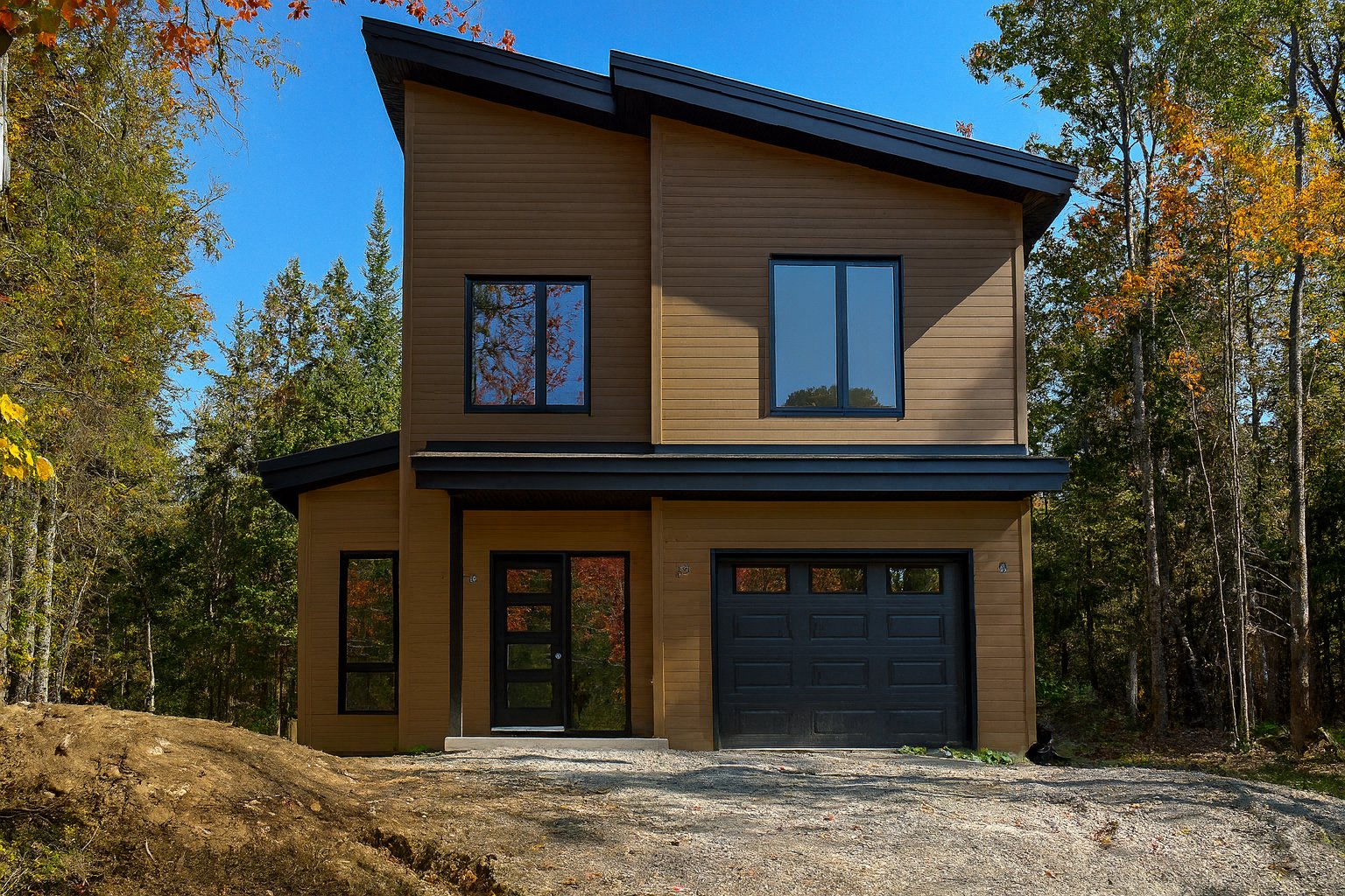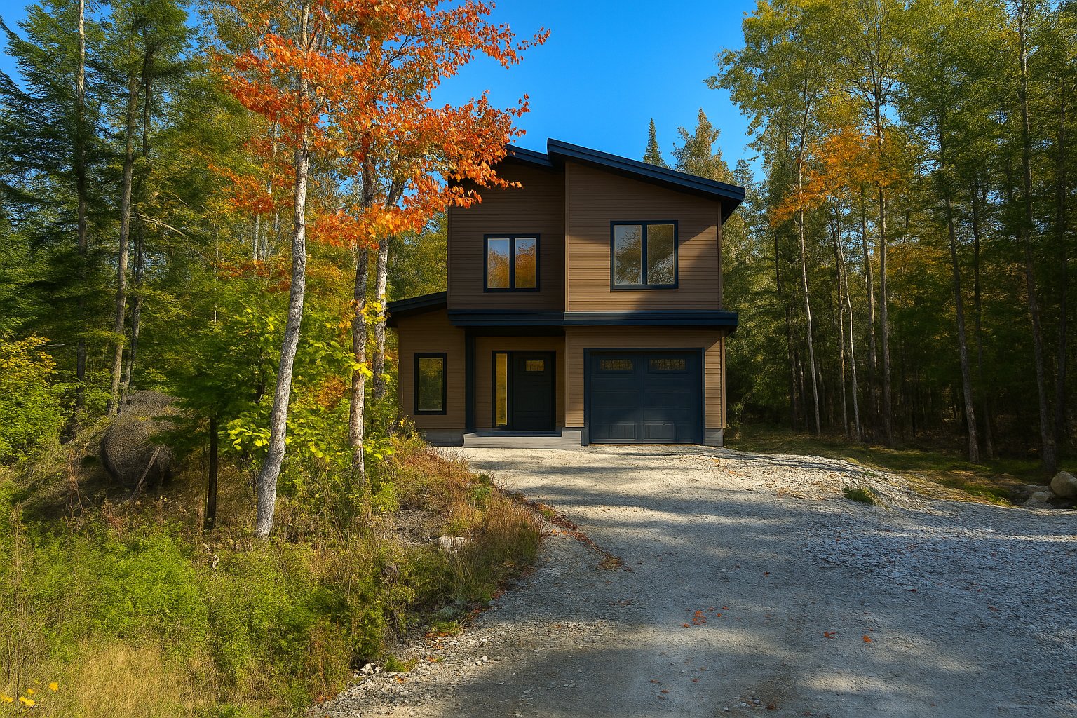 Domaine Sérénité en Forêt offers a peaceful living environment surrounded by nature, ideal for a primary residence or vacation home. Each newly built home features a refined design that blends harmoniously with the wooded surroundings and offers high-quality materials: 9-foot ceilings, gas fireplace, hardwood floors, quartz countertops, master suite, heated garage, and balconies. Located 15 km from Tremblant and 9 km from Mont-Blanc, this project combines modern comfort and tranquility, with a GCR warranty and common fees for maintenance and snow removal.