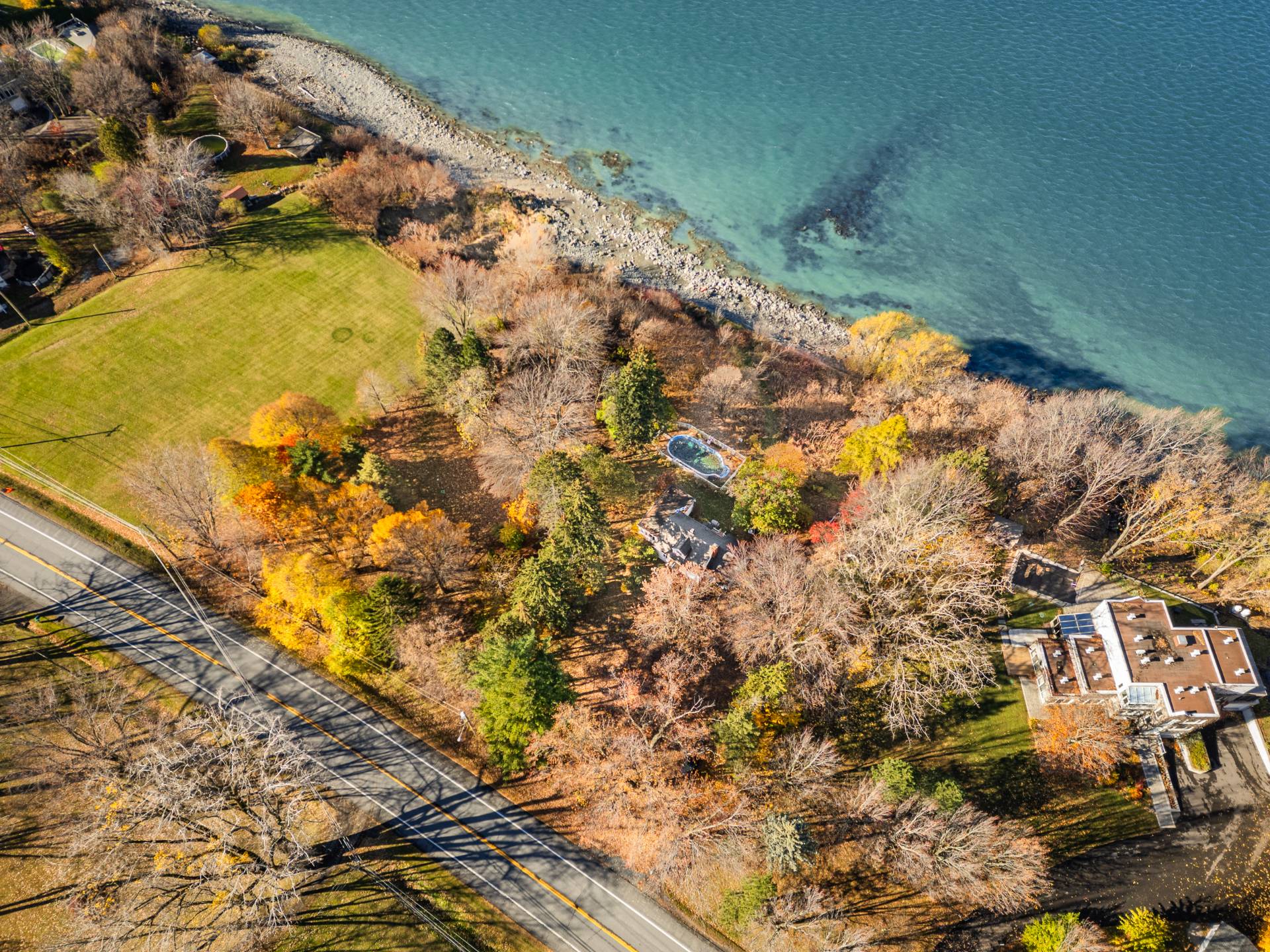Unique waterfront property on the shores of the Saint Lawrence River, set on nearly 80,000 square feet of land, including 250 feet directly along the majestic river. The setting is peaceful and offers rare privacy. The views are exceptional, and the potential is immense.