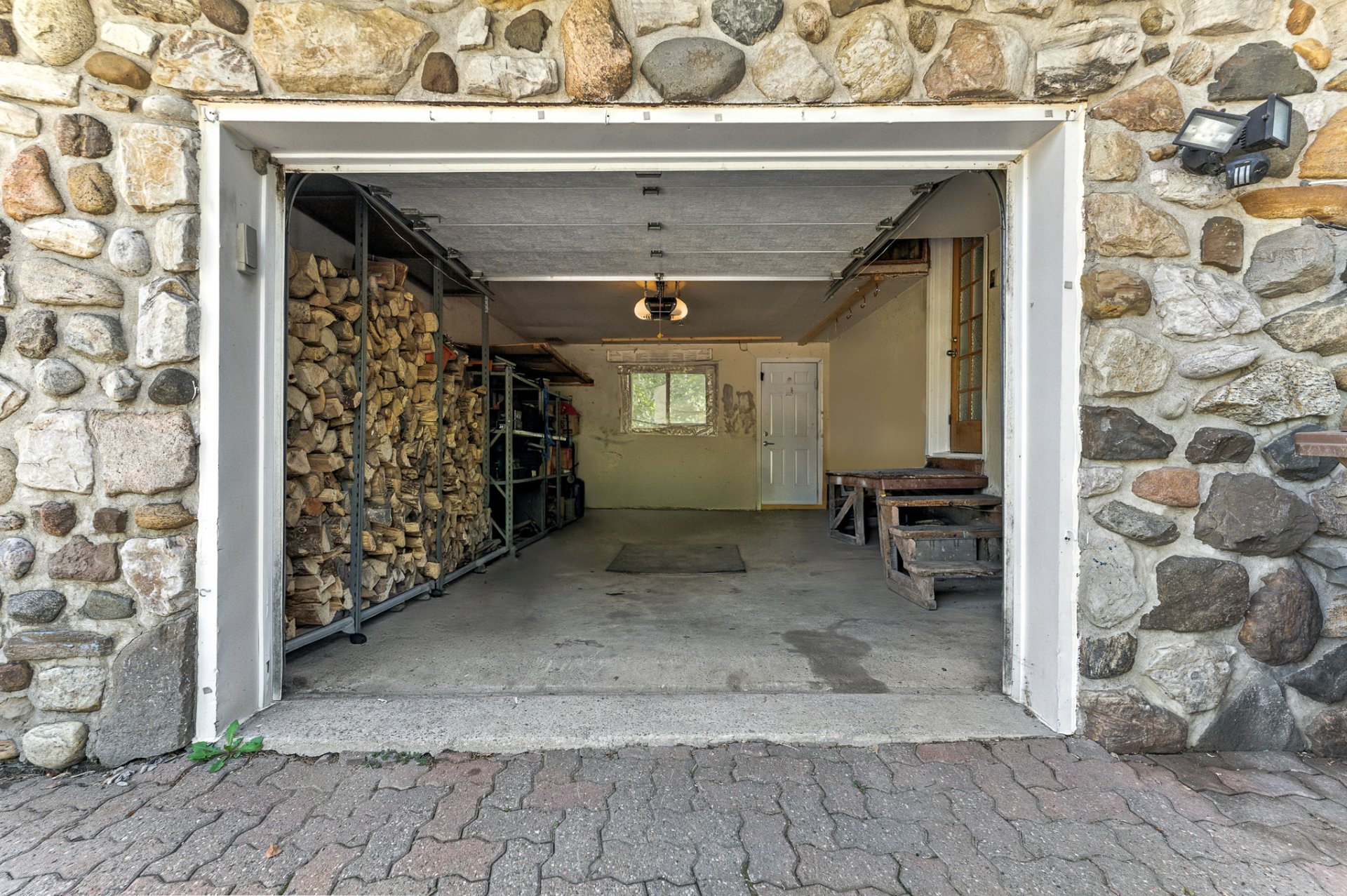 Main Floor: The welcoming entrance hall opens directly into the living room with a wood-burning fireplace, creating a warm and inviting ambiance upon arrival. A convivial dining room, cozy den, bright sunroom, and practical kitchen complete the living areas. The garage is accessed at the end of the hallway, ensuring discretion and convenience. Two comfortable bedrooms, a full bathroom, and a separate laundry room complete this level.
