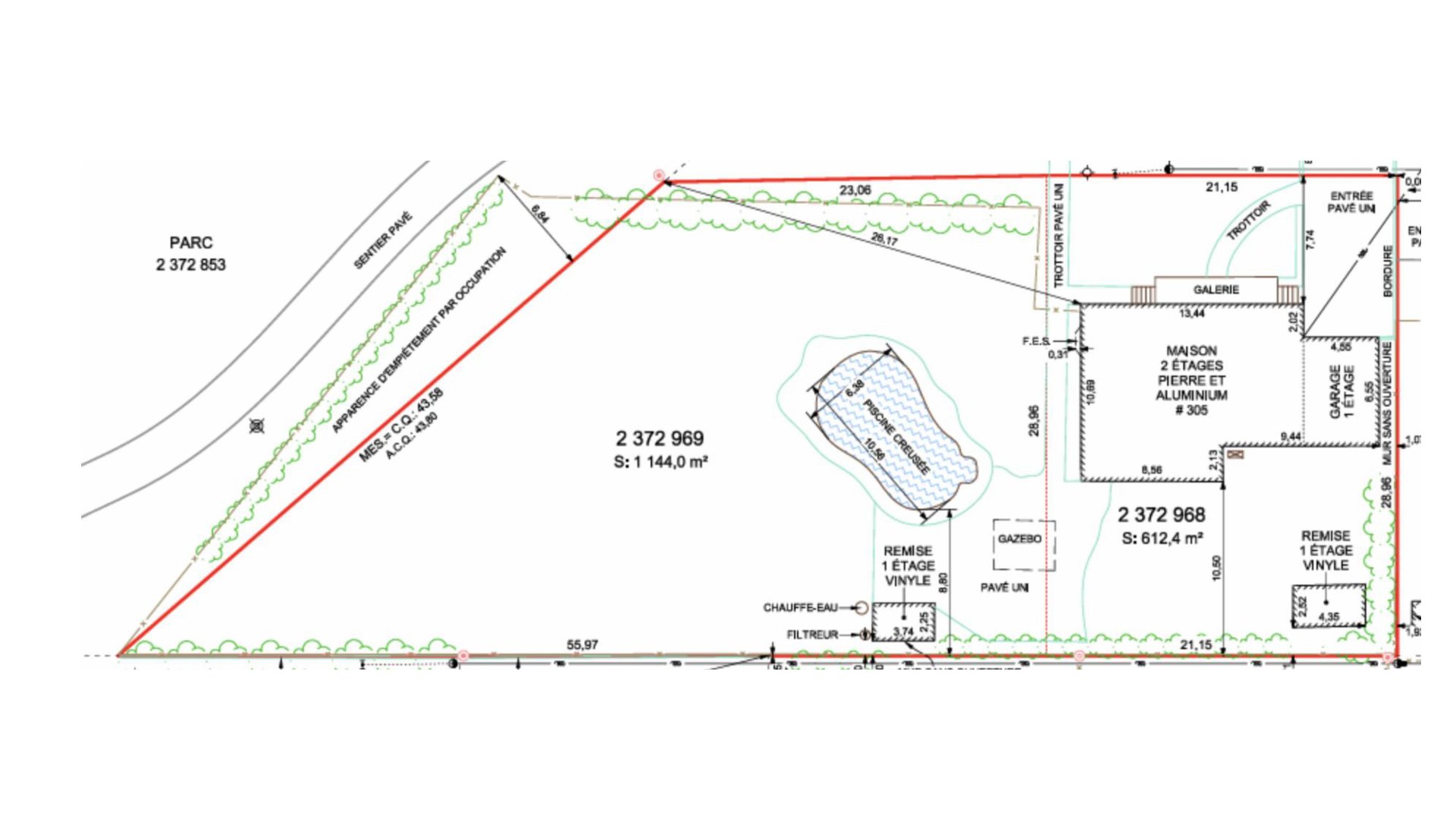 - Refrigerator, Stove, Dishwasher, Washer, Dryer, House heat pump, House furnace, Water heater, Central vaccum and accessories, Light fixtures, Alarm system, Curtains, Curtain rods, Blinds, Pool heat pump, Pool pump, Pool filter, Pool accessories, Pool robot, 2 sheds.