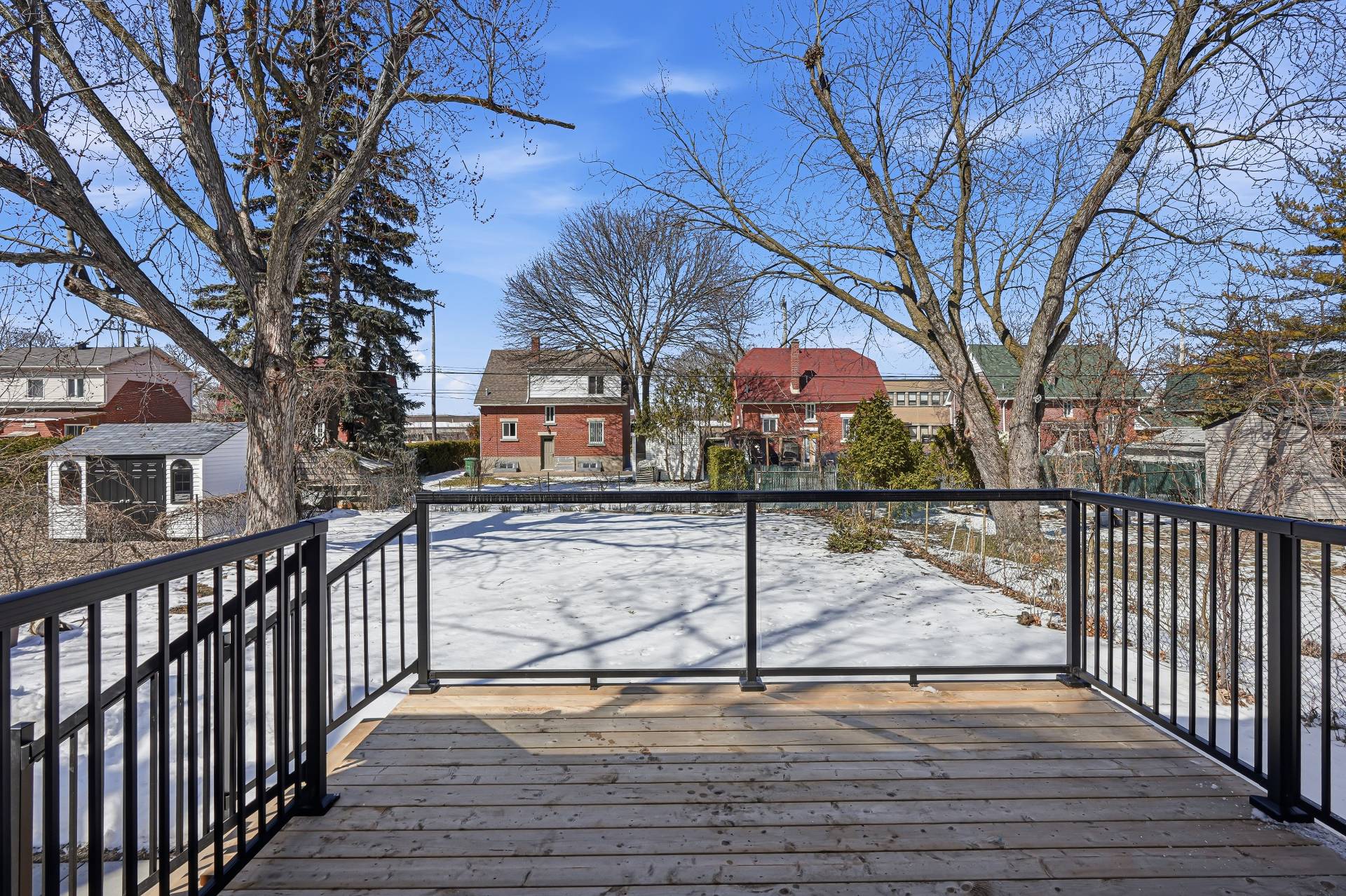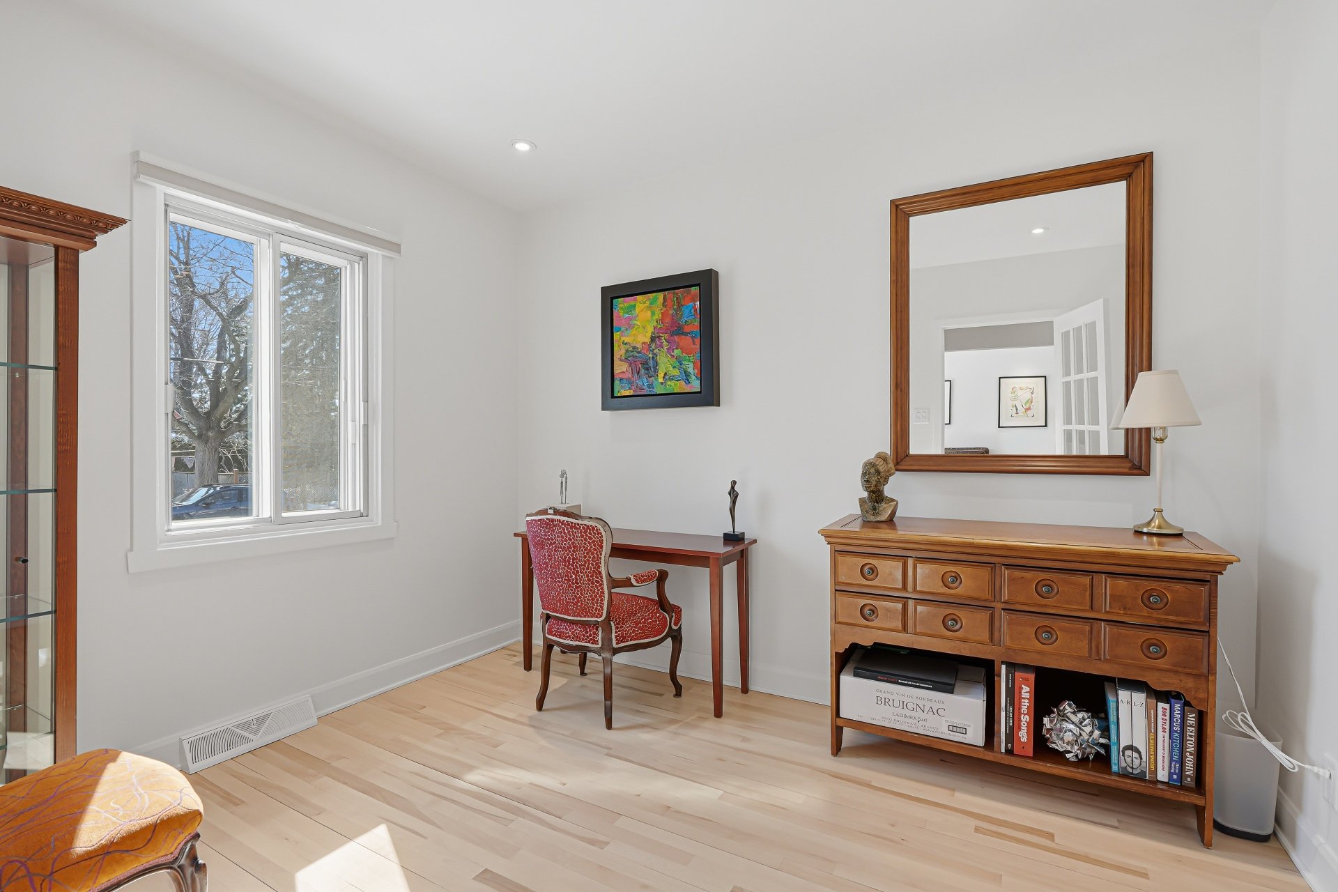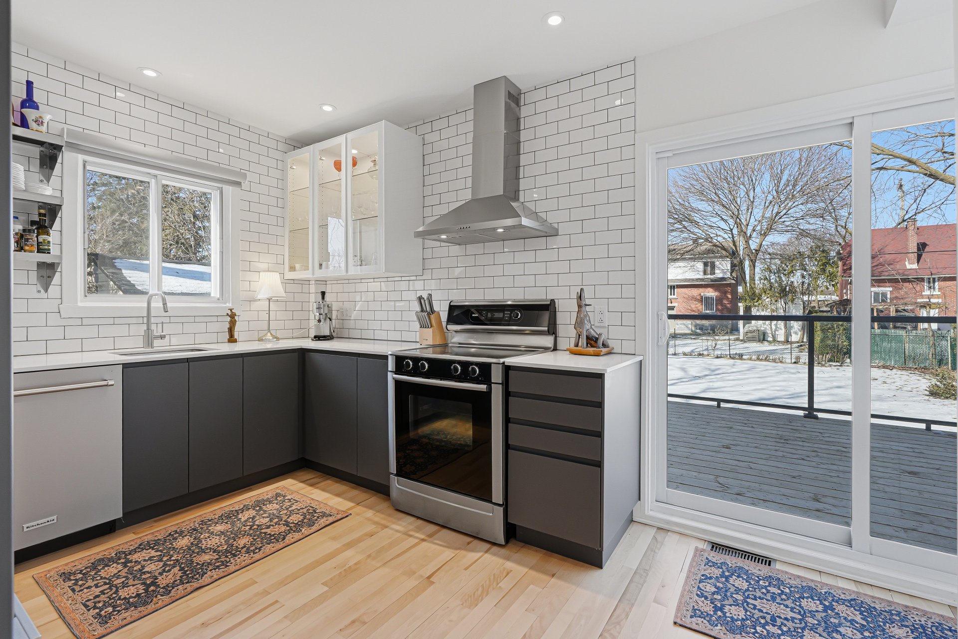 Charming, carefully renovated home offering exceptional brightness on a large landscaped lot. The sightline stretches from the welcoming entrance all the way to the sunny backyard, flowing through the contemporary kitchen and glass-railed terrace. Kitchen features quartz countertops and quality appliances. Beautiful hardwood floors, French doors adding elegance and flow, redesigned lighting and fully renewed finishes throughout. 3+1 bedrooms, central air, air exchanger, 3 driveway parking spots. Southwest exposure, fully fenced yard and mature maples -- a bright, turnkey property in Ville Saint-Laurent, near VMR, shops and amenities.