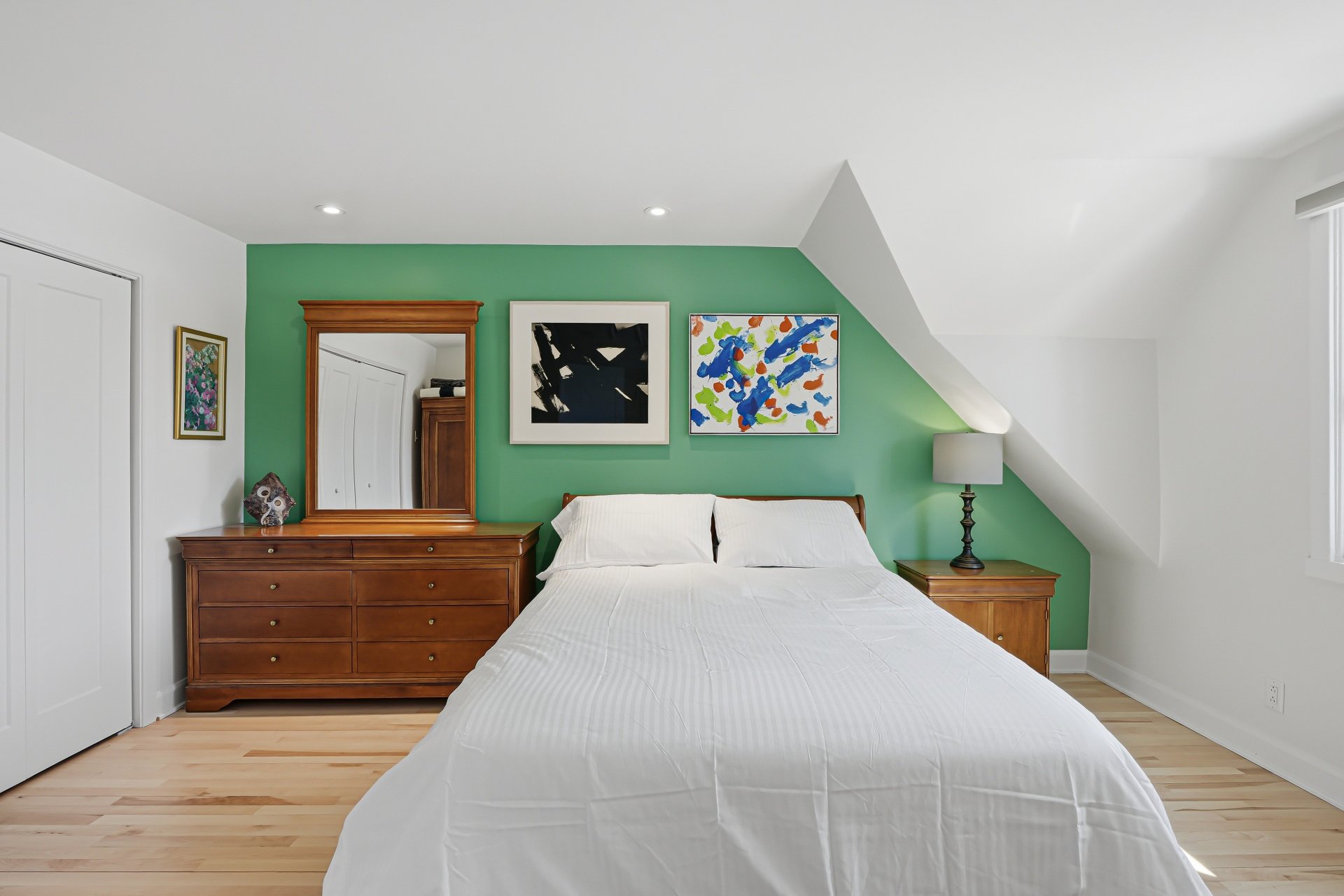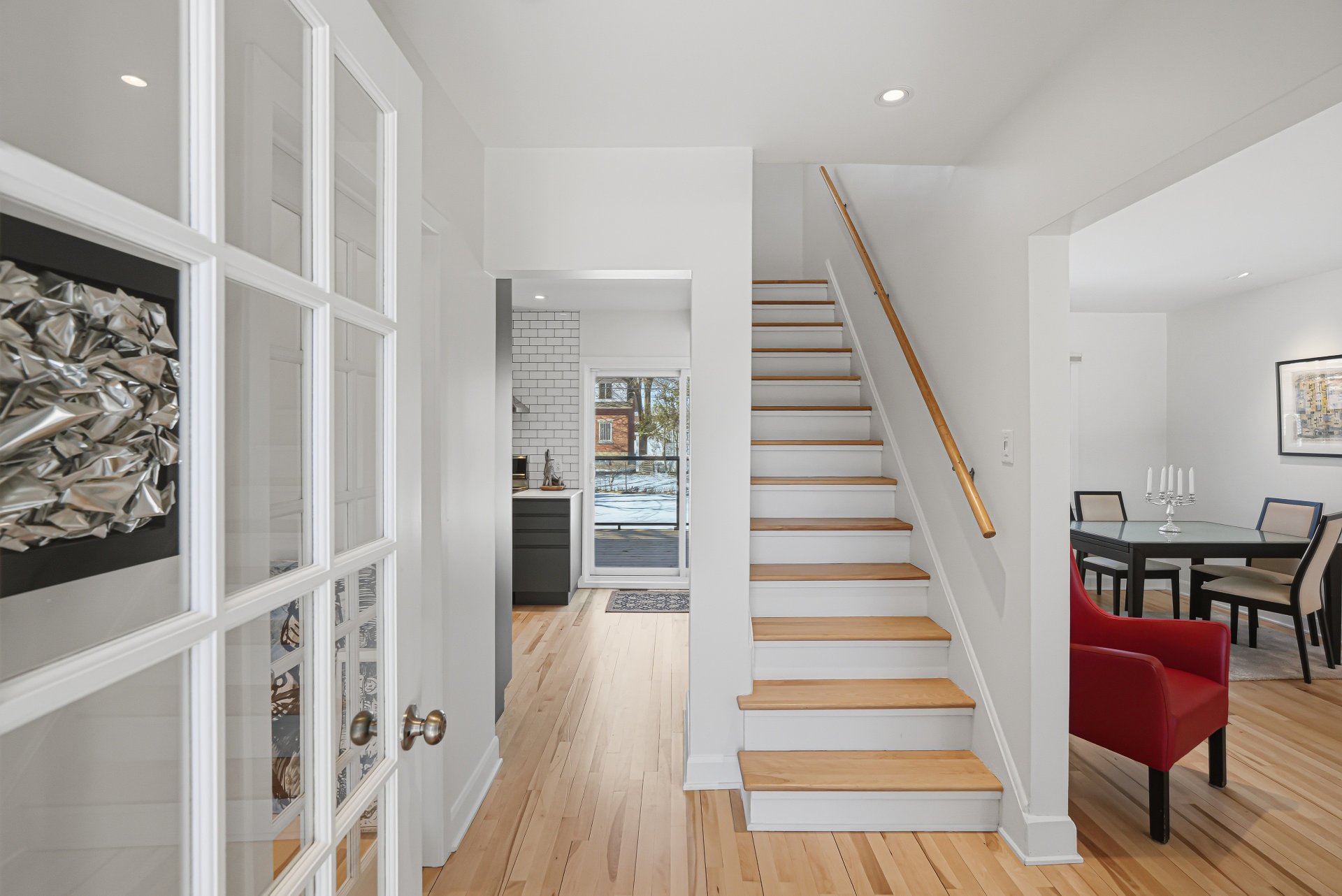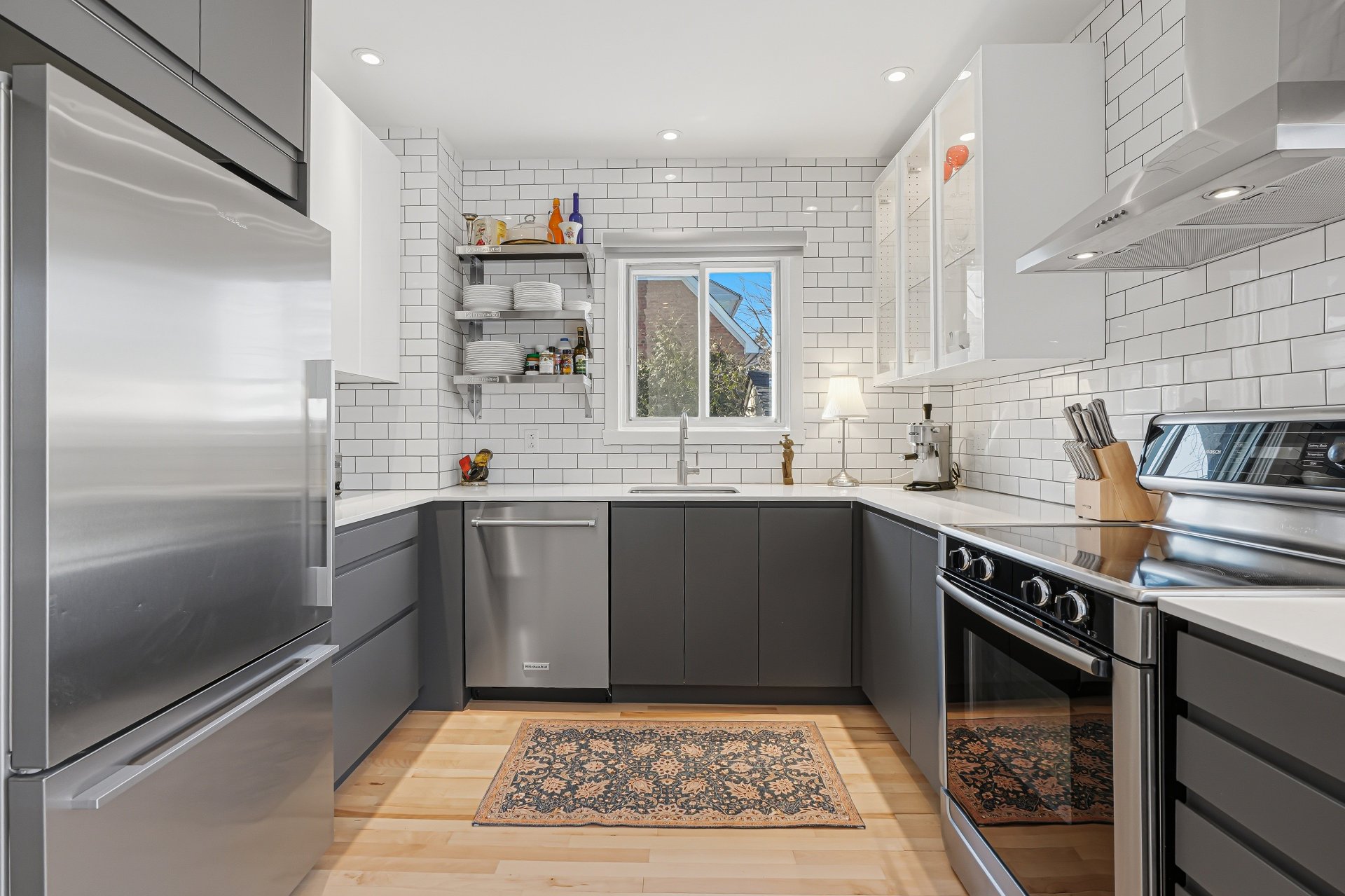 Charming, carefully renovated home offering exceptional brightness on a large landscaped lot. The sightline stretches from the welcoming entrance all the way to the sunny backyard, flowing through the contemporary kitchen and glass-railed terrace. Kitchen features quartz countertops and quality appliances. Beautiful hardwood floors, French doors adding elegance and flow, redesigned lighting and fully renewed finishes throughout. 3+1 bedrooms, central air, air exchanger, 3 driveway parking spots. Southwest exposure, fully fenced yard and mature maples -- a bright, turnkey property in Ville Saint-Laurent, near VMR, shops and amenities.