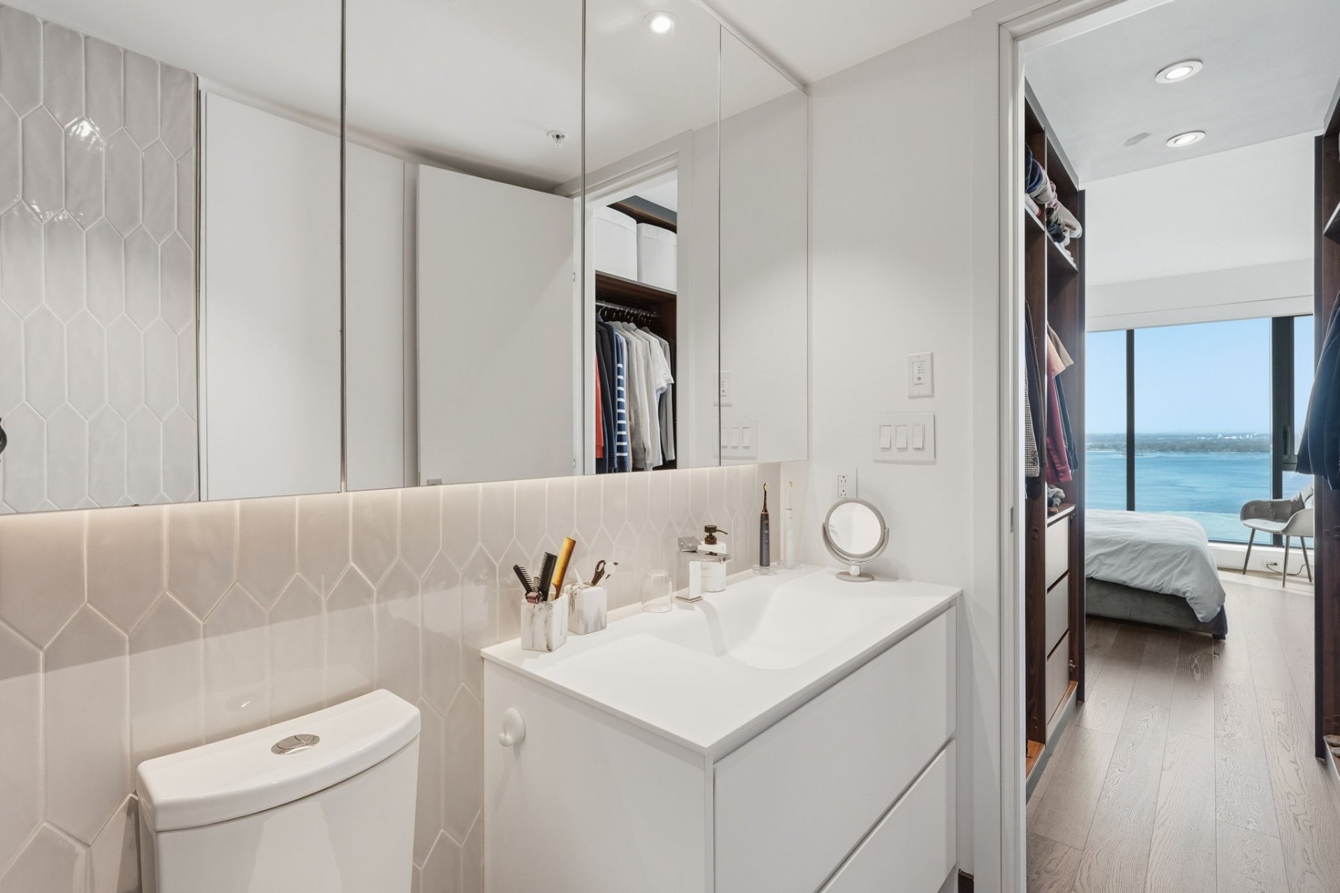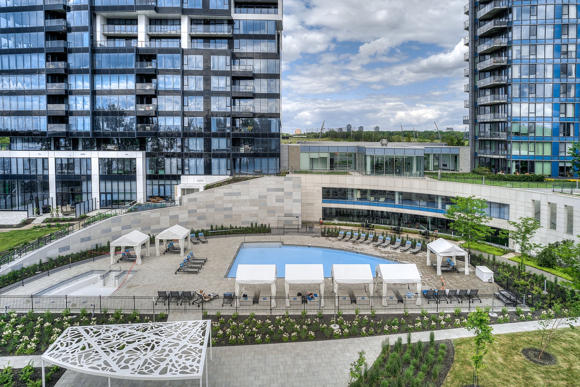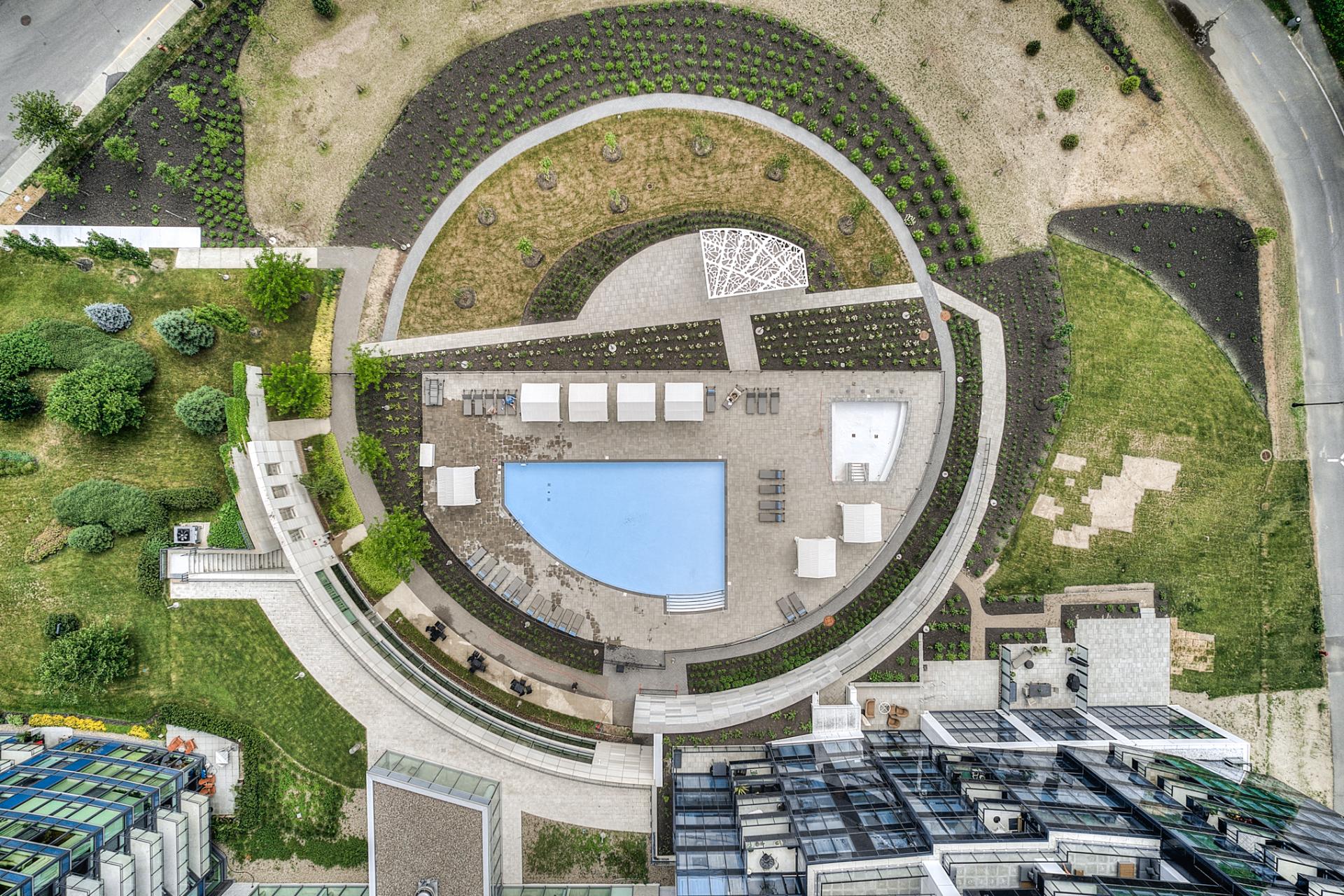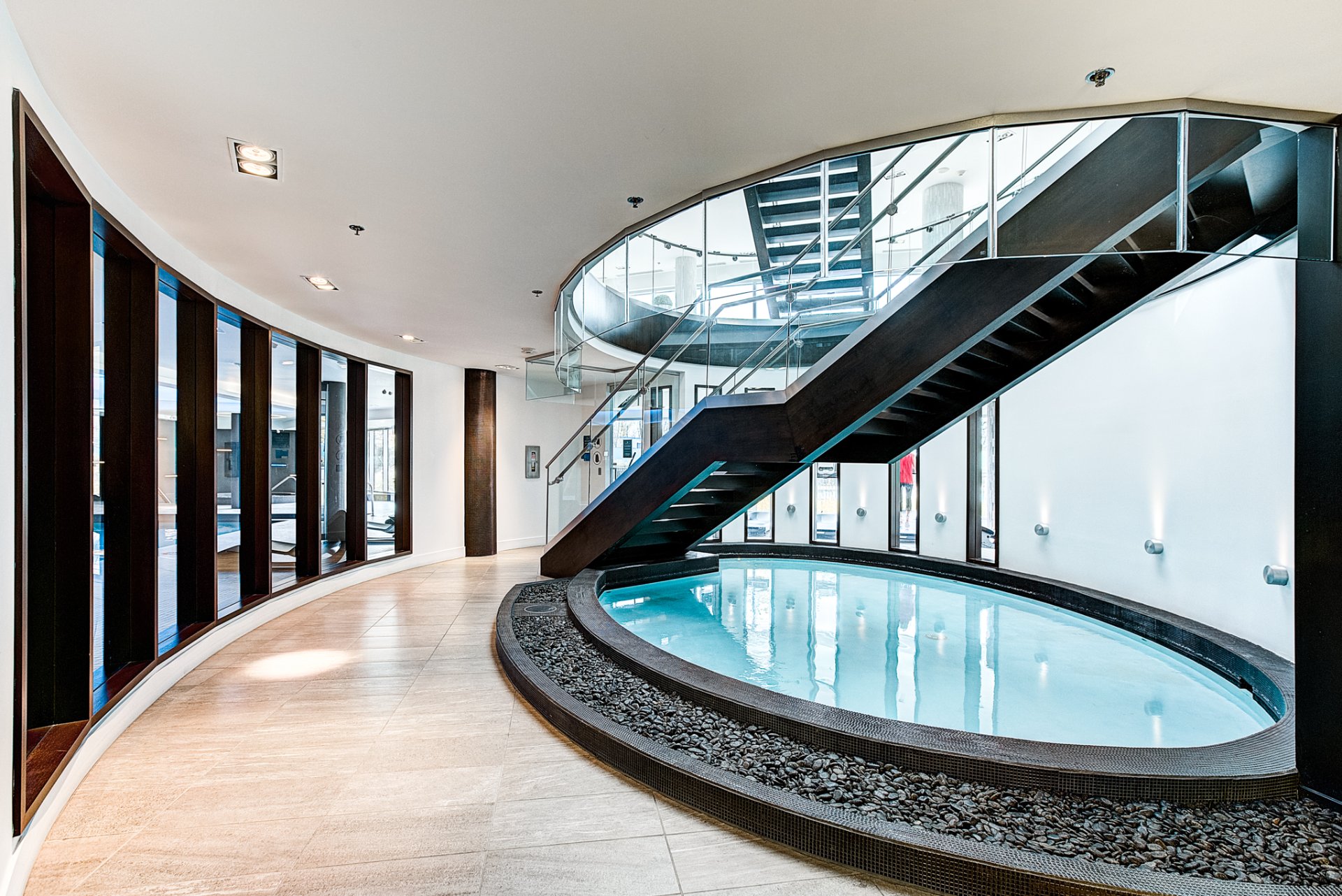 Living at Symphonia POP also means enjoying a collection of high-end common areas designed to offer a lifestyle reminiscent of a luxury hotel. Residents have access to a beautiful indoor swimming pool, perfect for relaxing or swimming year-round, as well as a fully equipped modern fitness center. Elegant lounge areas, carefully designed common spaces, and an outdoor terrace overlooking the waterfront complete the building's impressive amenities.