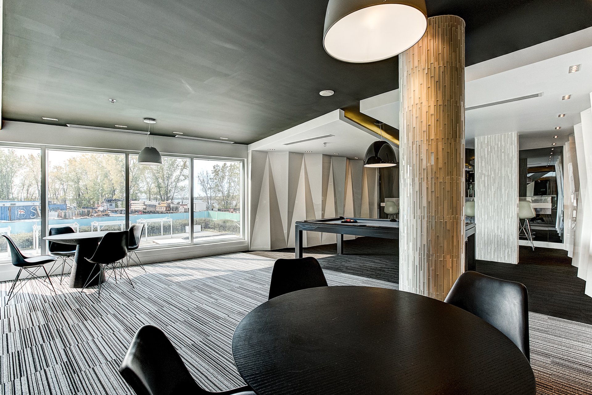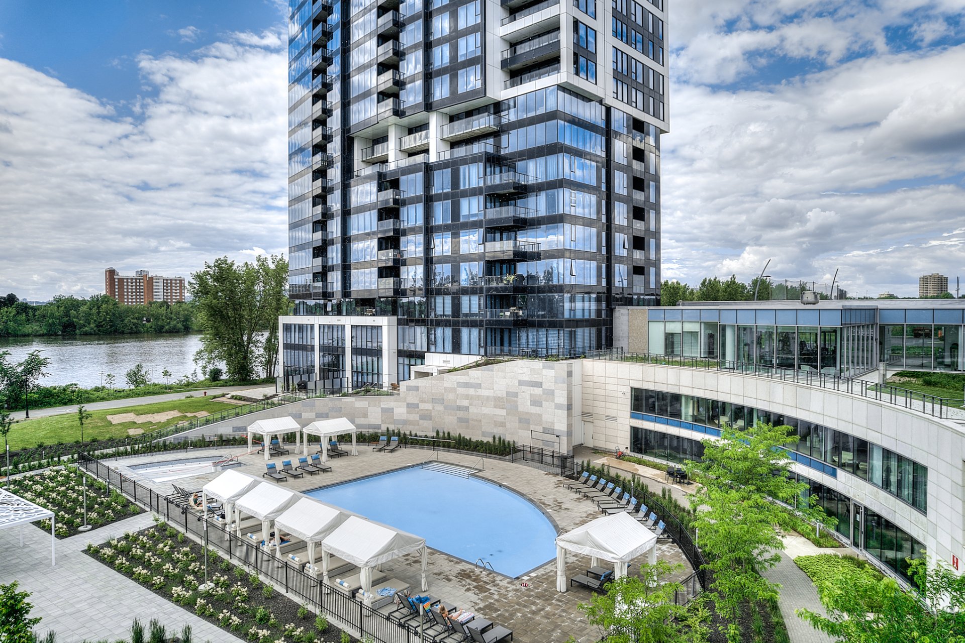 The project also benefits from an exceptional location along the St. Lawrence River, with access to scenic waterfront paths, cycling trails, and green spaces. Its strategic location allows residents to enjoy the tranquility of Nuns' Island while remaining close to services, restaurants, shops, and major roadways. The REM station is also located nearby, providing convenient access to downtown Montréal.