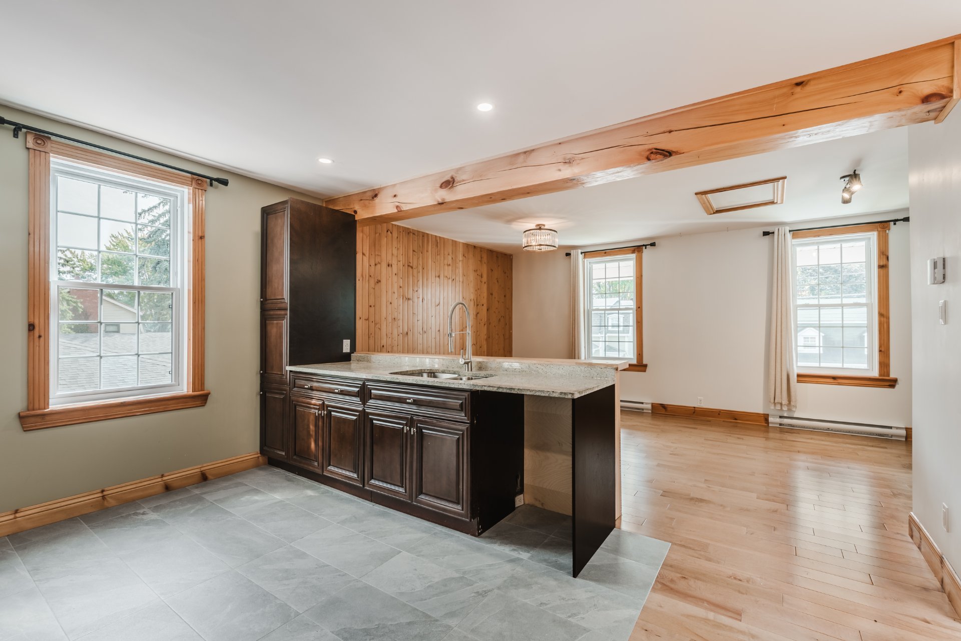 + Bright sunroom with heated floors, perfect as a dining area.