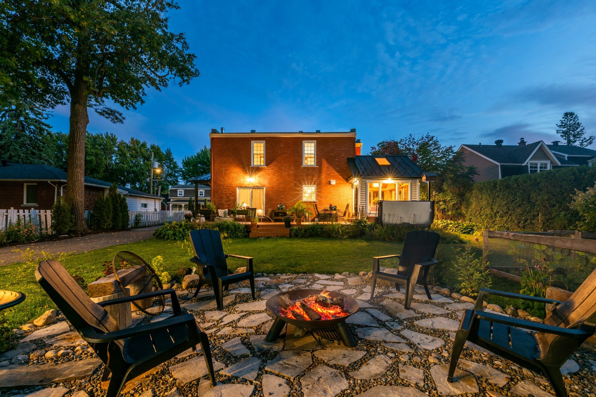 Unique century-old property, converted into a duplex with an intergenerational option, located in a sought-after neighbourhood. Renovated with quality materials, it offers intimate, comfortable, and bright living spaces. A welcoming sunroom, a spacious double living room, and a vast backyard surrounded by hedges and mature trees, featuring a spa, large composite deck, firepit area, and sheds. Brand-new oversized double garage with heated floors and ample storage space. Just steps from the Chambly Basin and Fort Chambly Park, the neighborhood offers a vibrant lifestyle with restaurants, cafés, cultural activities, and all essential services.