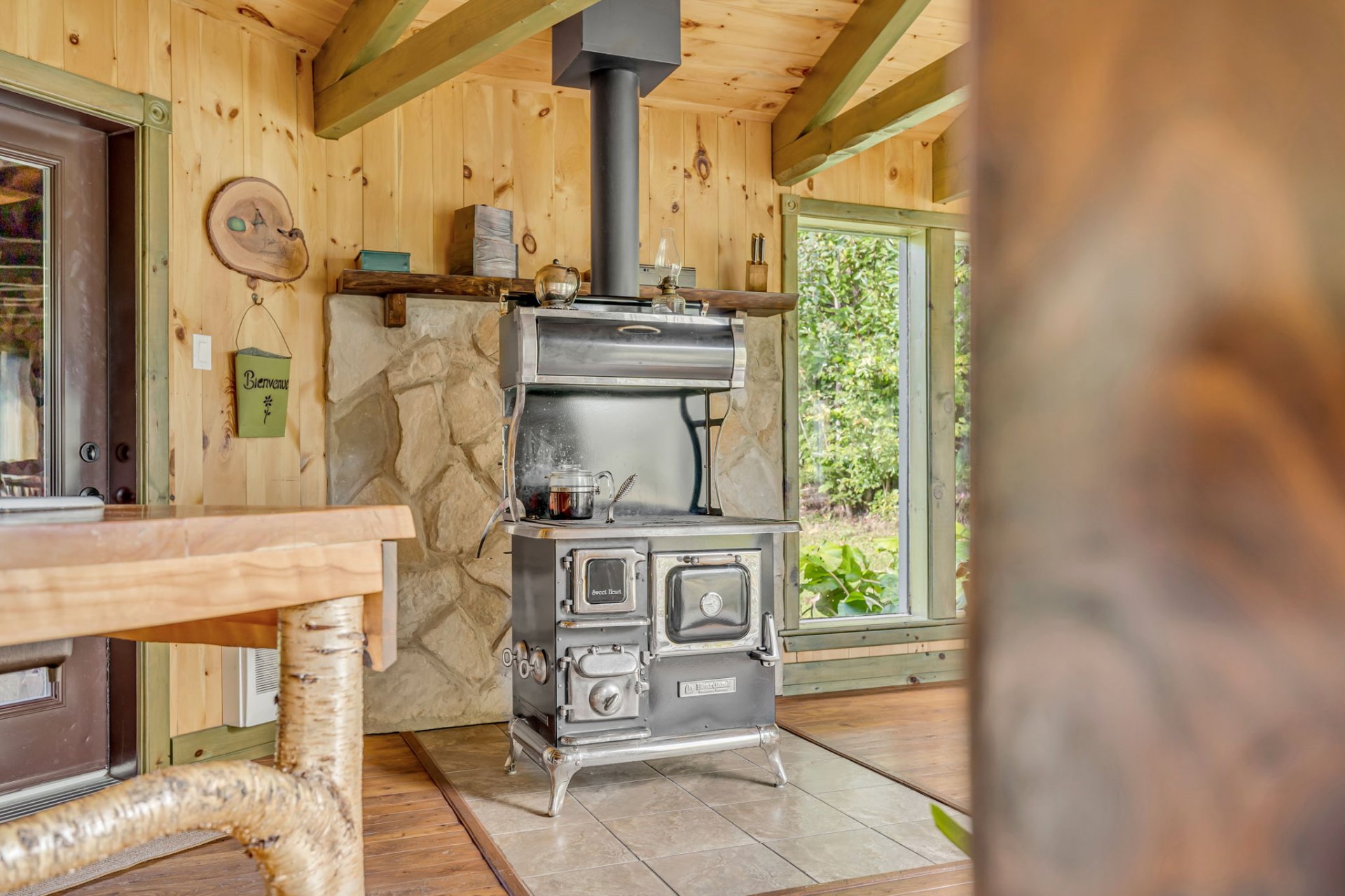 - Propane stove + propane bottles, fridge, dishwasher, piano, wood-burning stove, radial saw, greenhouse. (Kitchen stained glass, old telephone box and phone: if not desired by the buyer, the seller wants to keep them).
