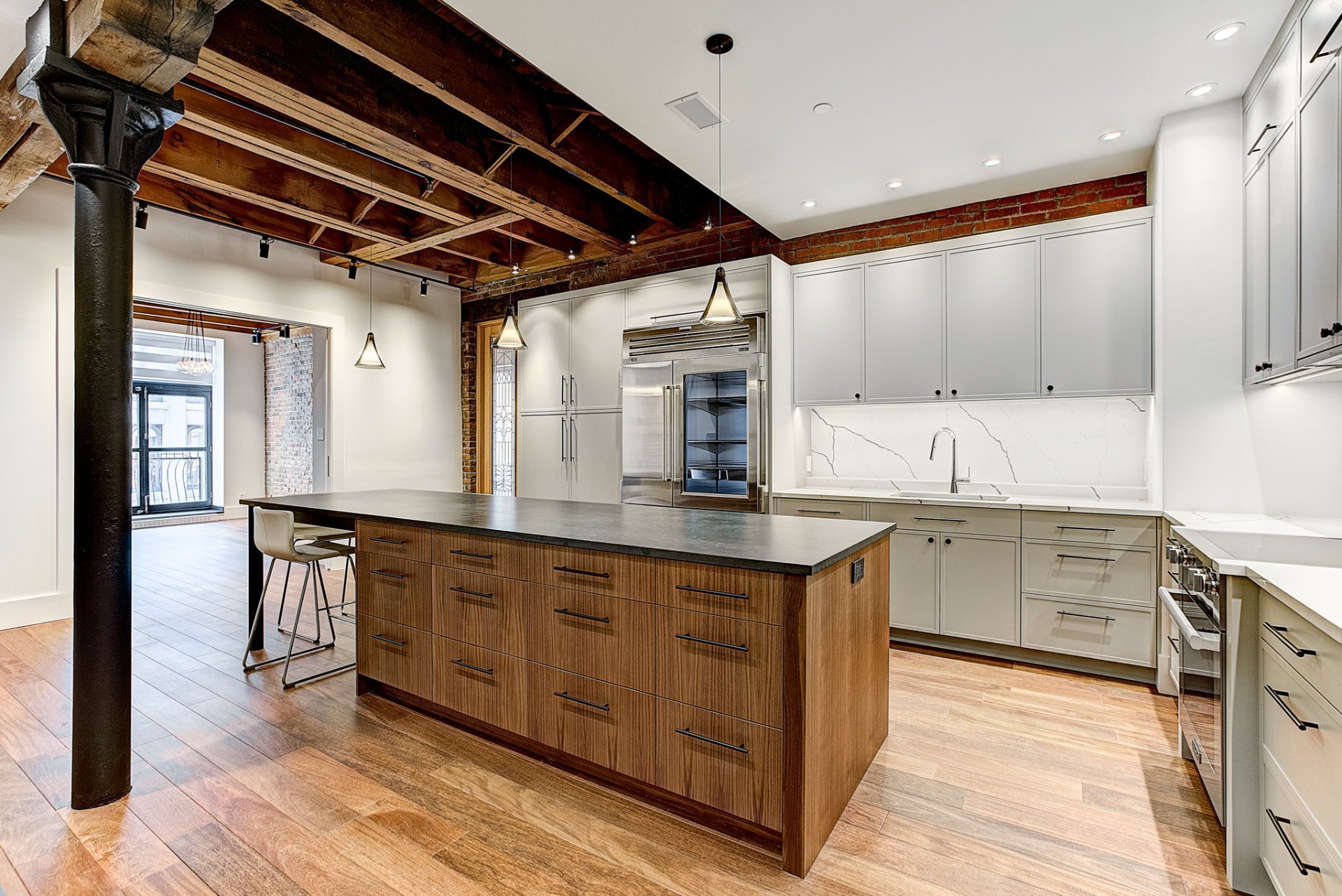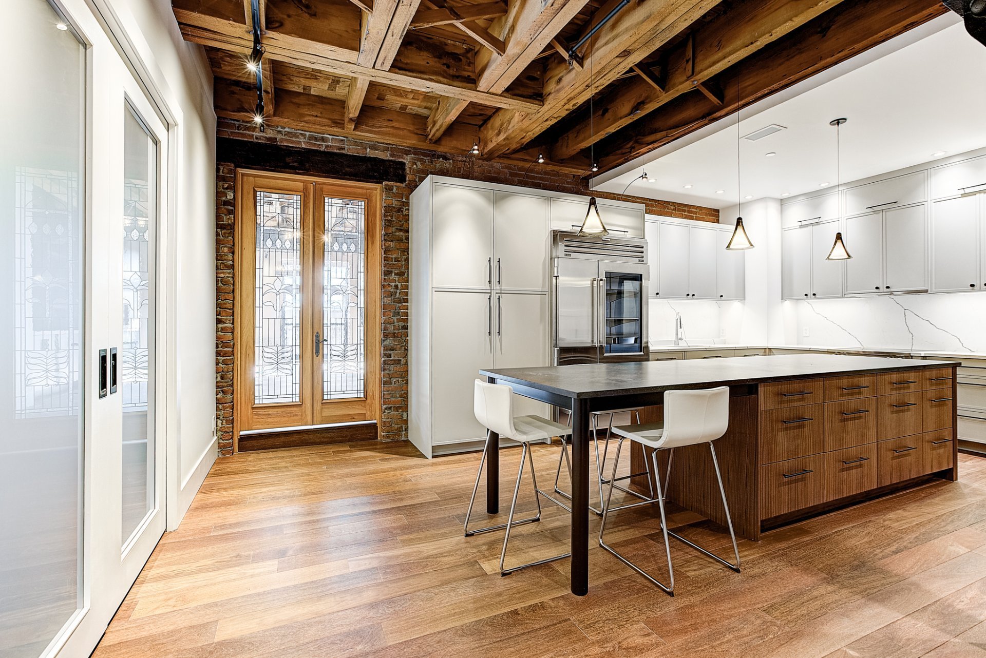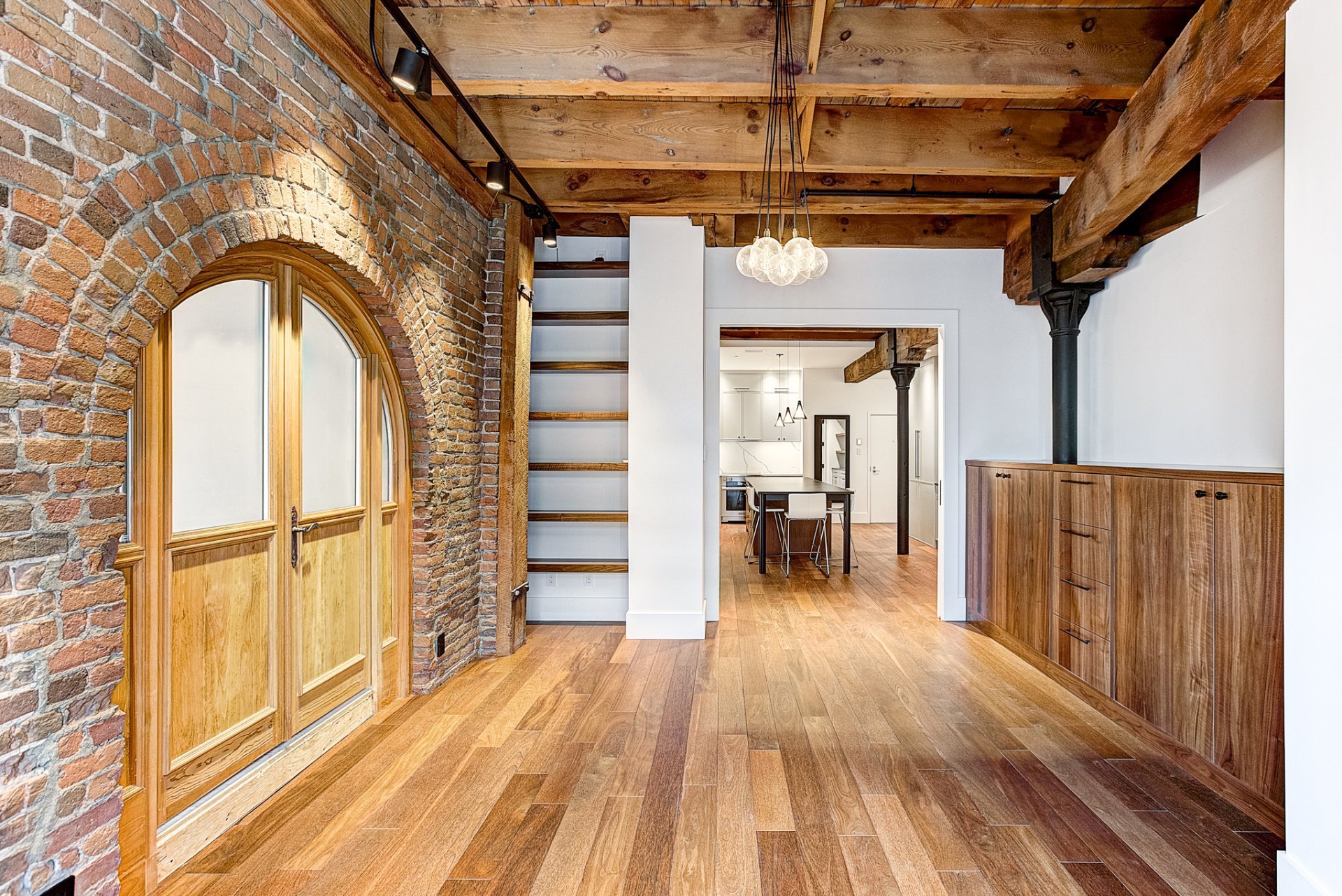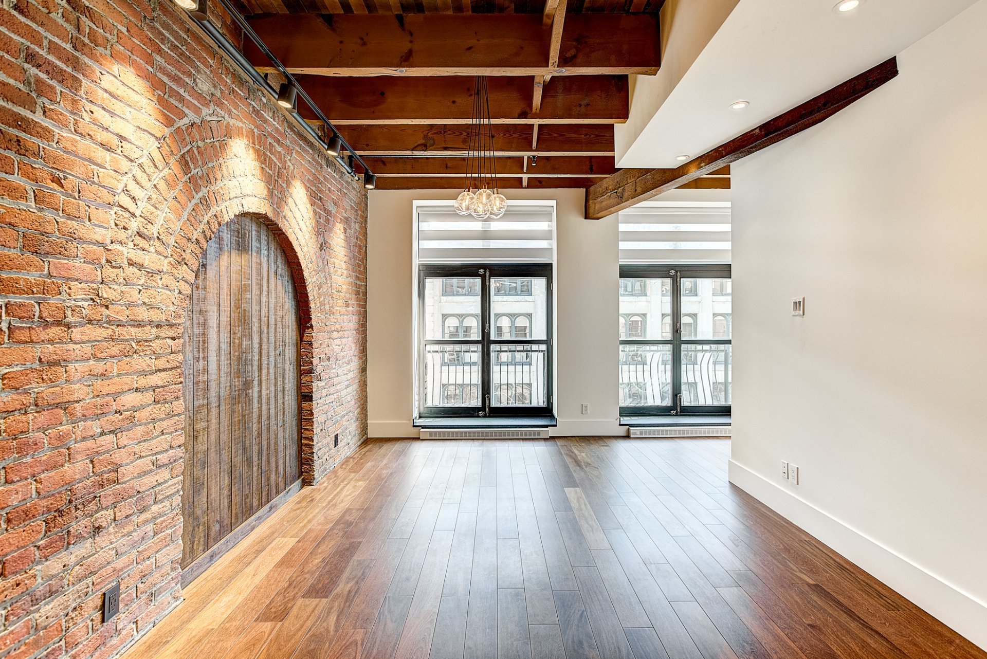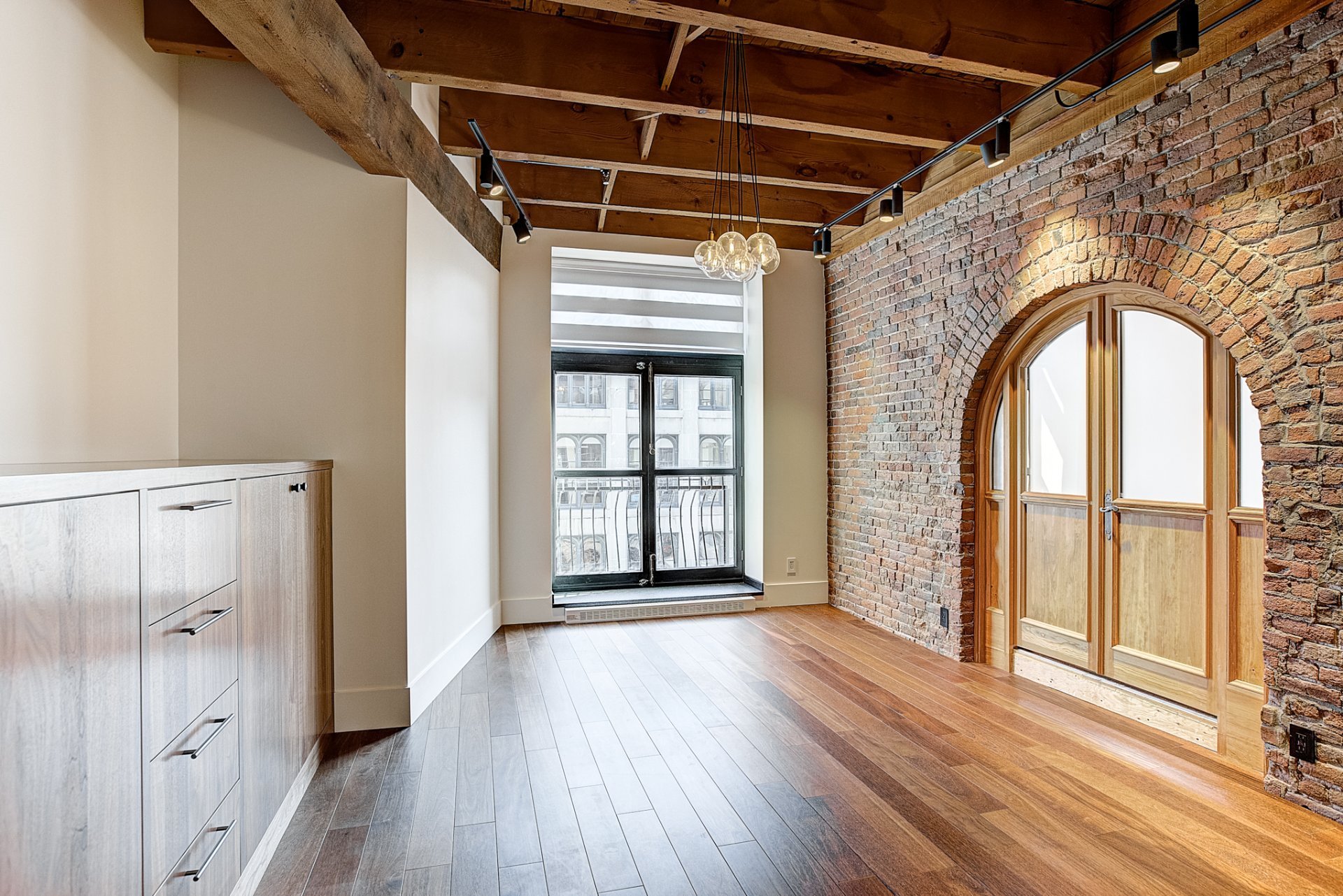 Centrally located & nestled in a beautiful historical building, this corner unit on the 2nd floor allows renters to be immersed in the old world charm of a noteworthy Old Port of Montreal condo while enjoying the benefits of a fully renovated and comfortable living space. High-end appliances, key structural elements such as arches, wooden doors, multiple windows, herringbone wood floor detailing, original exposed beams, brick walls, 10 ft high ceilings and more! Lots of storage space. 1 parking, 1 locker.