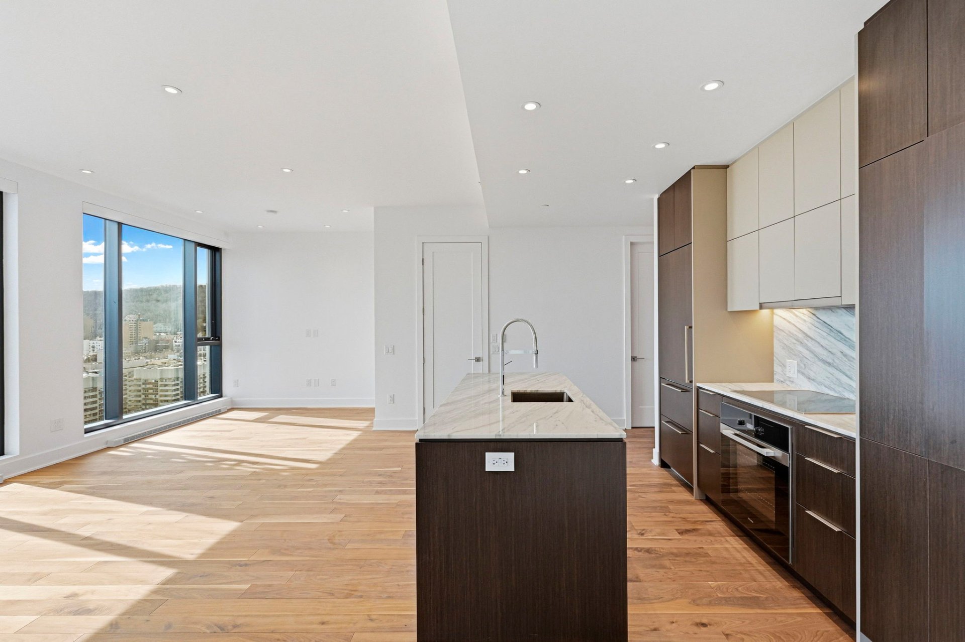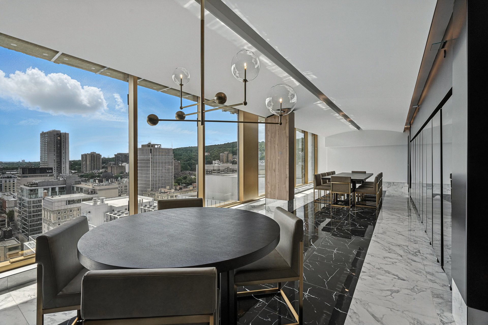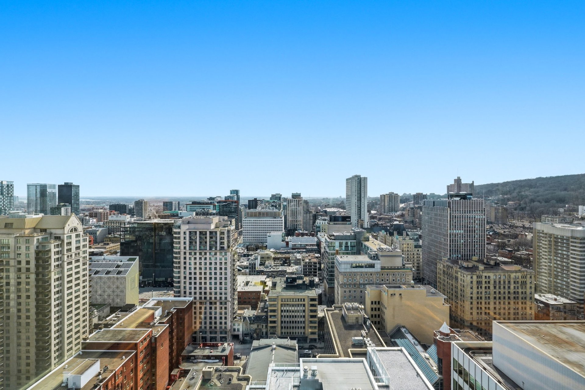 Perched on the 28th floor of the prestigious MAA--built above the historic Montreal Athletic Association (est. 1881), long tied to Golden Square Mile life--this executive residence stands apart w/ a considerable investment in refined, functional upgrades. Originally 3 bedrooms, now a generous 2-bedroom w/ expanded living & dining. Floor-to-ceiling windows frame breathtaking, unobstructed views, best enjoyed from a large covered terrace. Sleek kitchen & bathrooms with upgraded finishes. Motorized blinds, custom lighting. Garage & locker. Executive floors offer a more private, elevated experience. Full-service: pool, spa, gym & security