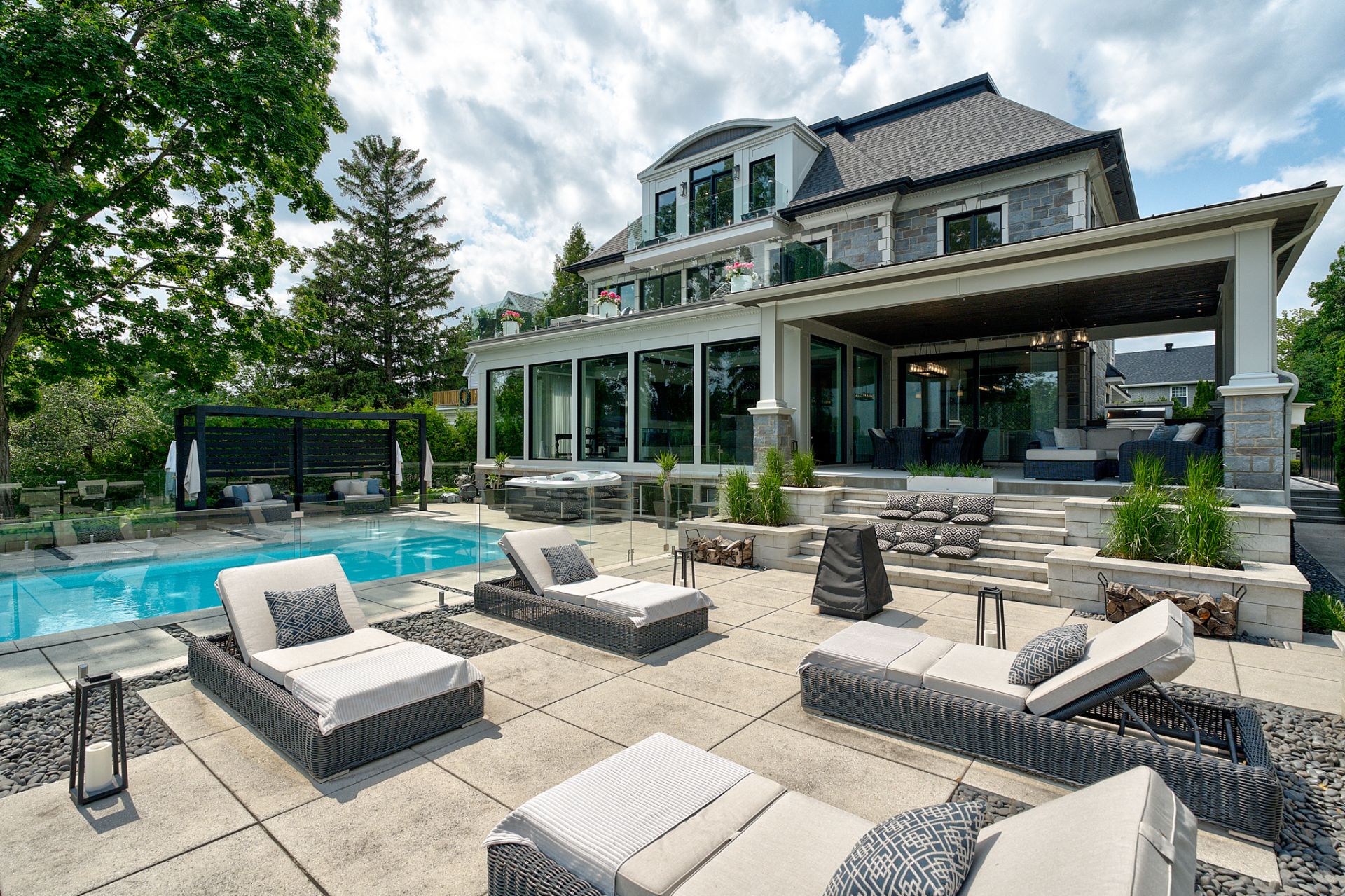 Custom-designed heated in-ground pool and spa, surrounded by a refined relaxation area