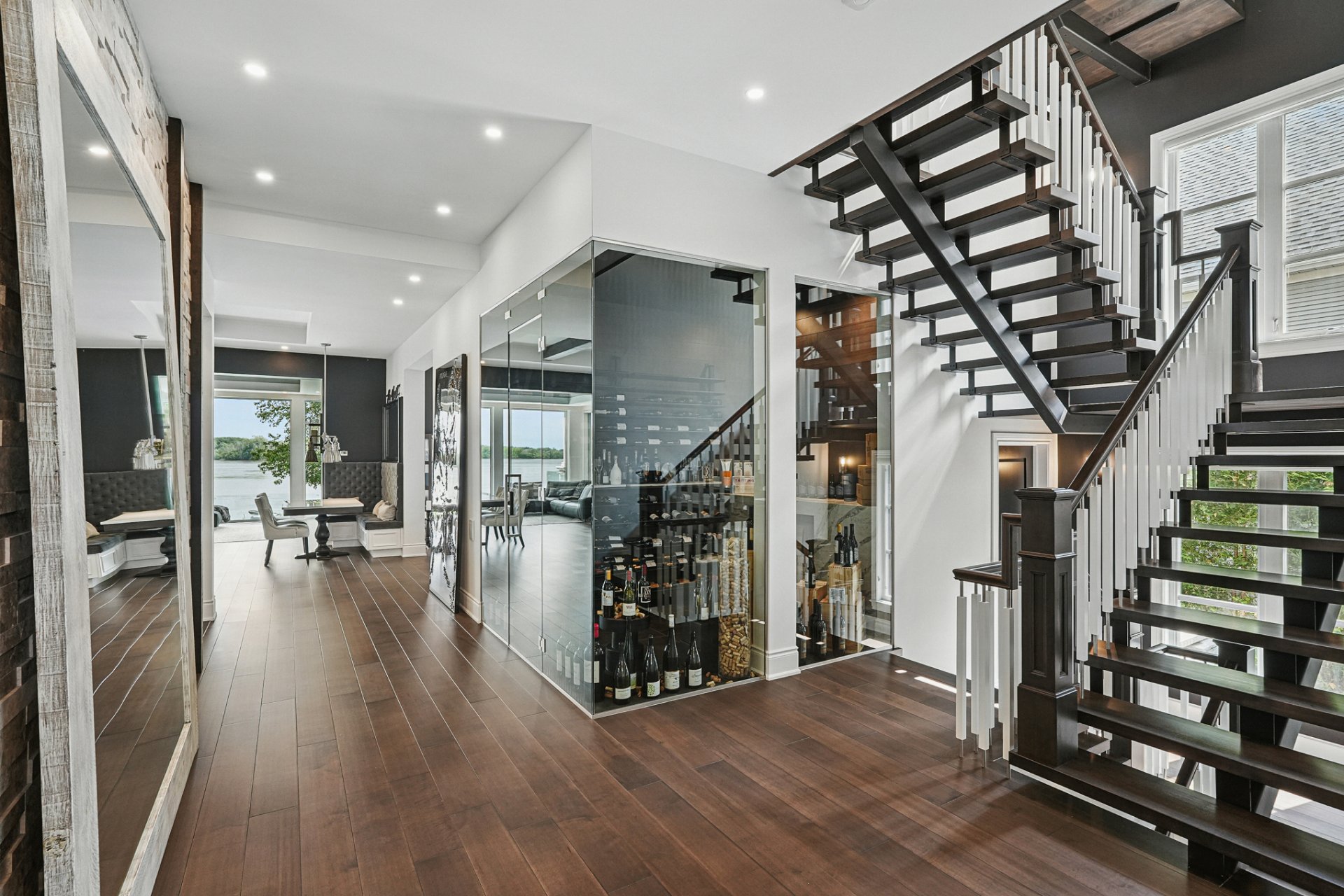 * Custom glass-enclosed wine cellar, ideal for wine lovers