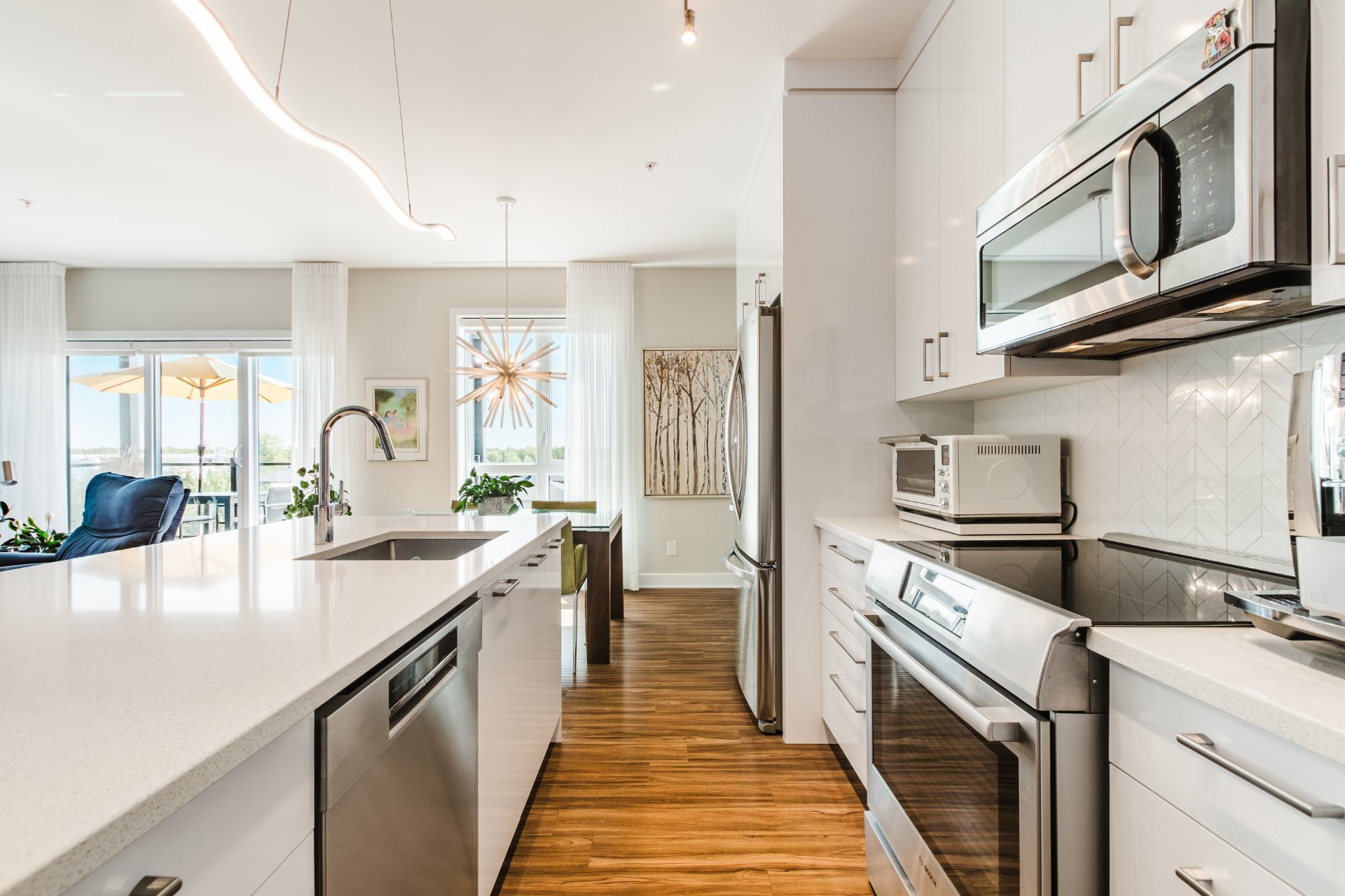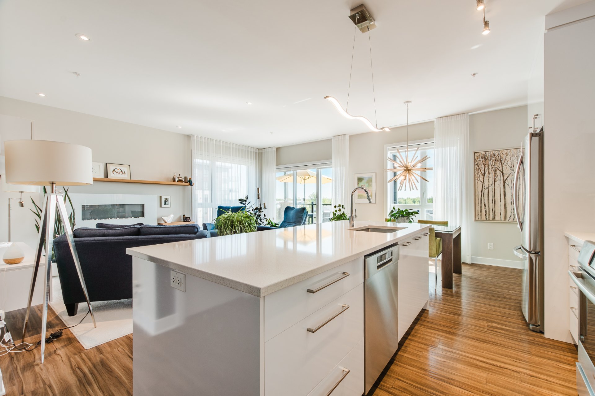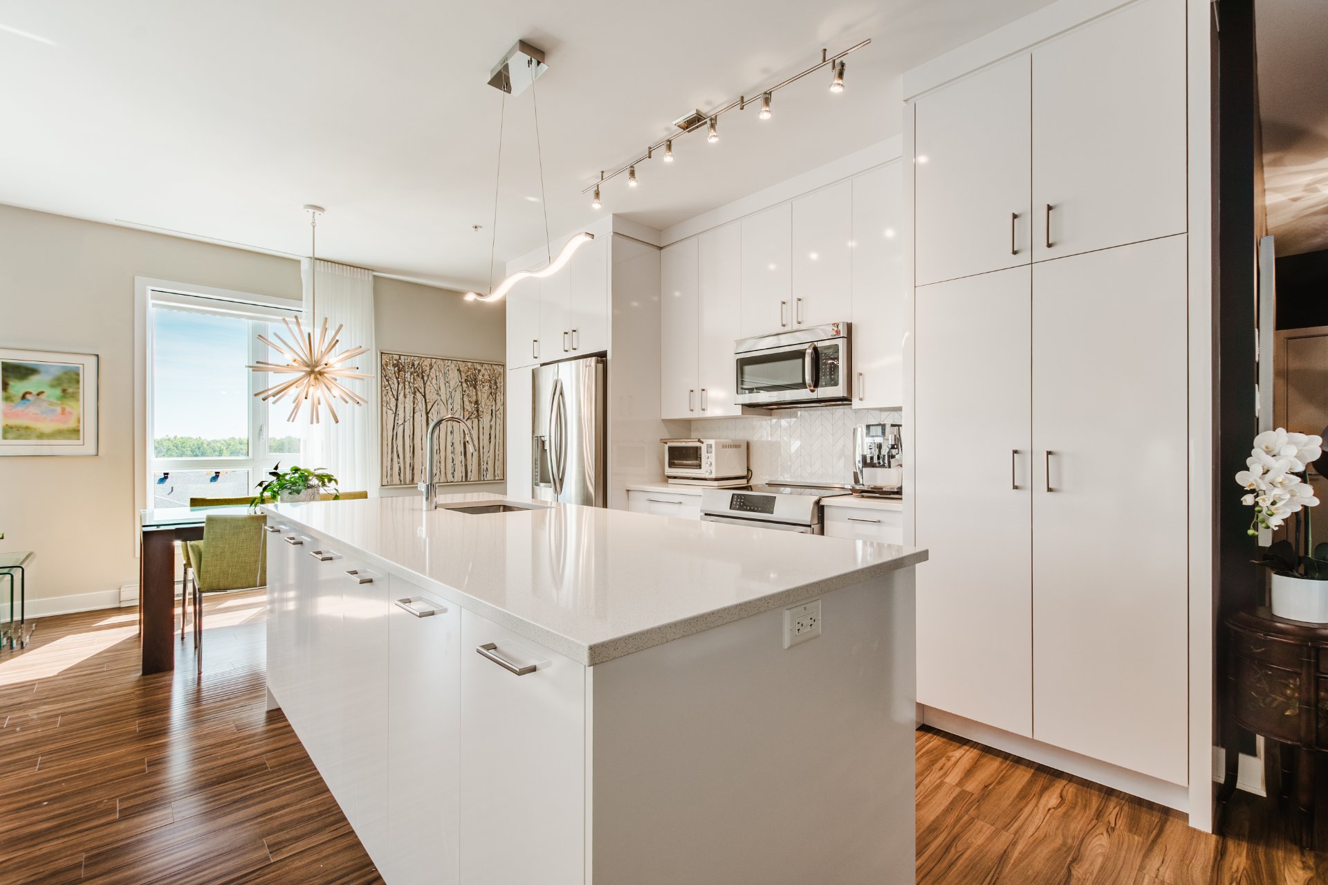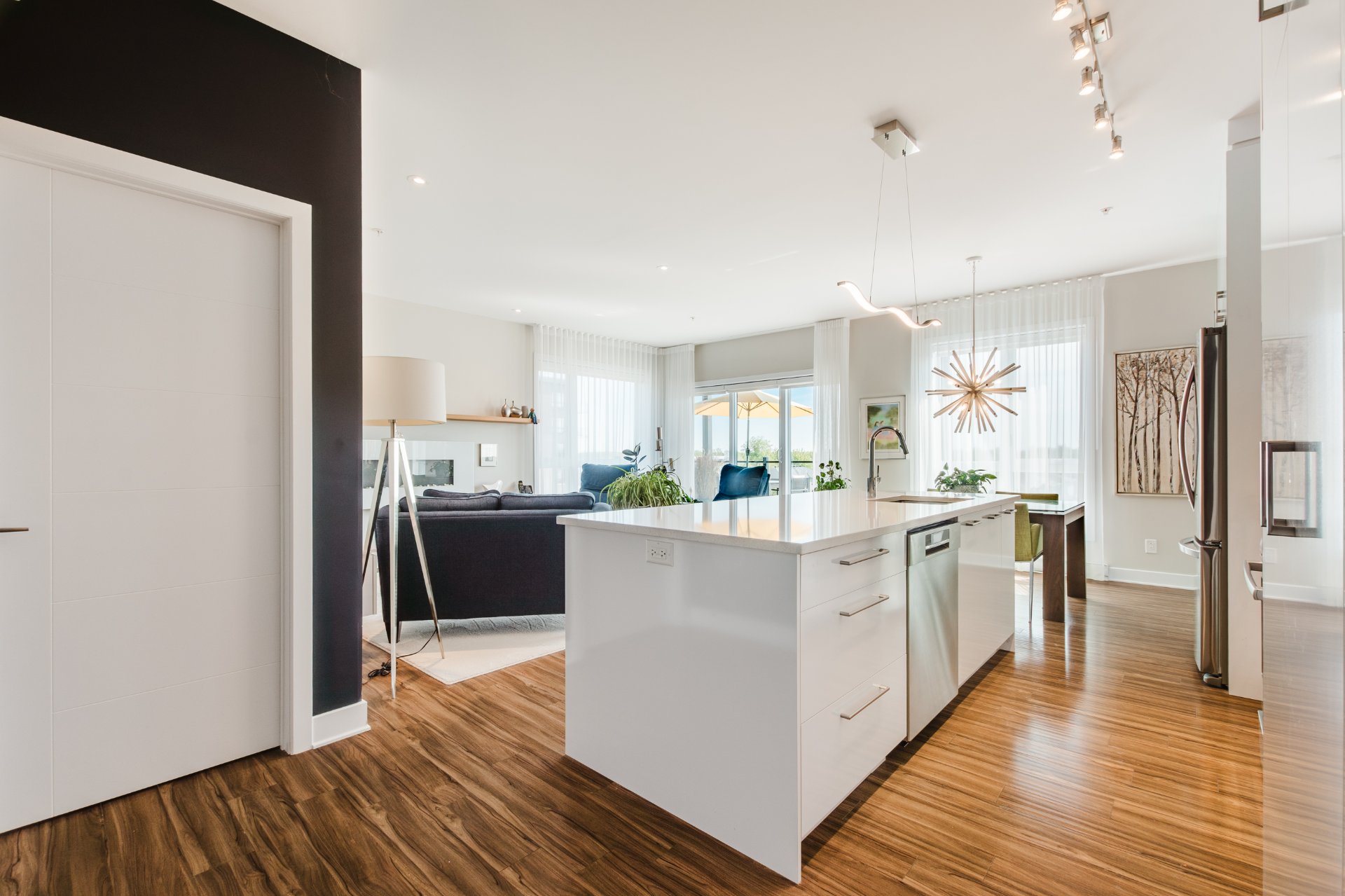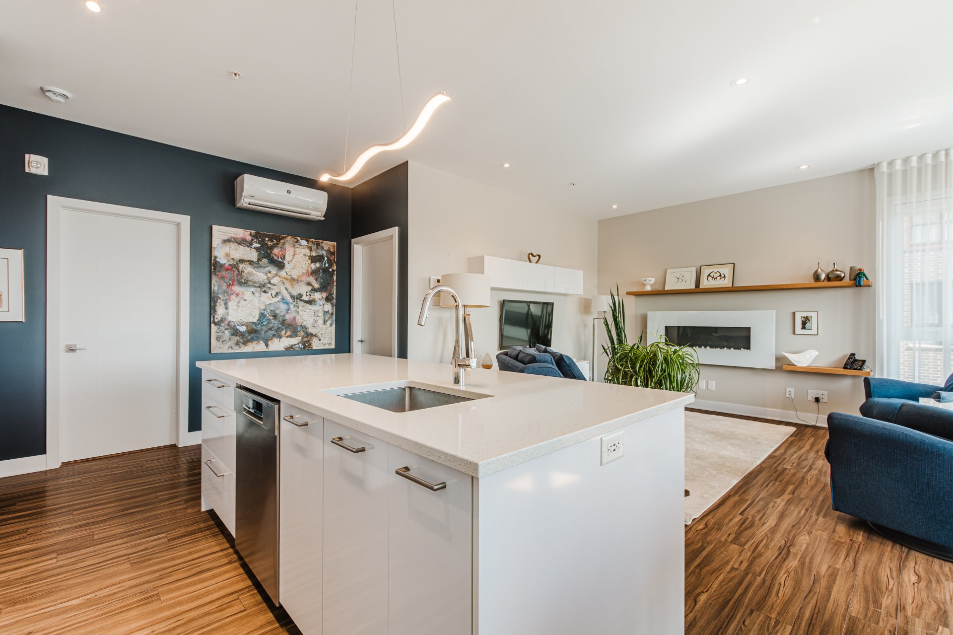 This superb prestige condo, located on the 4th floor, combines elegance, comfort and functionality. With 2 spacious bedrooms and 2 full bathrooms with heated floors, it offers a modern and refined living environment. The open-plan living space is bathed in natural light and features a chef's kitchen with quartz countertops, an impressive double island and abundant storage. You'll be charmed by the private balcony offering panoramic city views, perfect for your moments of relaxation. Bonus: indoor parking and an impeccably managed condominium guarantee comfort and peace of mind.