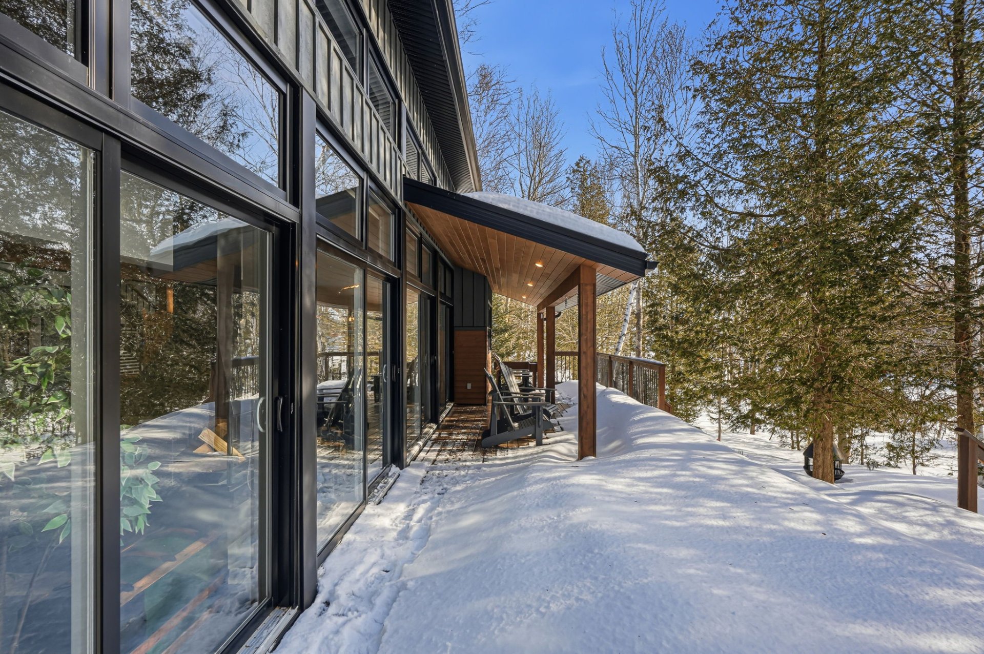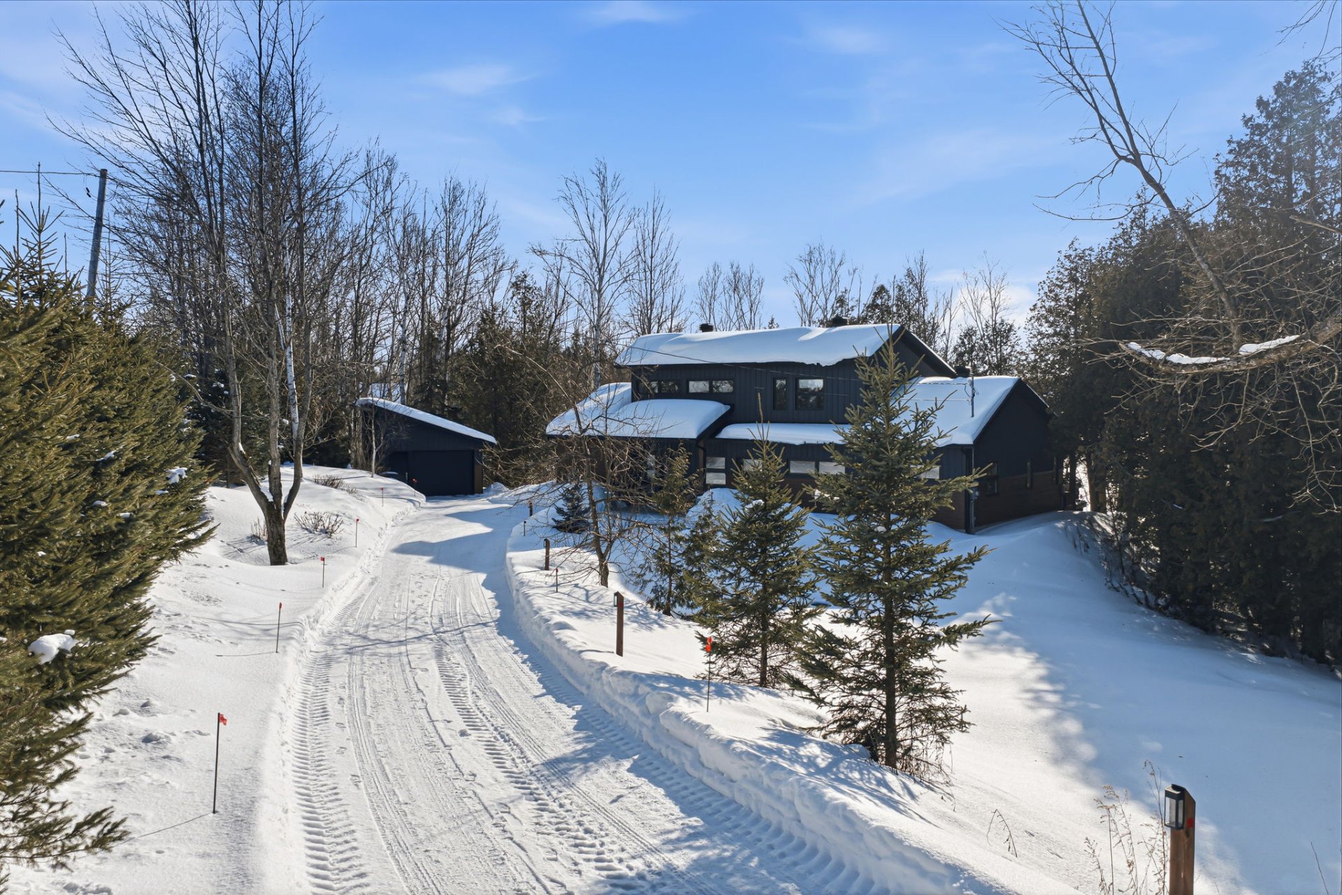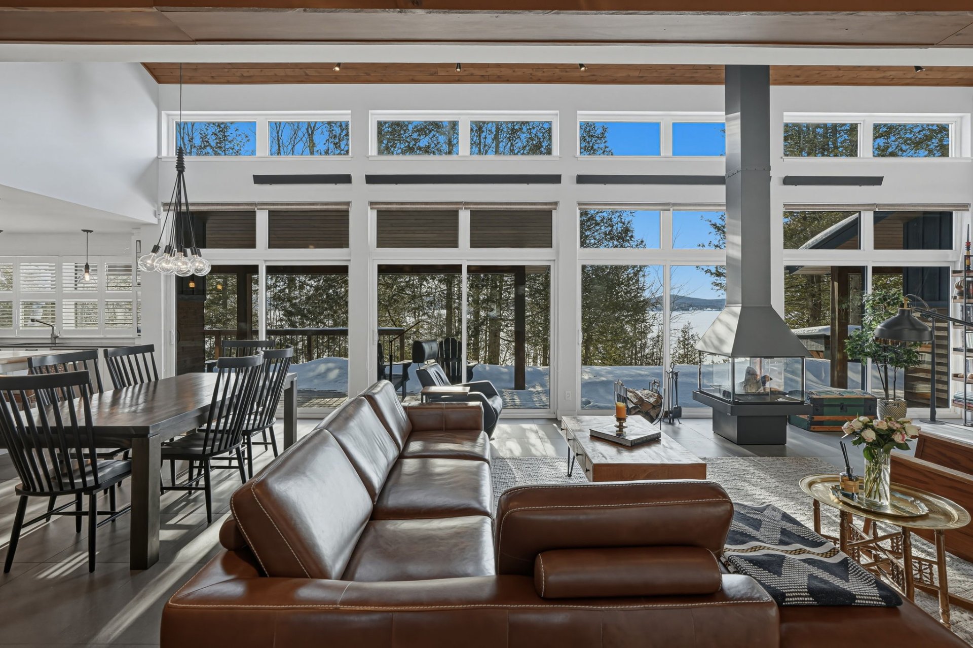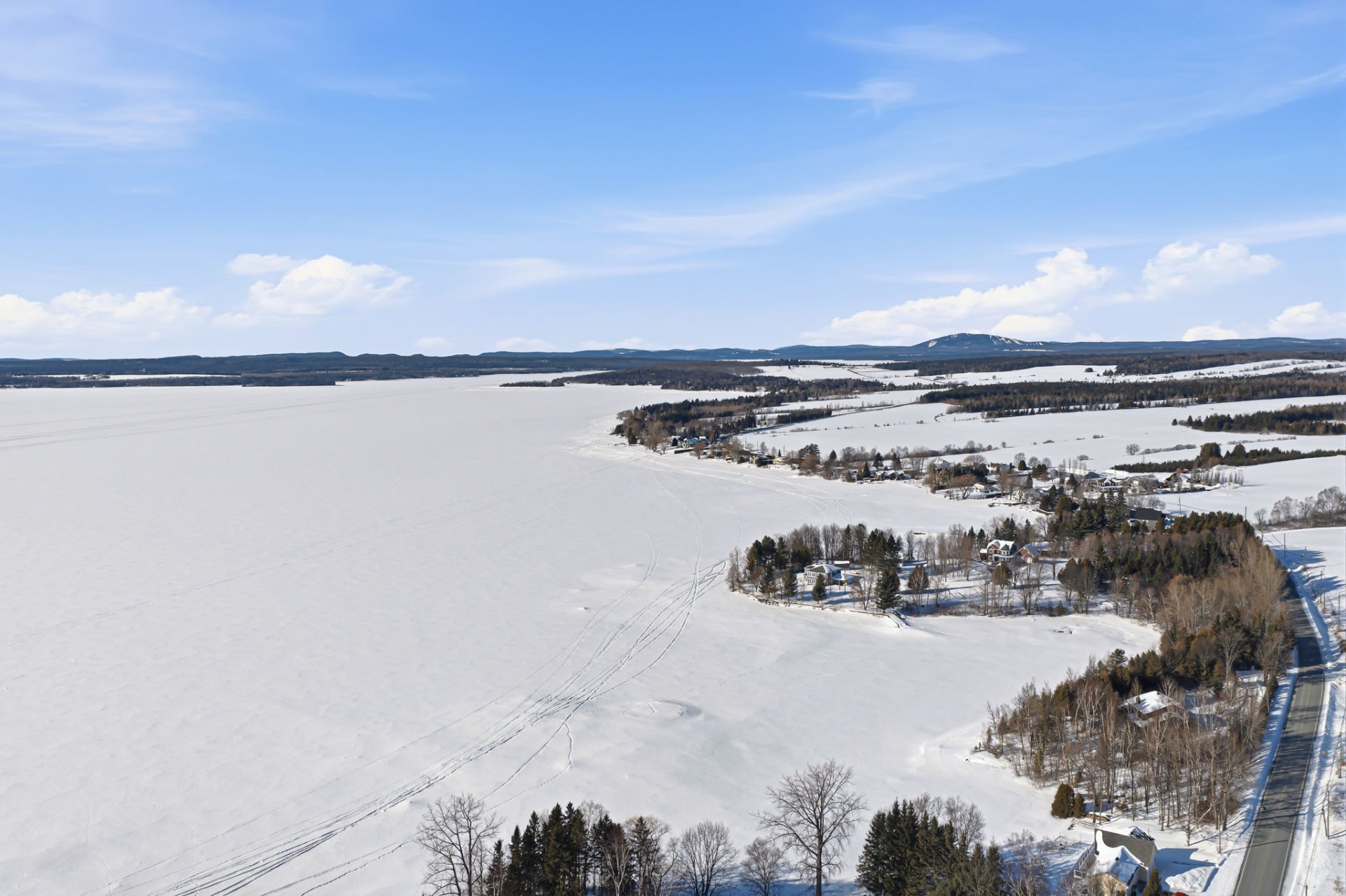 Architect-designed residence on the shores of Grand Lac Saint-François, offering ± 500 linear feet of waterfront on a rare 1.47-acre lot with sunset exposure. Its modern architecture emphasizes clean lines, natural light and a seamless integration with the surrounding landscape. Built on a concrete slab with heated floors, the home features three bedrooms, open living spaces and ceilings reaching up to 18 feet. Set within a bay and elevated at a privileged vantage point, the property enjoys exceptional lake views, a beach with dock as well as boat launch access, all located approximately 1 hour and 45 minutes from Québec City.
