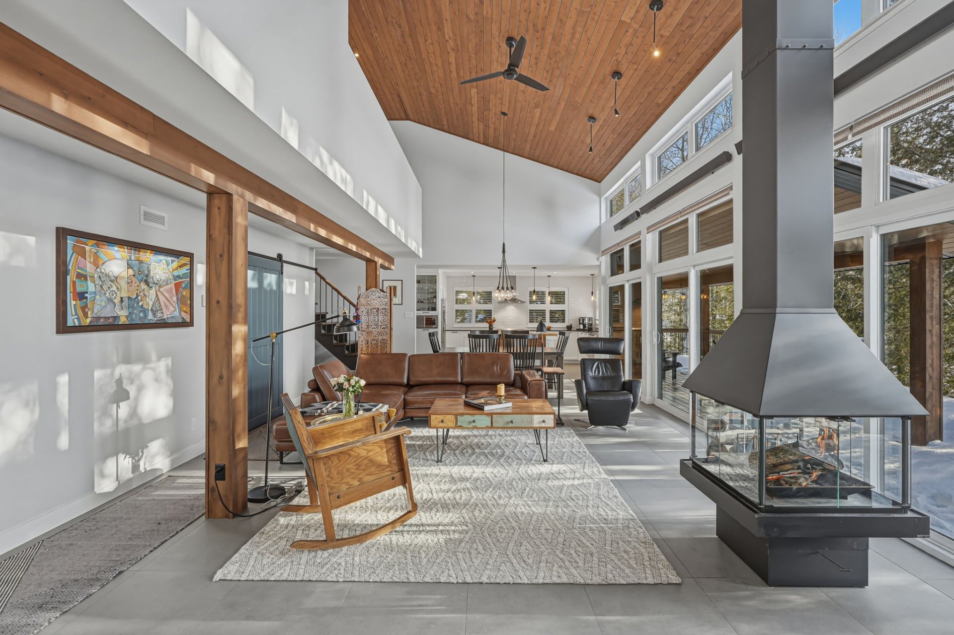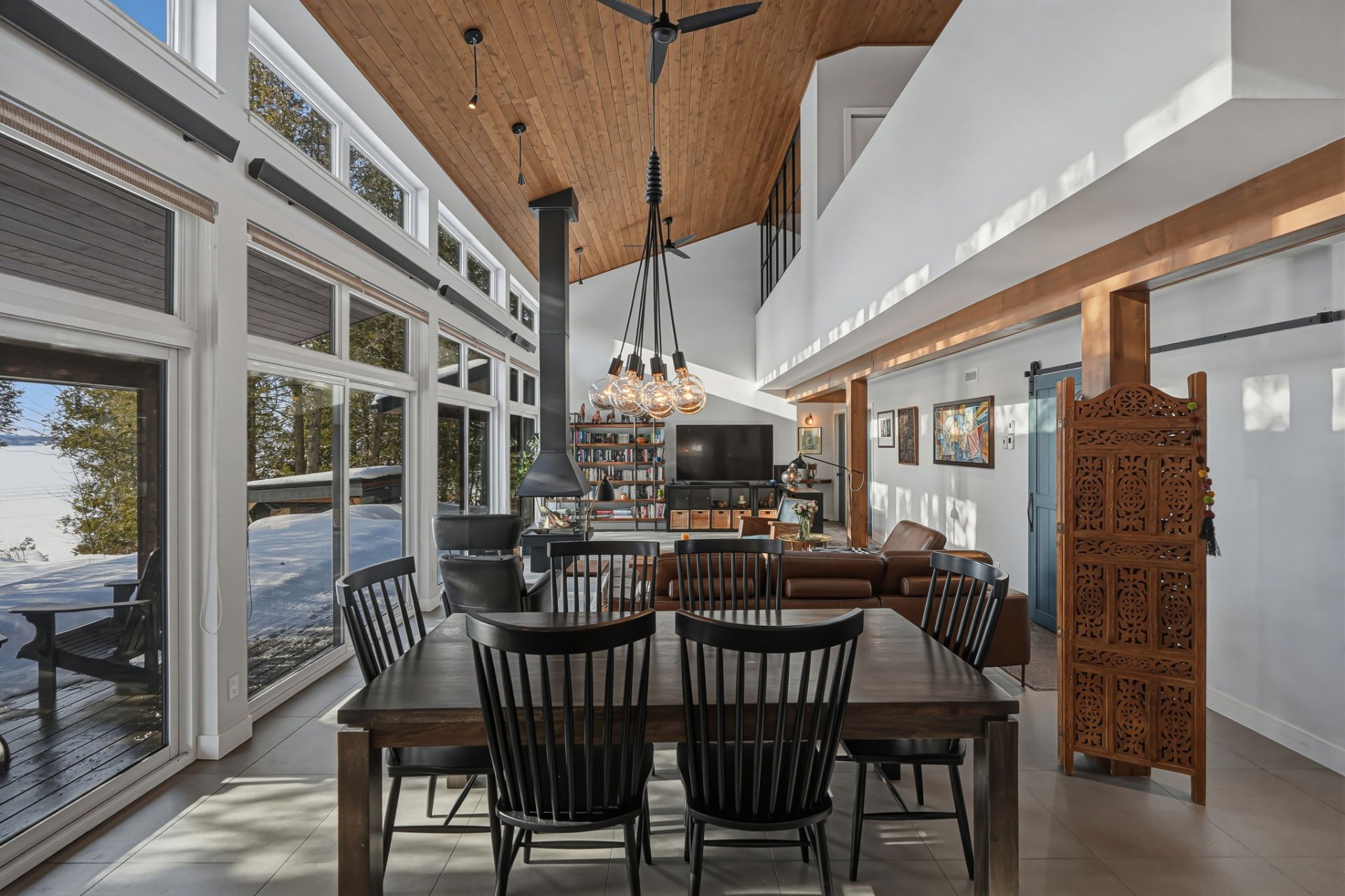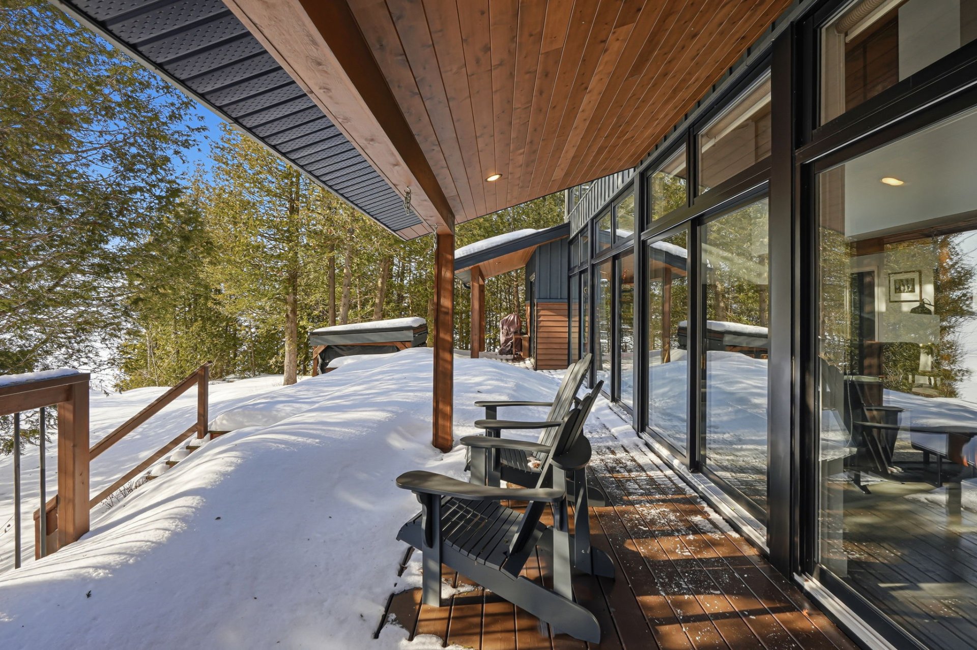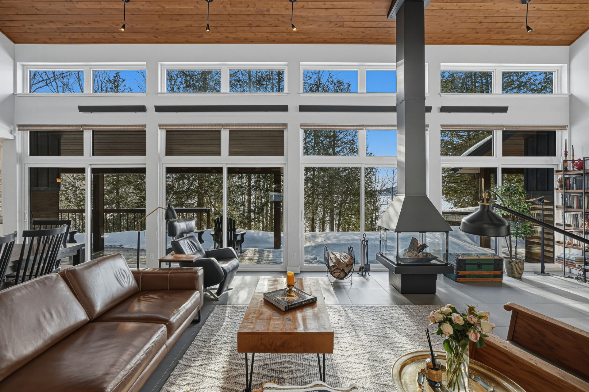 Architect-designed residence on the shores of Grand Lac Saint-François, offering ± 500 linear feet of waterfront on a rare 1.47-acre lot with sunset exposure. Its modern architecture emphasizes clean lines, natural light and a seamless integration with the surrounding landscape. Built on a concrete slab with heated floors, the home features three bedrooms, open living spaces and ceilings reaching up to 18 feet. Set within a bay and elevated at a privileged vantage point, the property enjoys exceptional lake views, a beach with dock as well as boat launch access, all located approximately 1 hour and 45 minutes from Québec City.