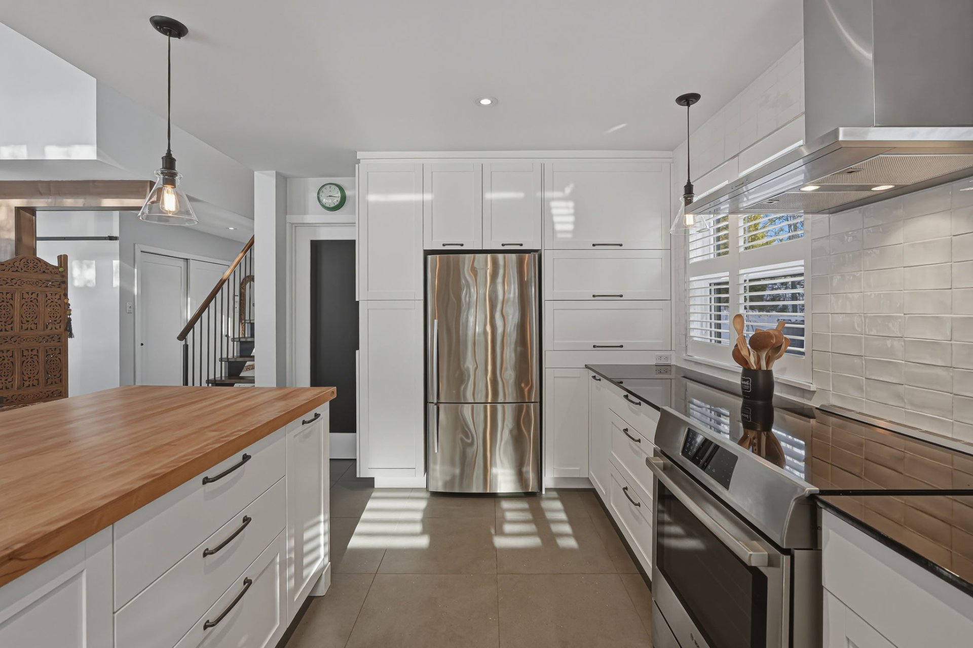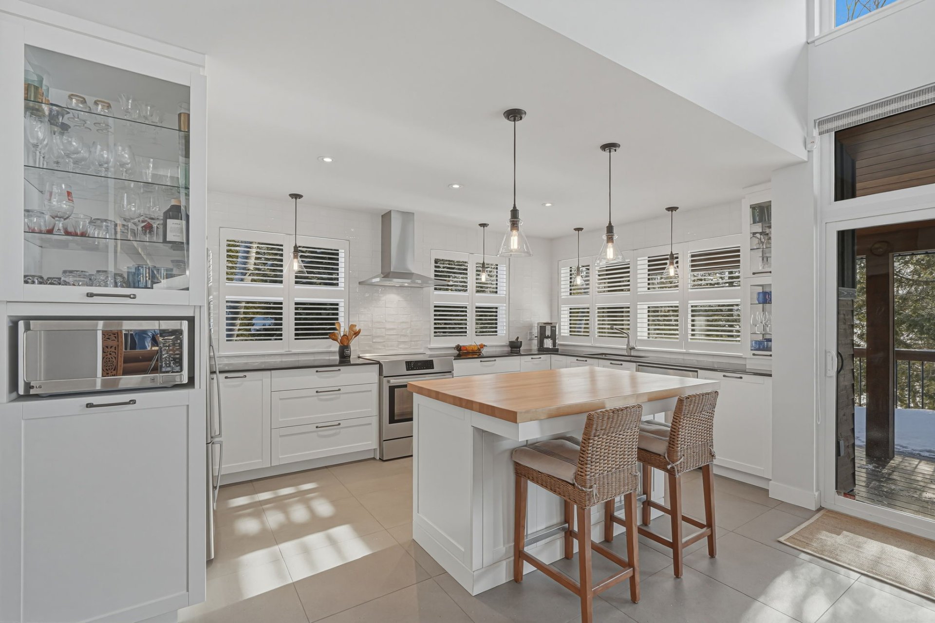 - Window dressing, Fisher & Paykel refrigerator, Bosch induction stove, Bosh dishwasher, LG brand front washer and dryer, white vertical Frigidaire freezer, light fixtures, air exchanger, connected alarm system, central vacuum and acc. ,SPA and acc. , pantry shelves, storage shelves, hammock chairs, built-in furniture, cabinets, shelves, the outdoor fireplace, fence posts and canvas for maintaining the hedge on the facade.