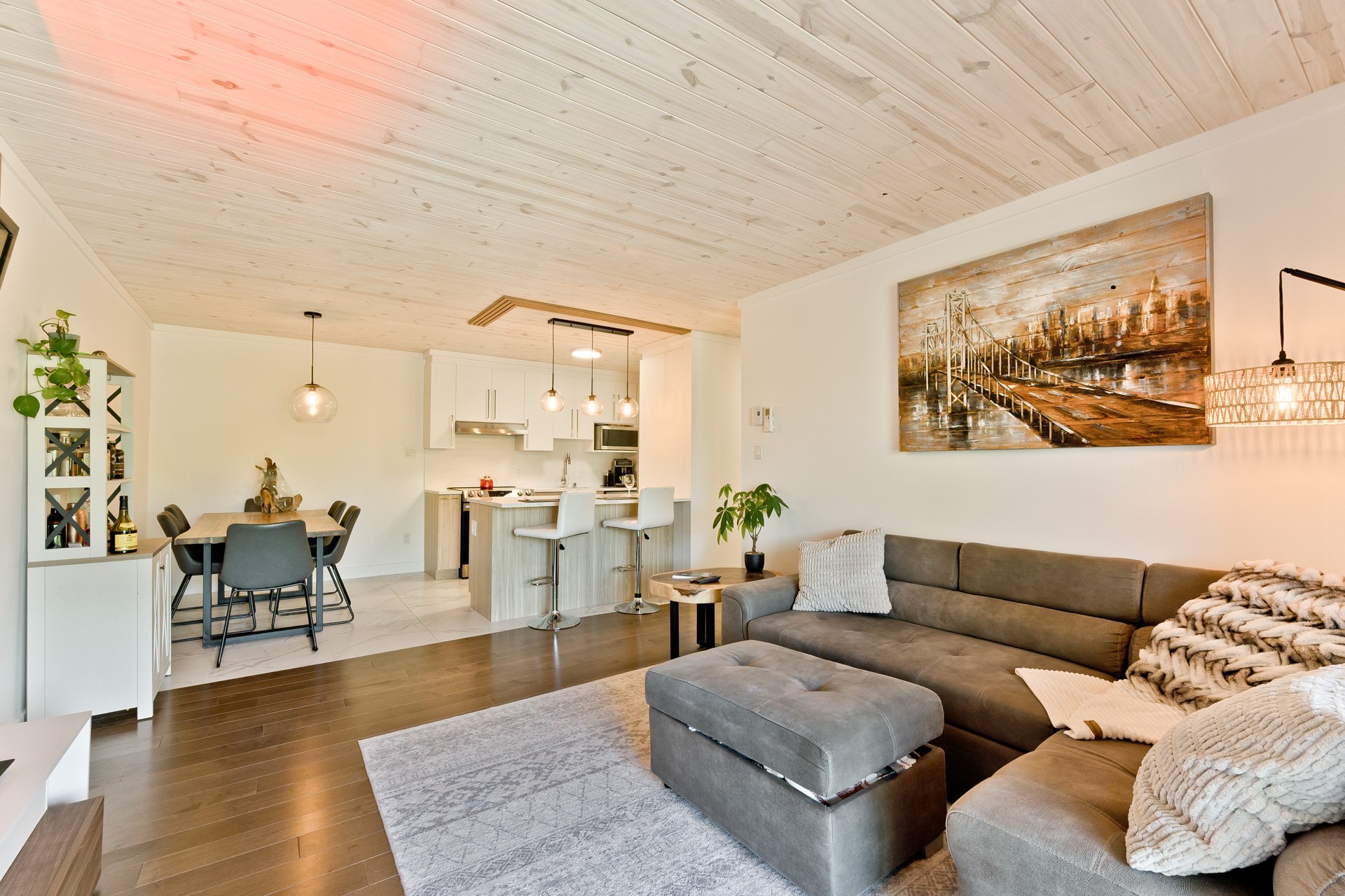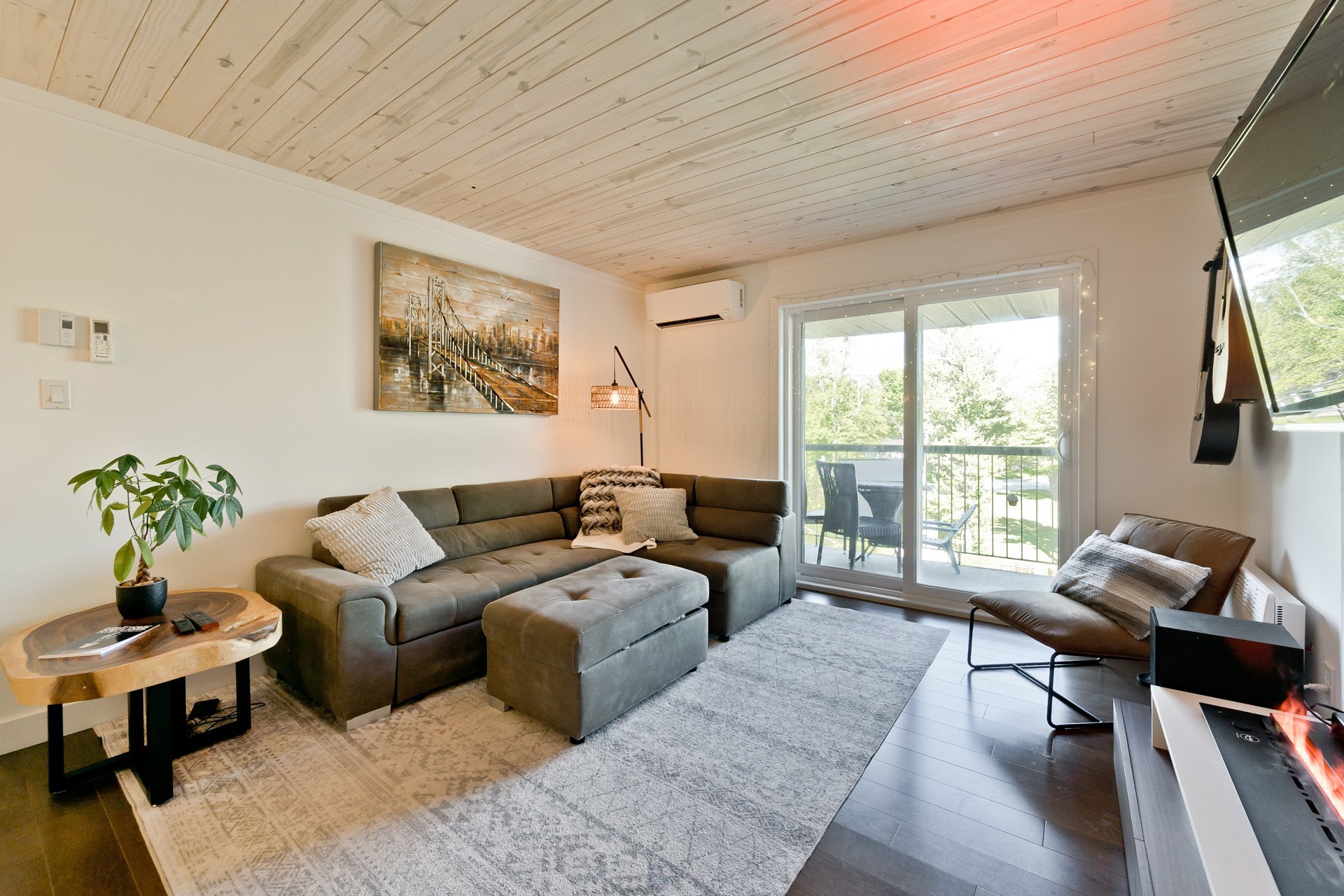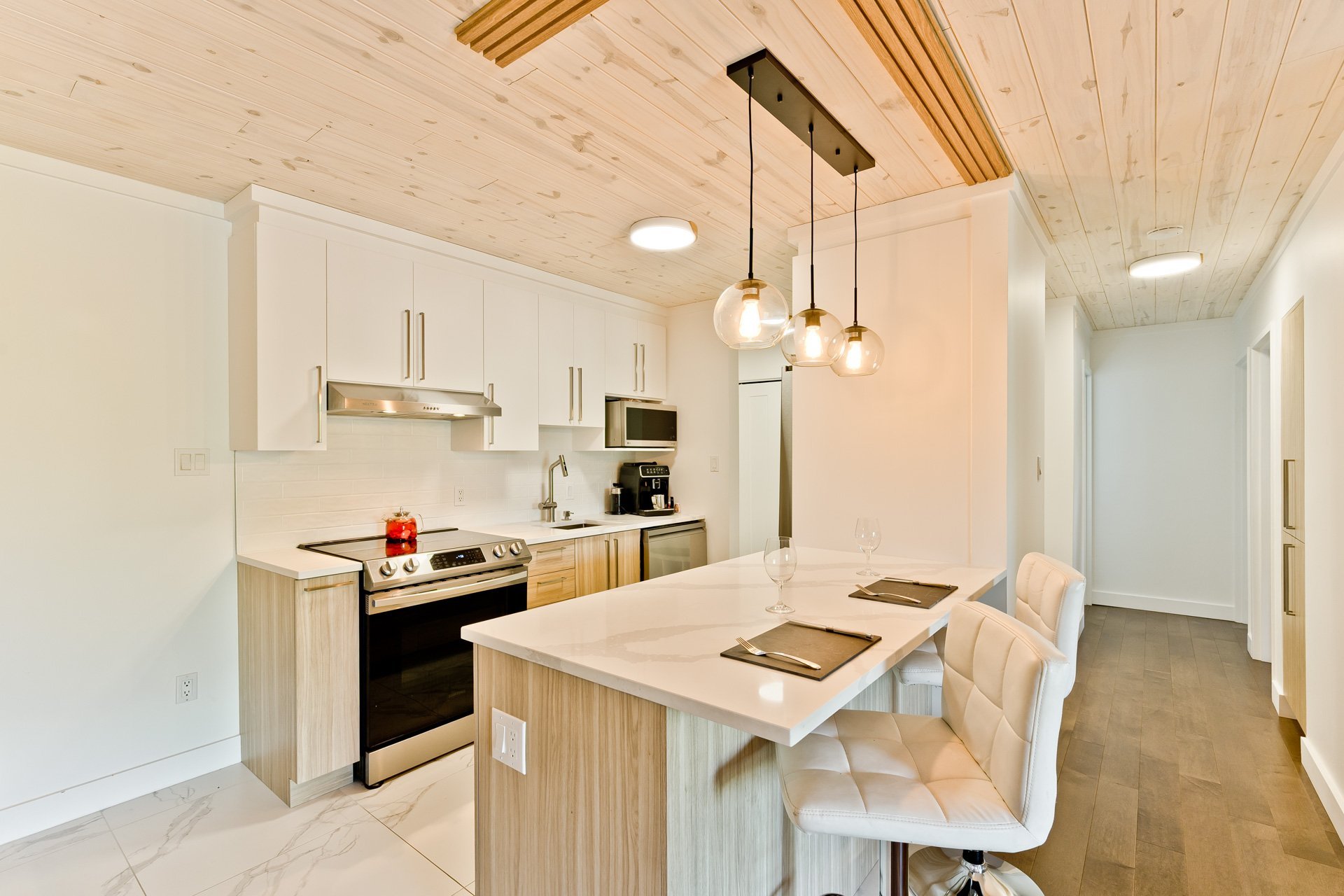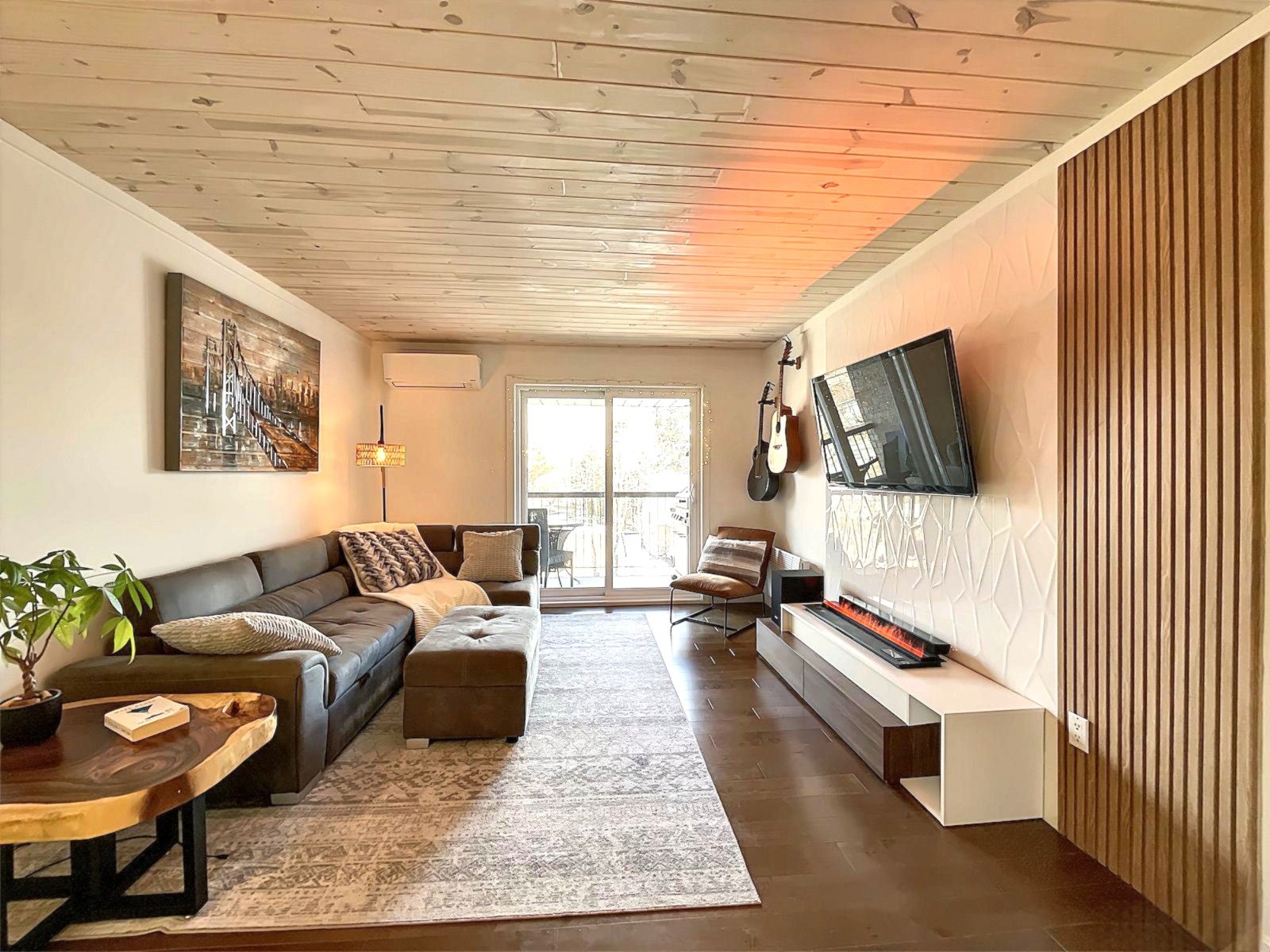 This condo, completely renovated in 2024, is a real gem. Cute and warm with its wood-panelled ceilings, it marries charm and modernity to perfection. The redesigned kitchen, with its quartz countertops and ceramic floors, opens onto a bright, welcoming living space. The bathroom has also been completely redone; everything is brand new.
