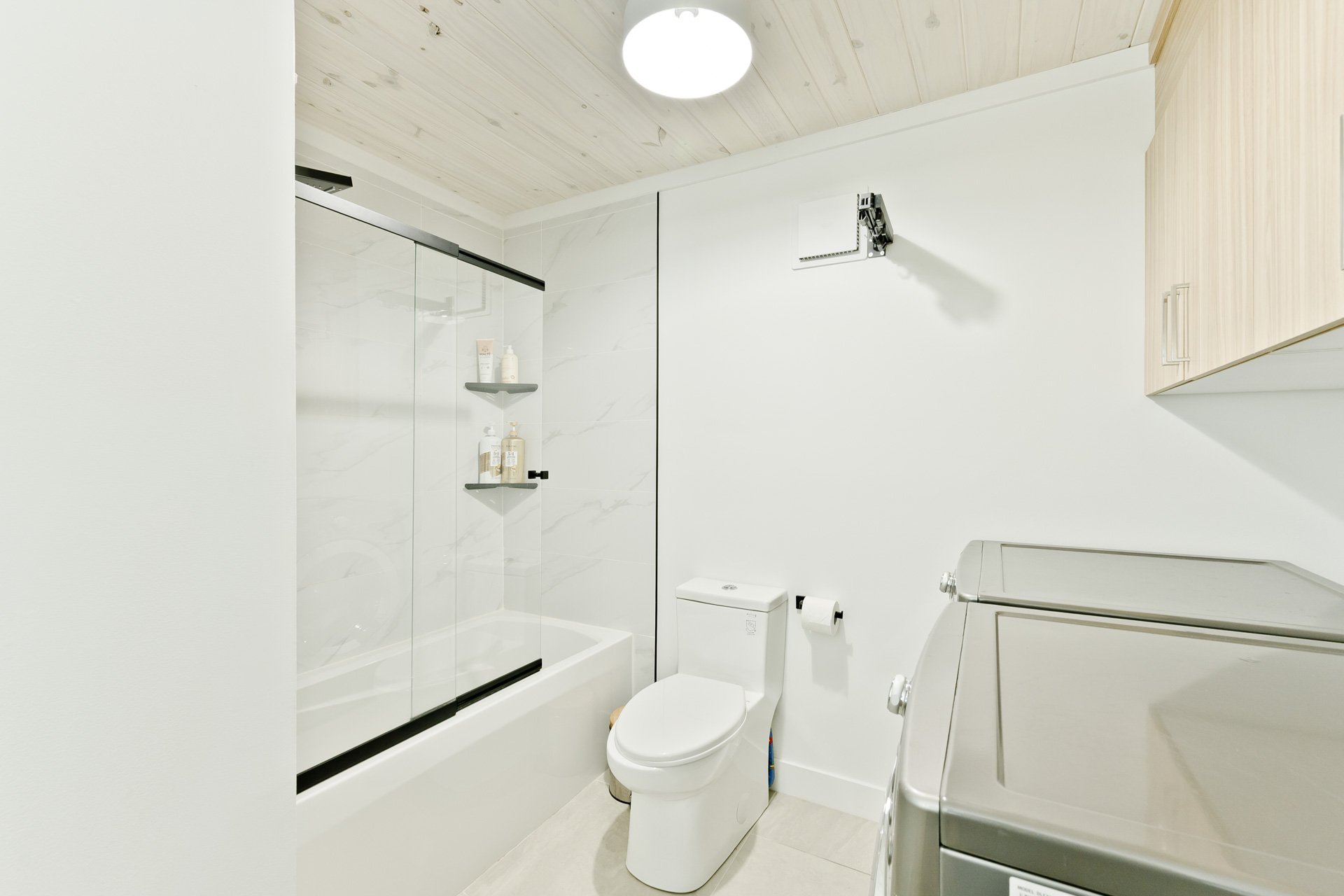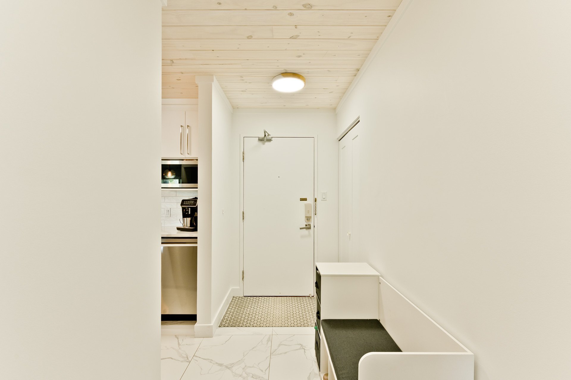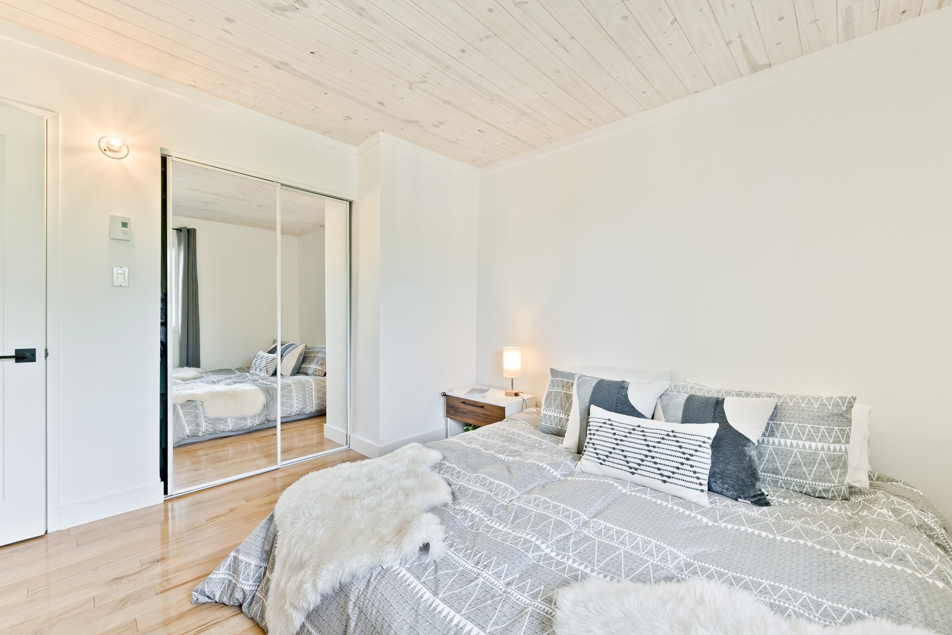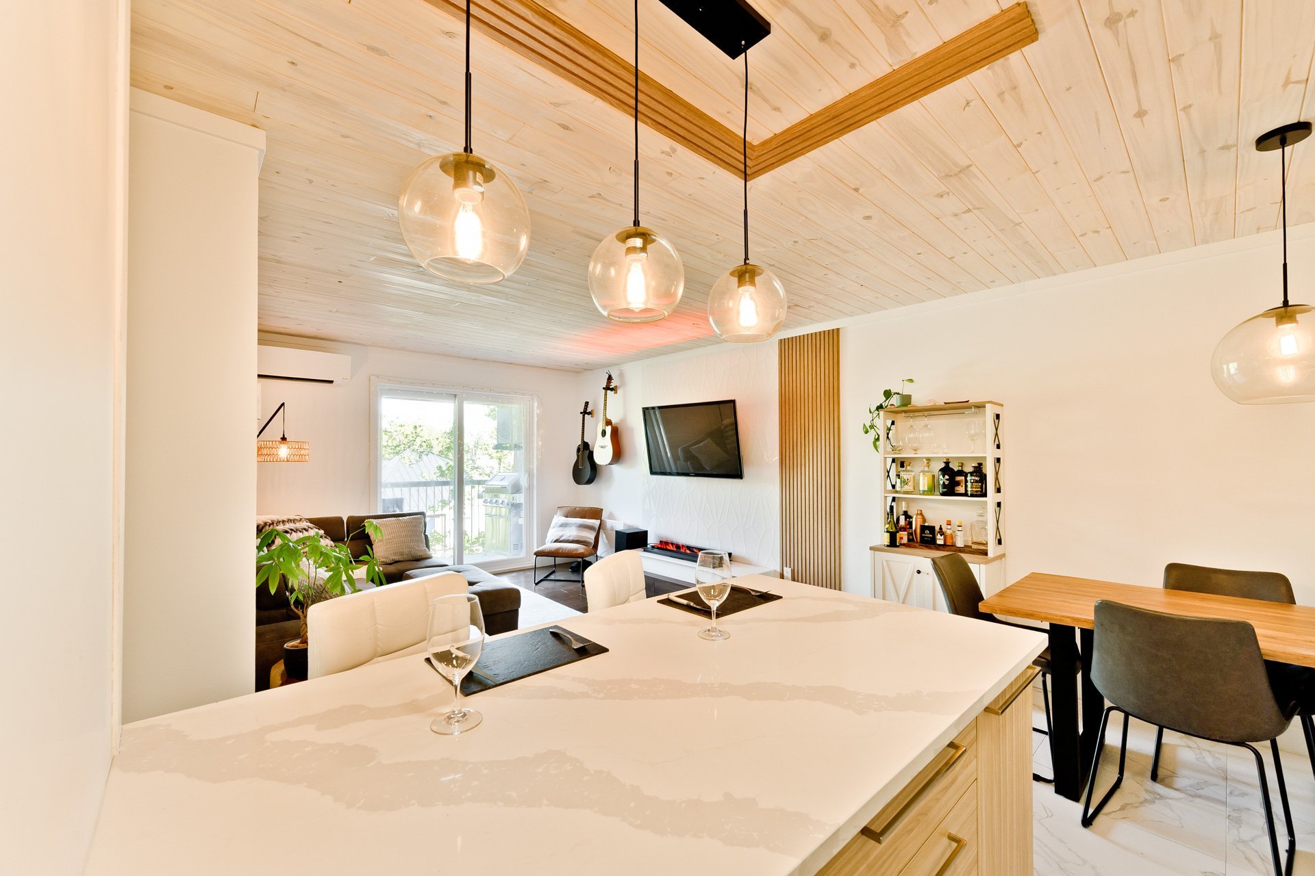 This condo, completely renovated in 2024, is a real gem. Cute and warm with its wood-panelled ceilings, it marries charm and modernity to perfection. The redesigned kitchen, with its quartz countertops and ceramic floors, opens onto a bright, welcoming living space. The bathroom has also been completely redone; everything is brand new.