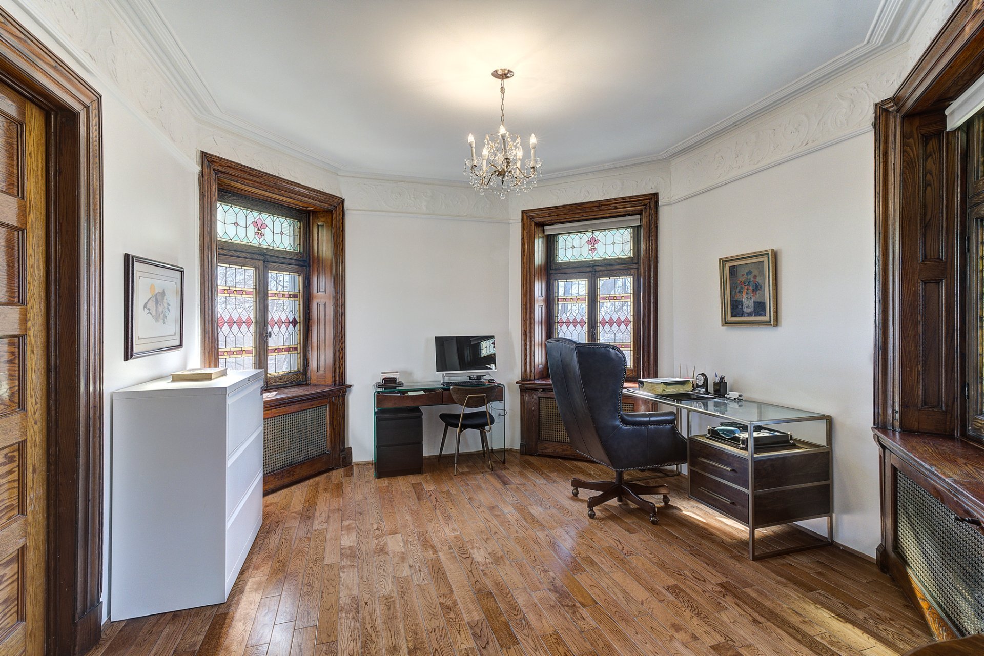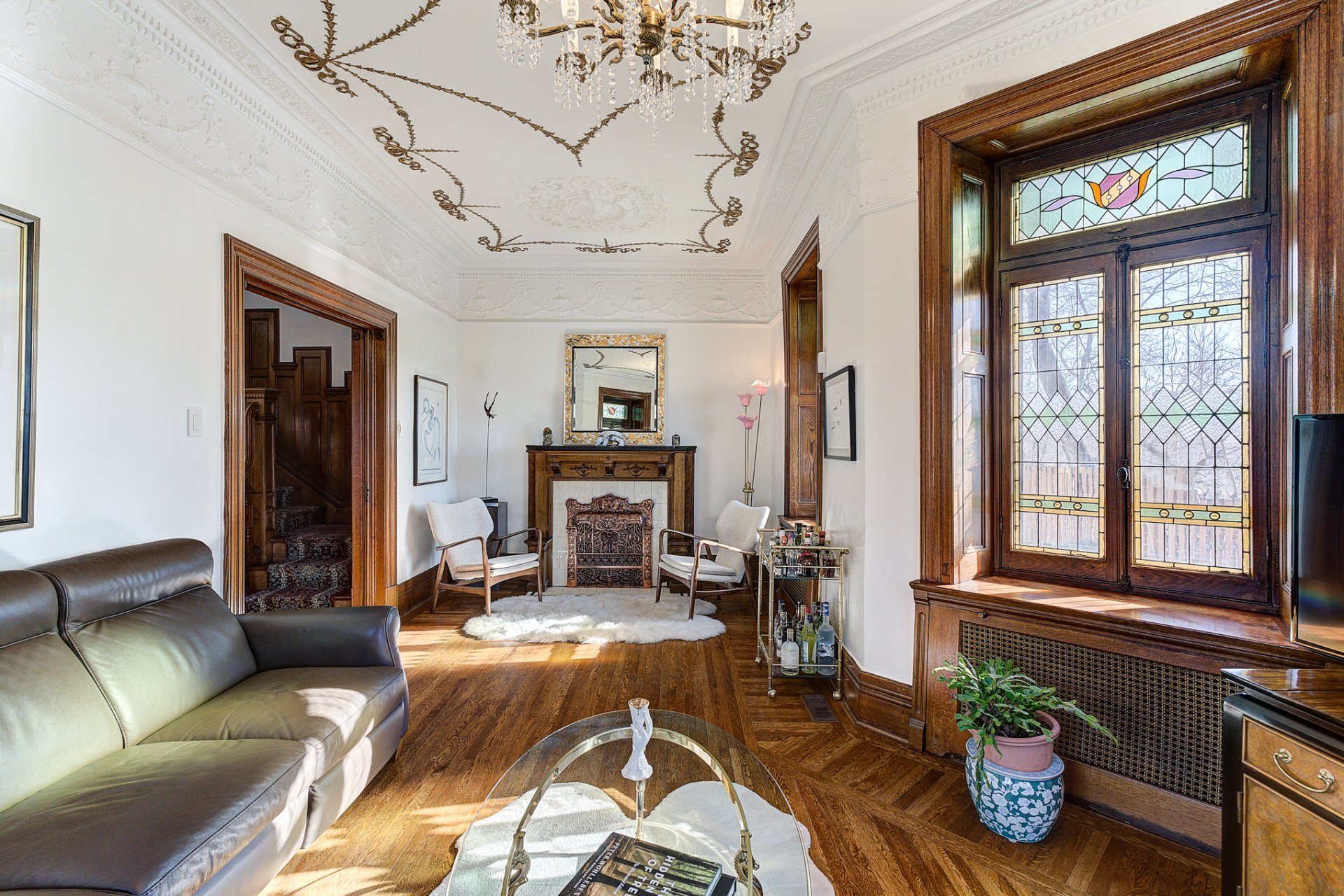 This architectural gem features 3+1 bedrooms, 2+1 bathrooms and a warm, inviting living area centered around a charming fireplace with its original mantle. Experience the warmth and sophistication of exquisite woodwork and stained glass windows throughout.